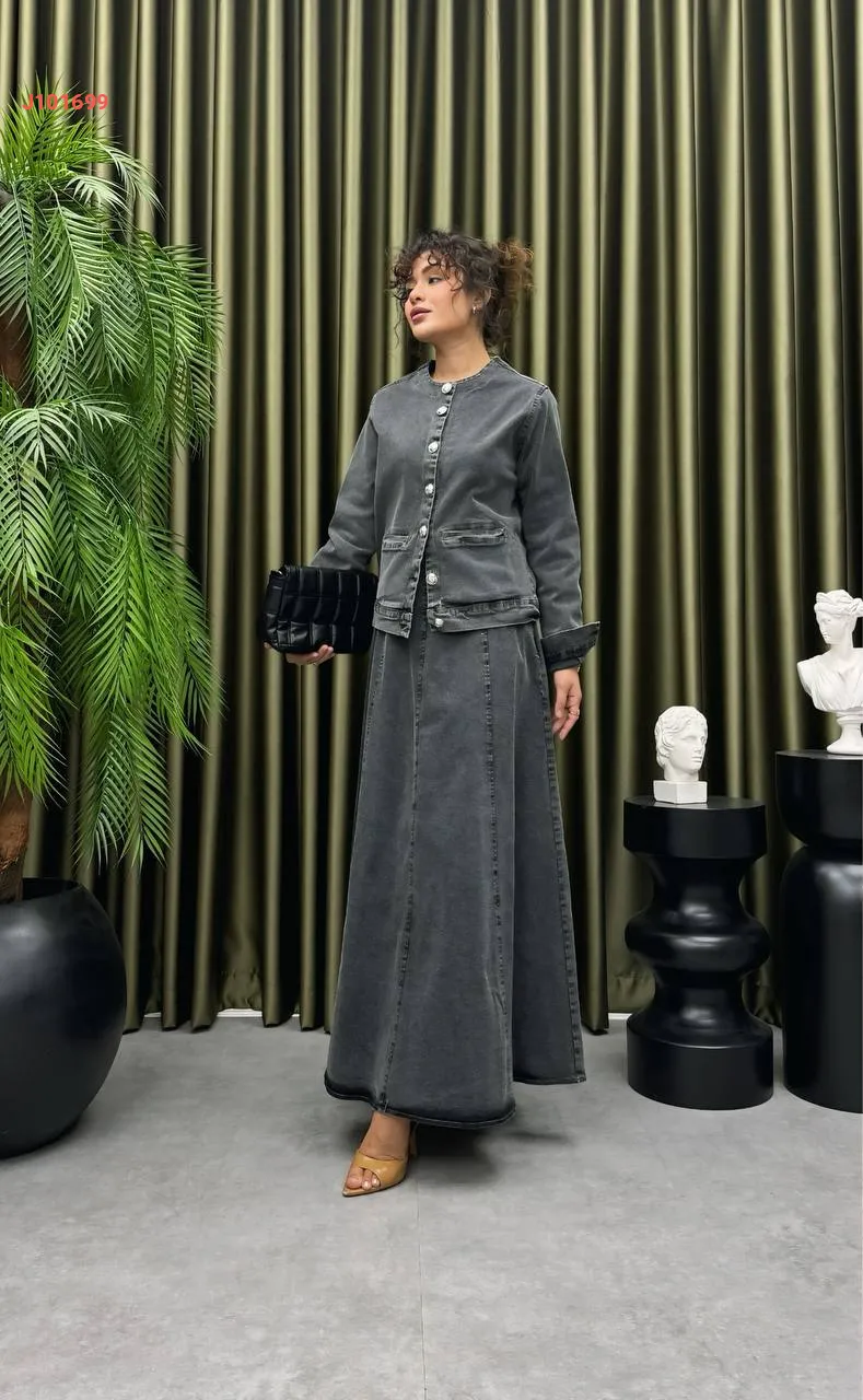 طقم تنورة جينز طويل