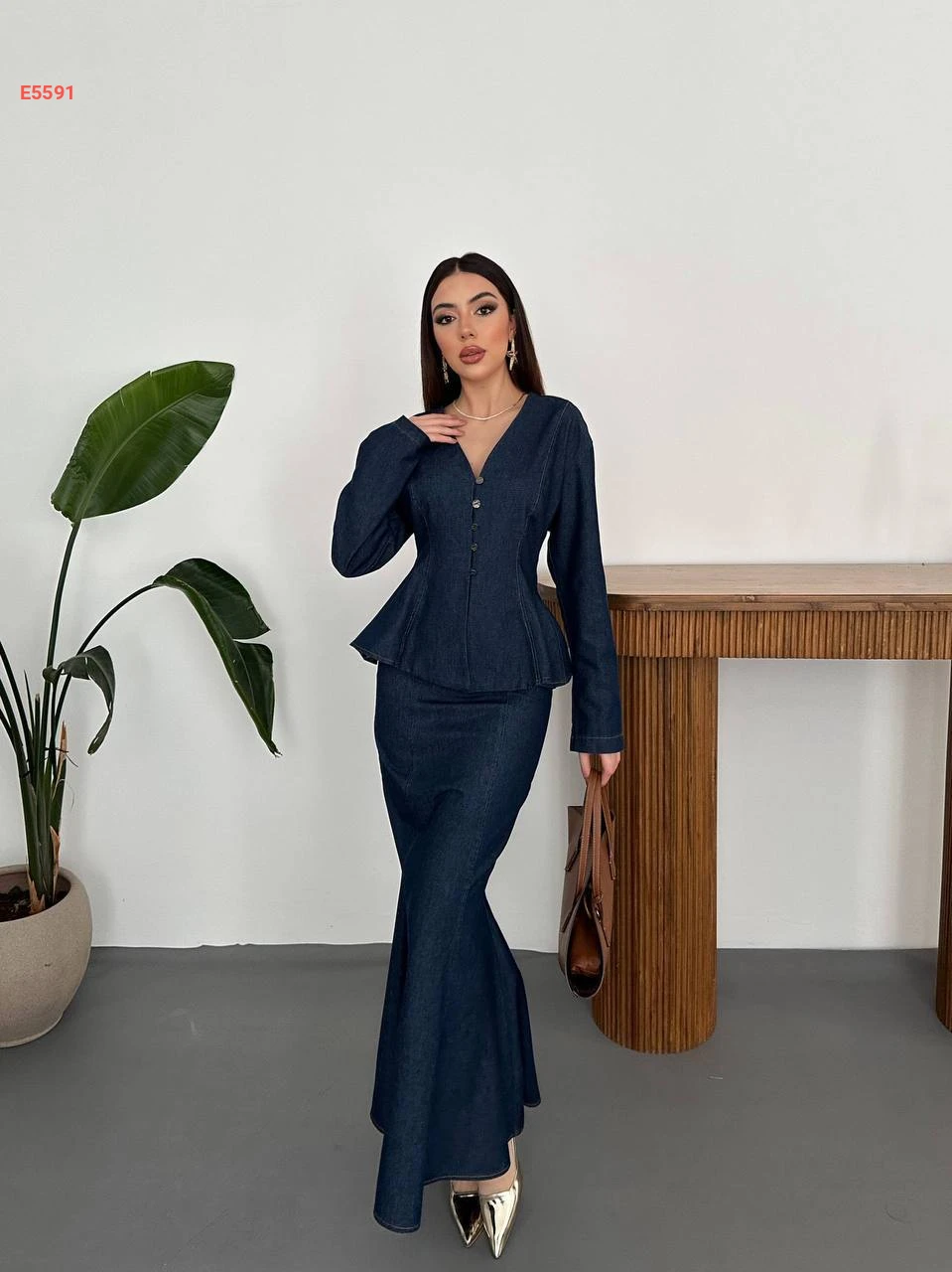 طقم تنورة جينز طويل