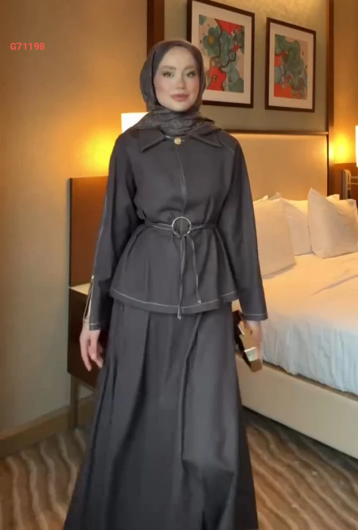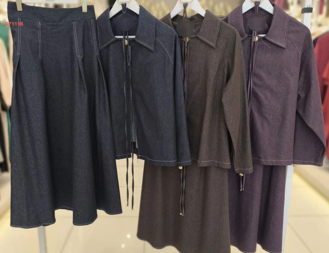 طقم تنورة جينز طويل مع زنار