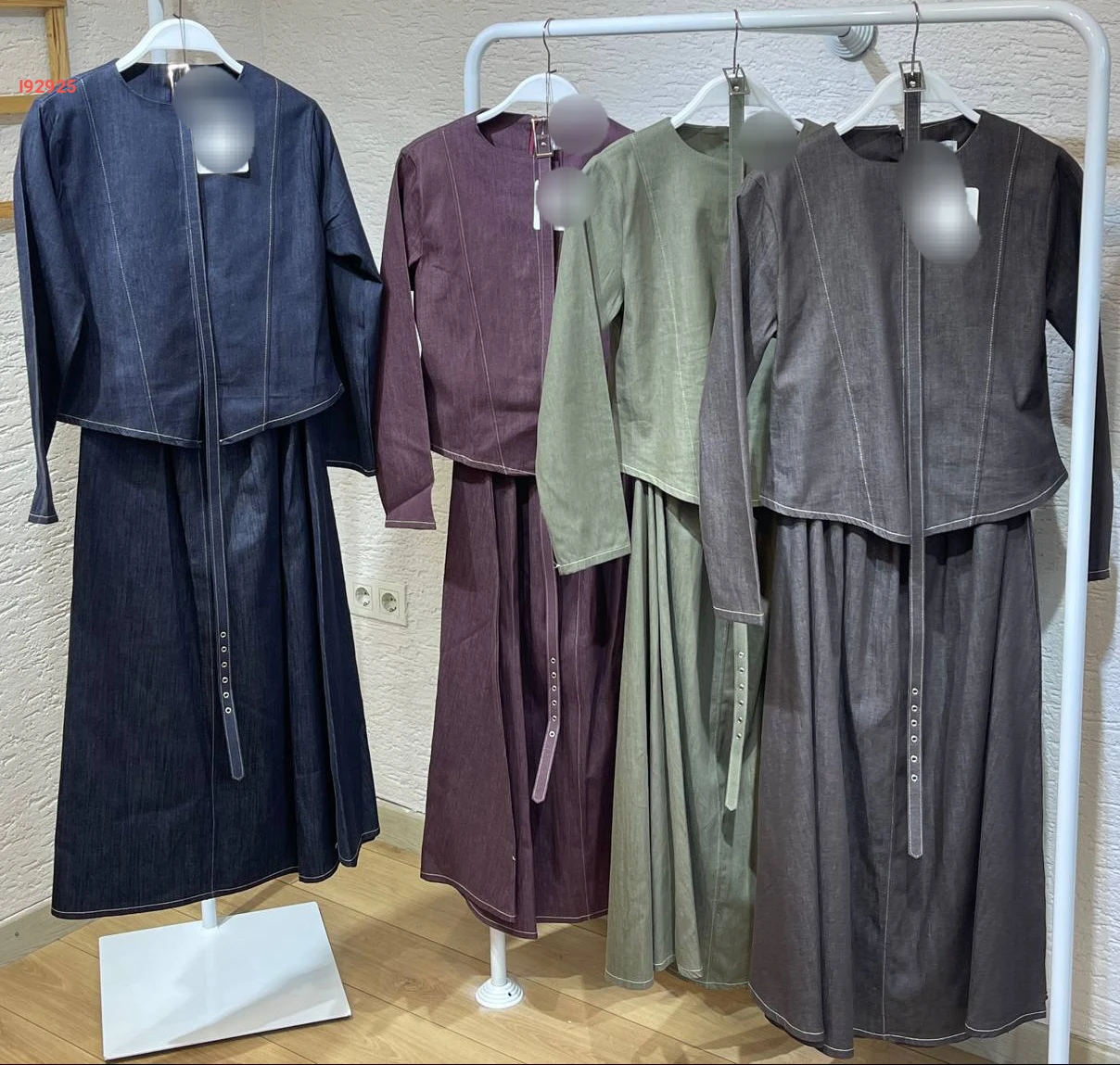 طقم تنورة جينز طويل مع جاكيت