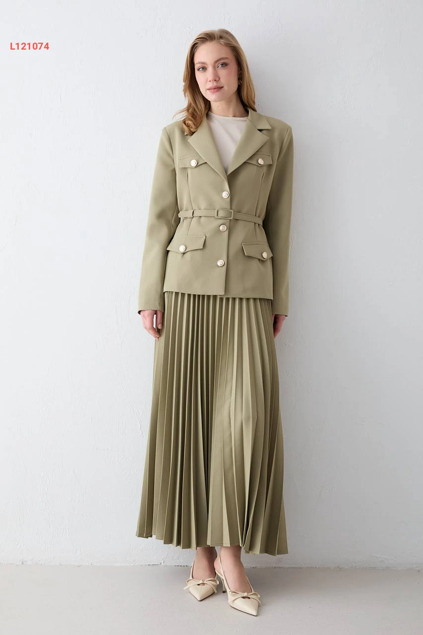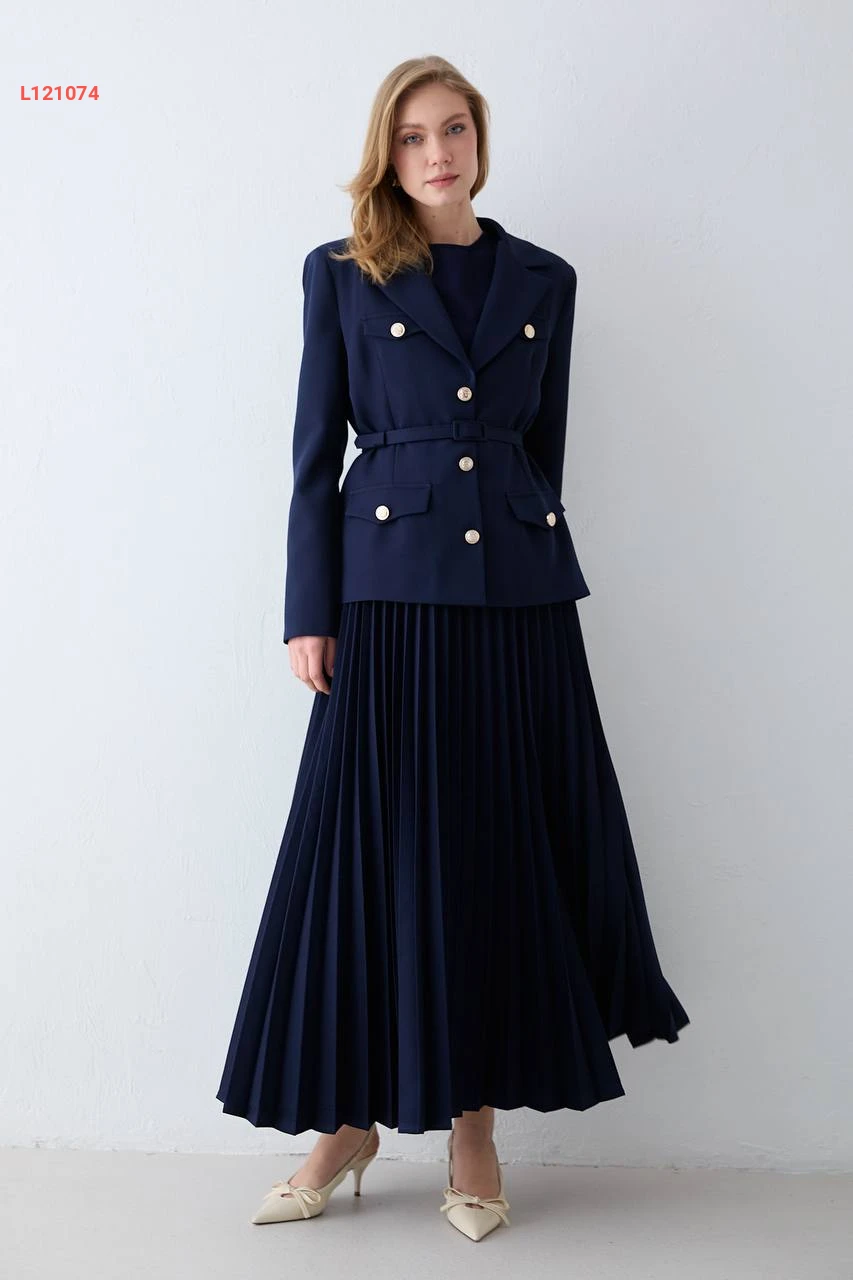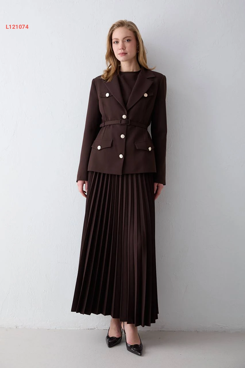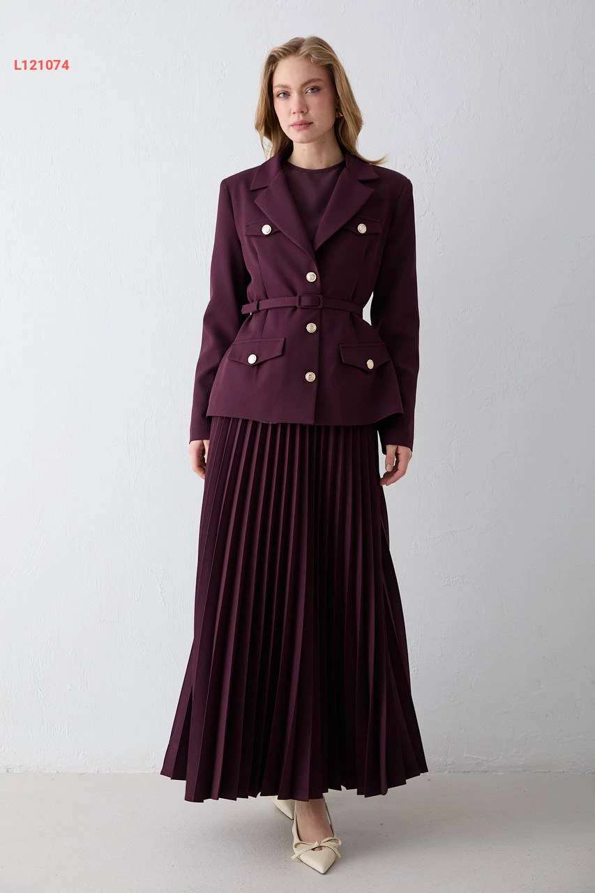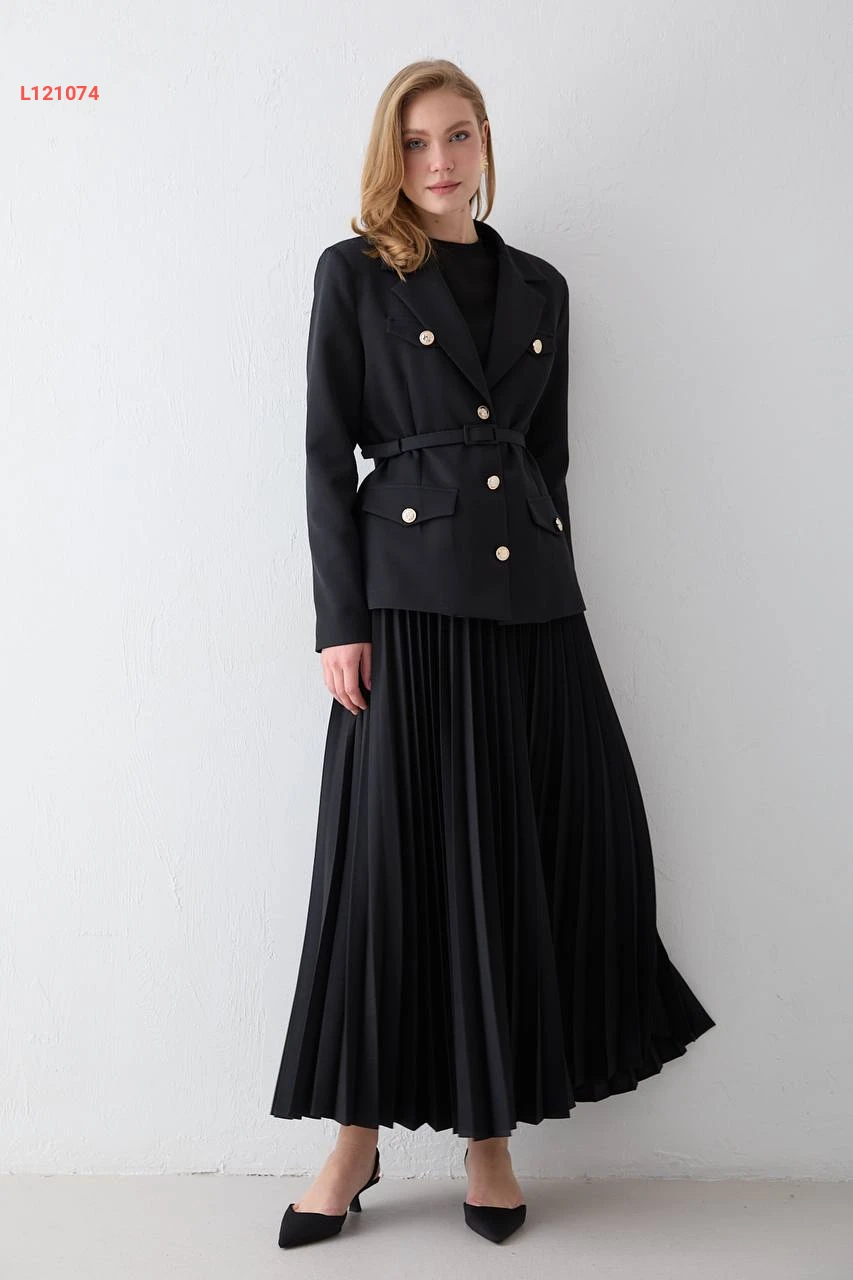 طقم تنورة طويل دبل كريب