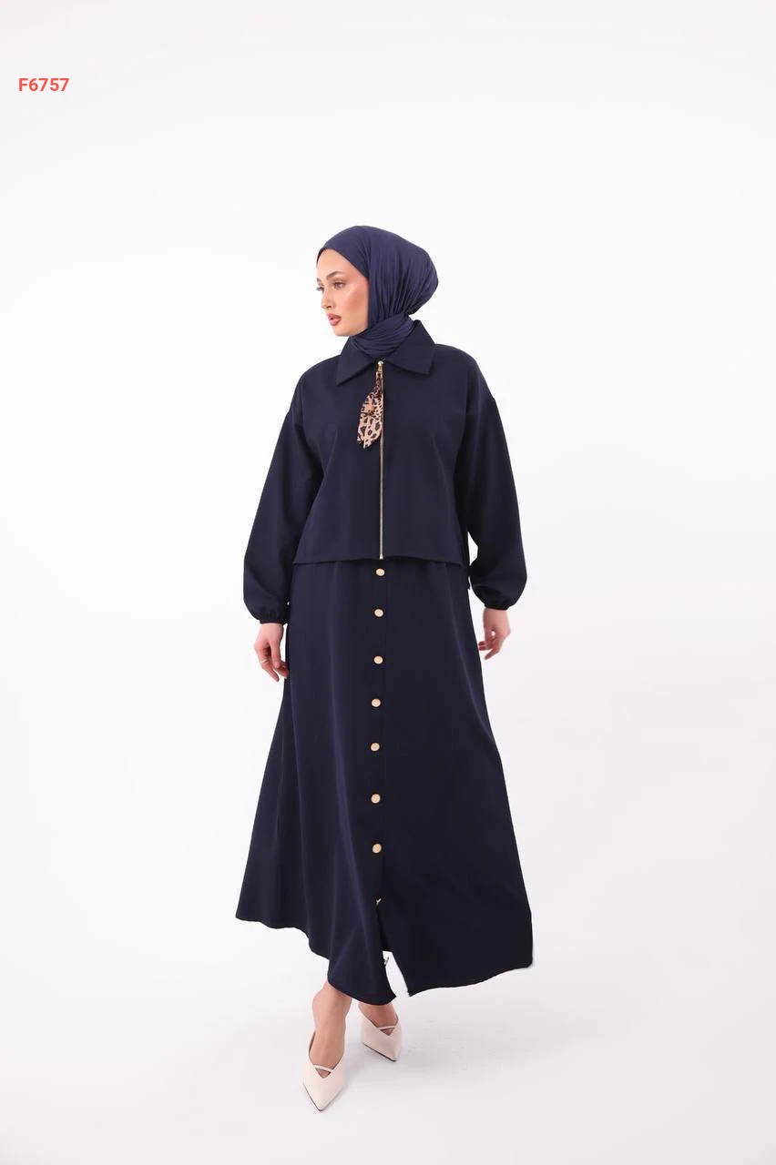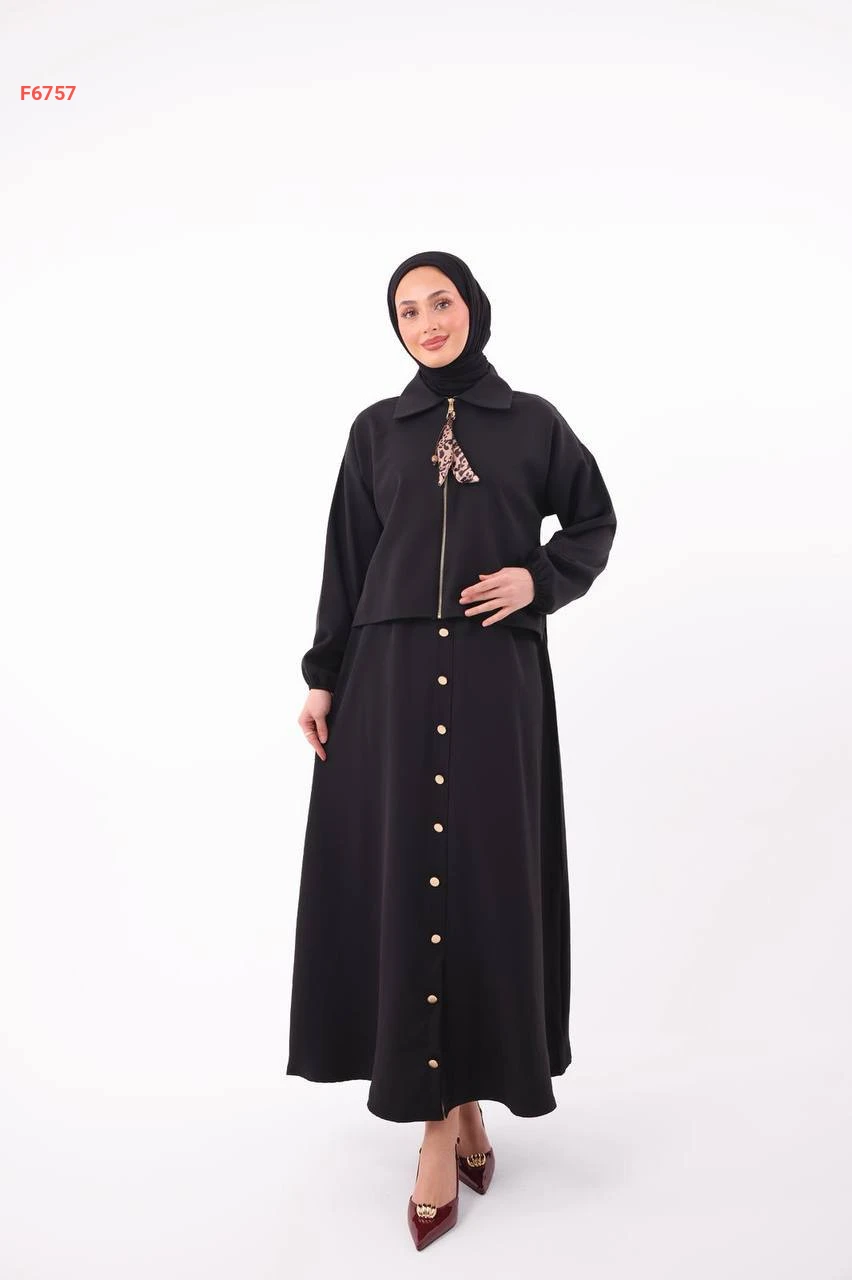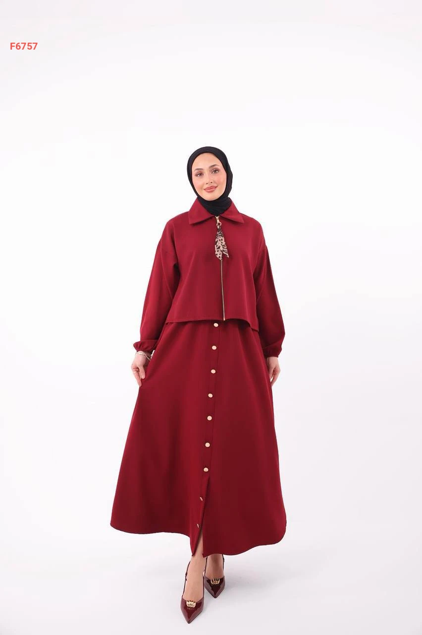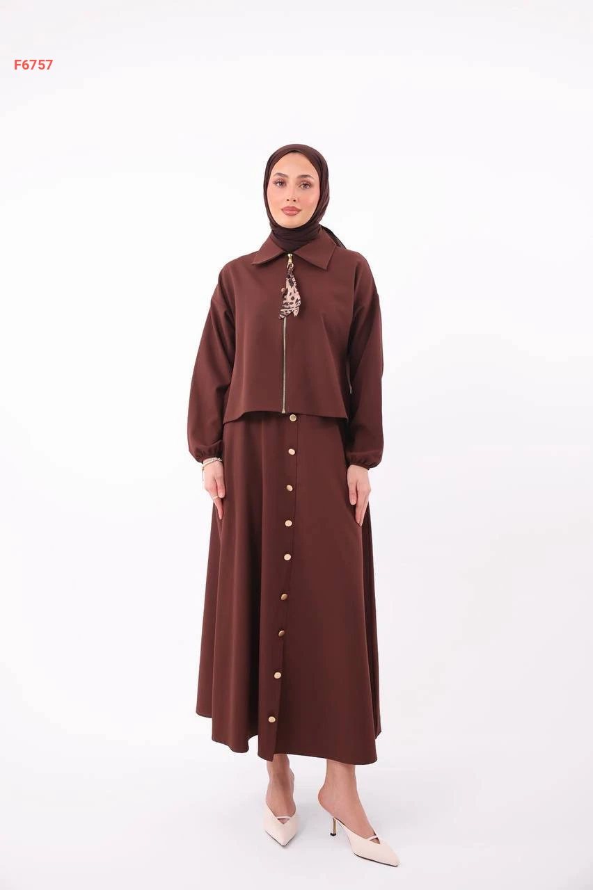طقم تنورة طويل دبل كريب بأزرار