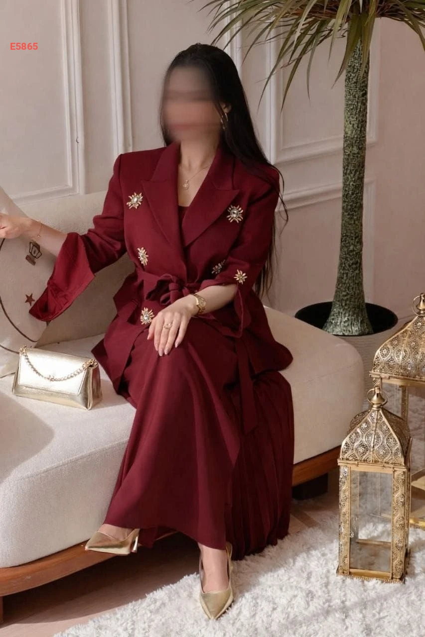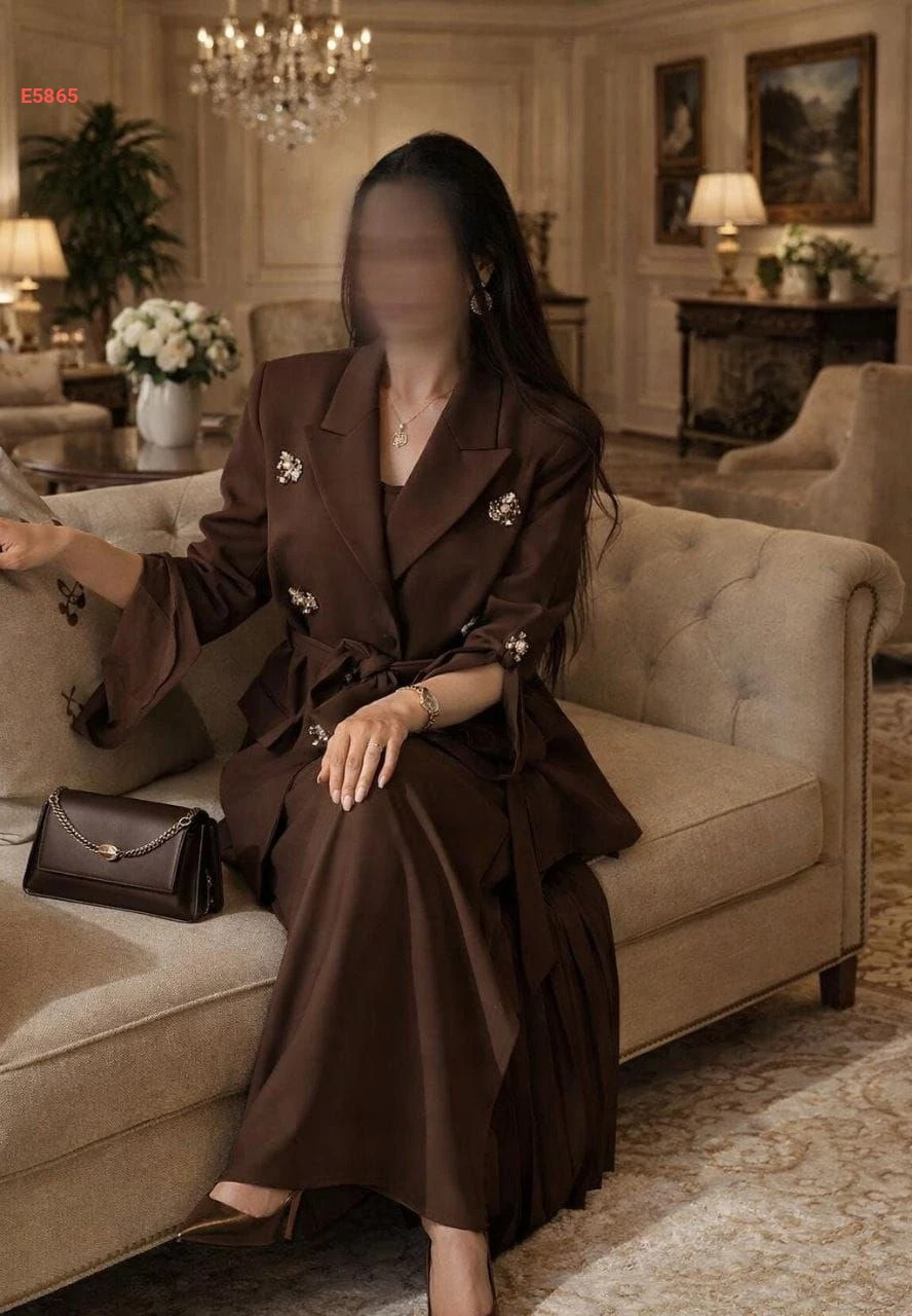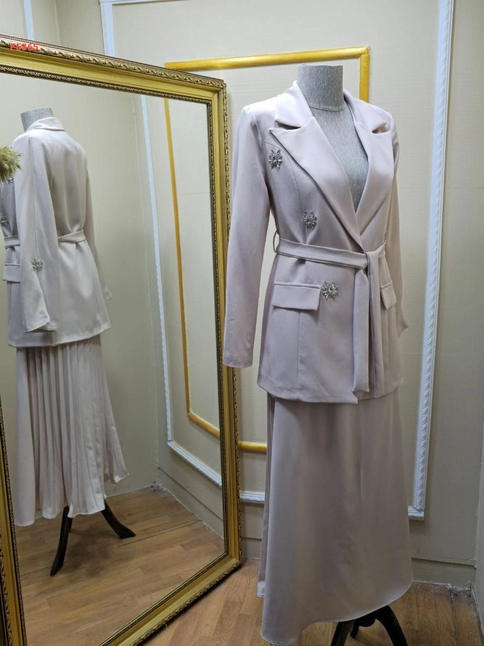 طقم تنورة دبل طويل مع جاكيت مطرز