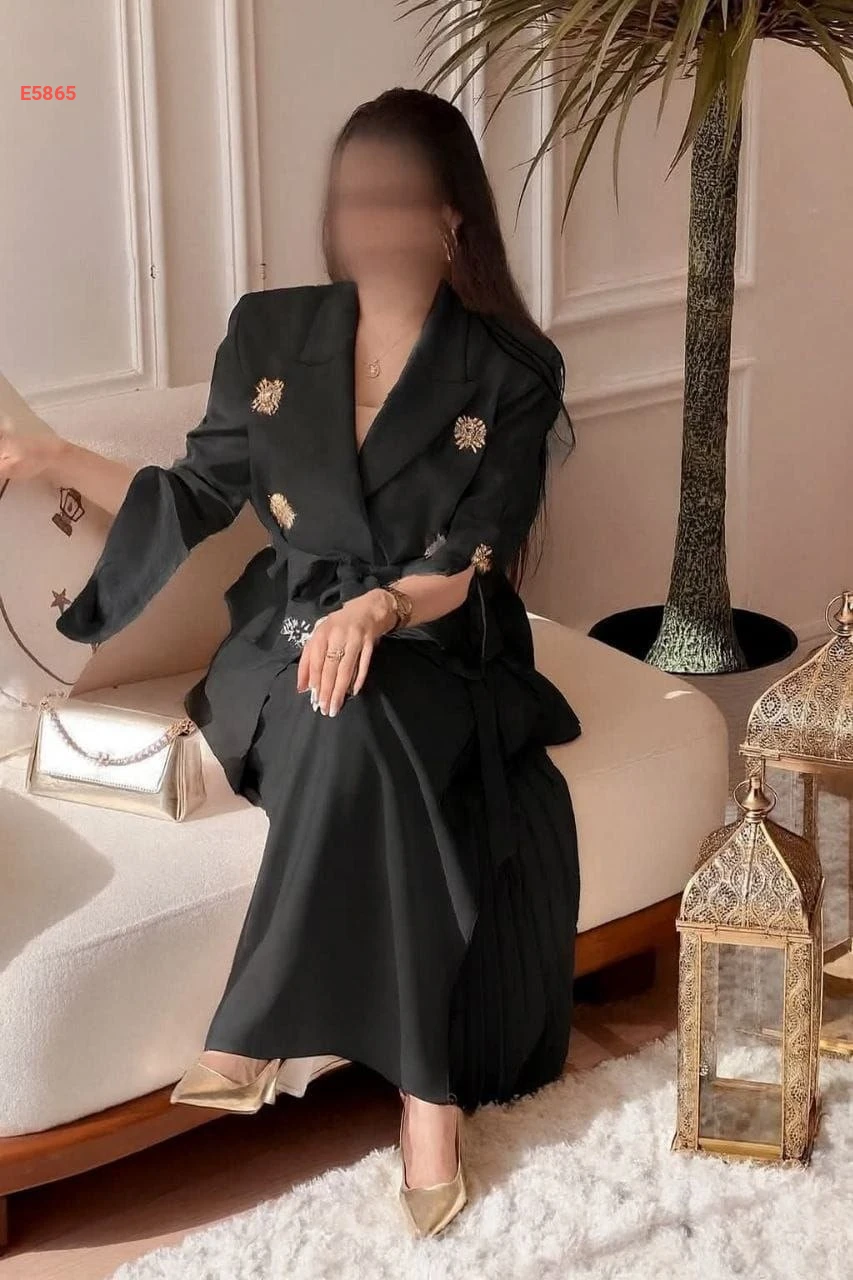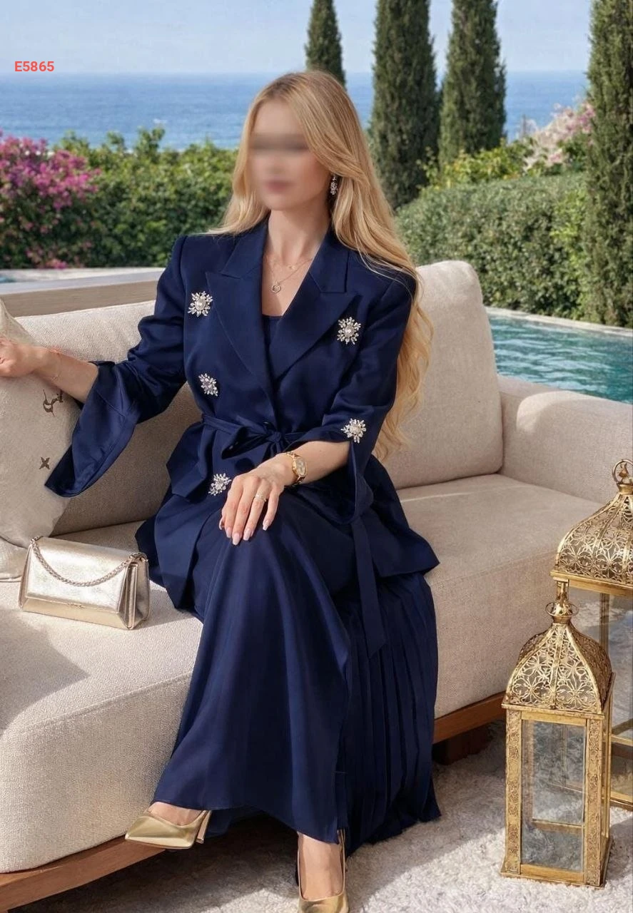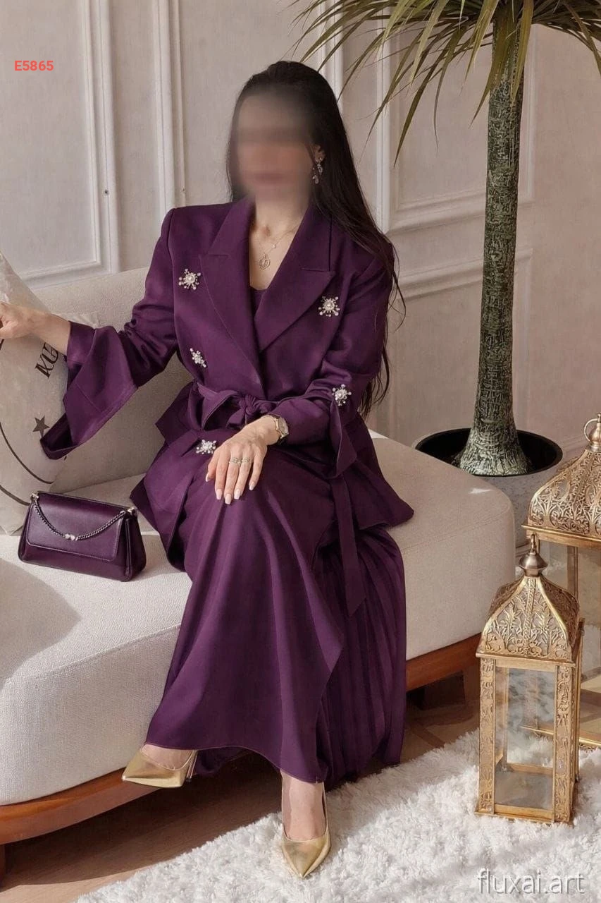 طقم تنورة دبل طويل مع جاكيت مطرز