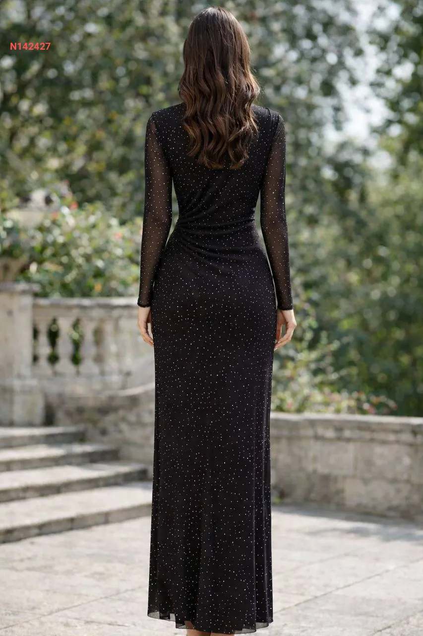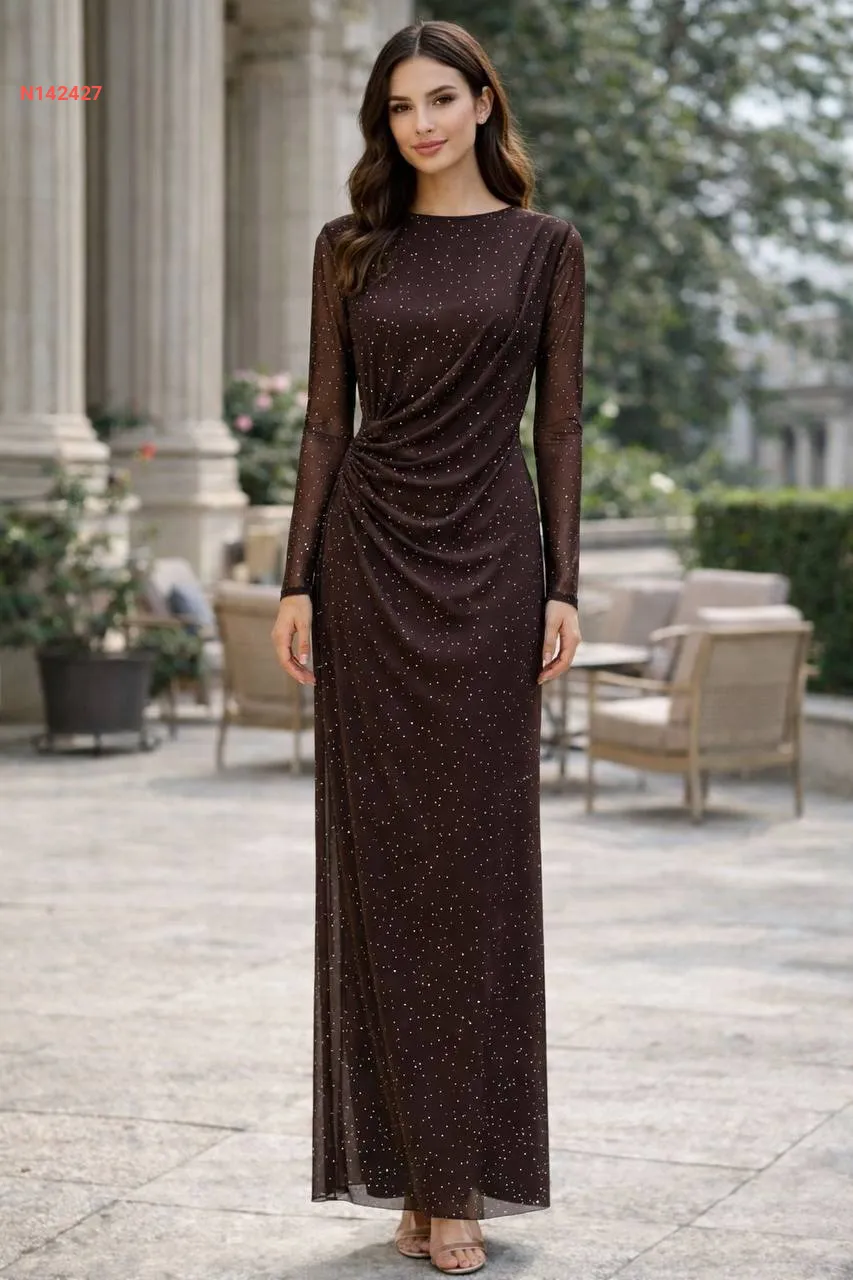 فستان طويل مرصع بتفاصيل حجرية