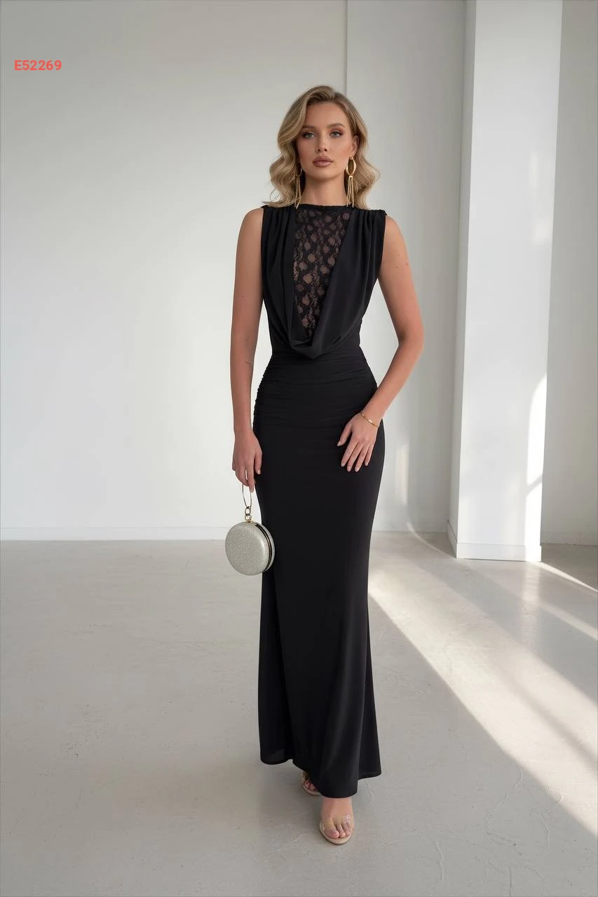 فستان طويل حفر مع دانتيل