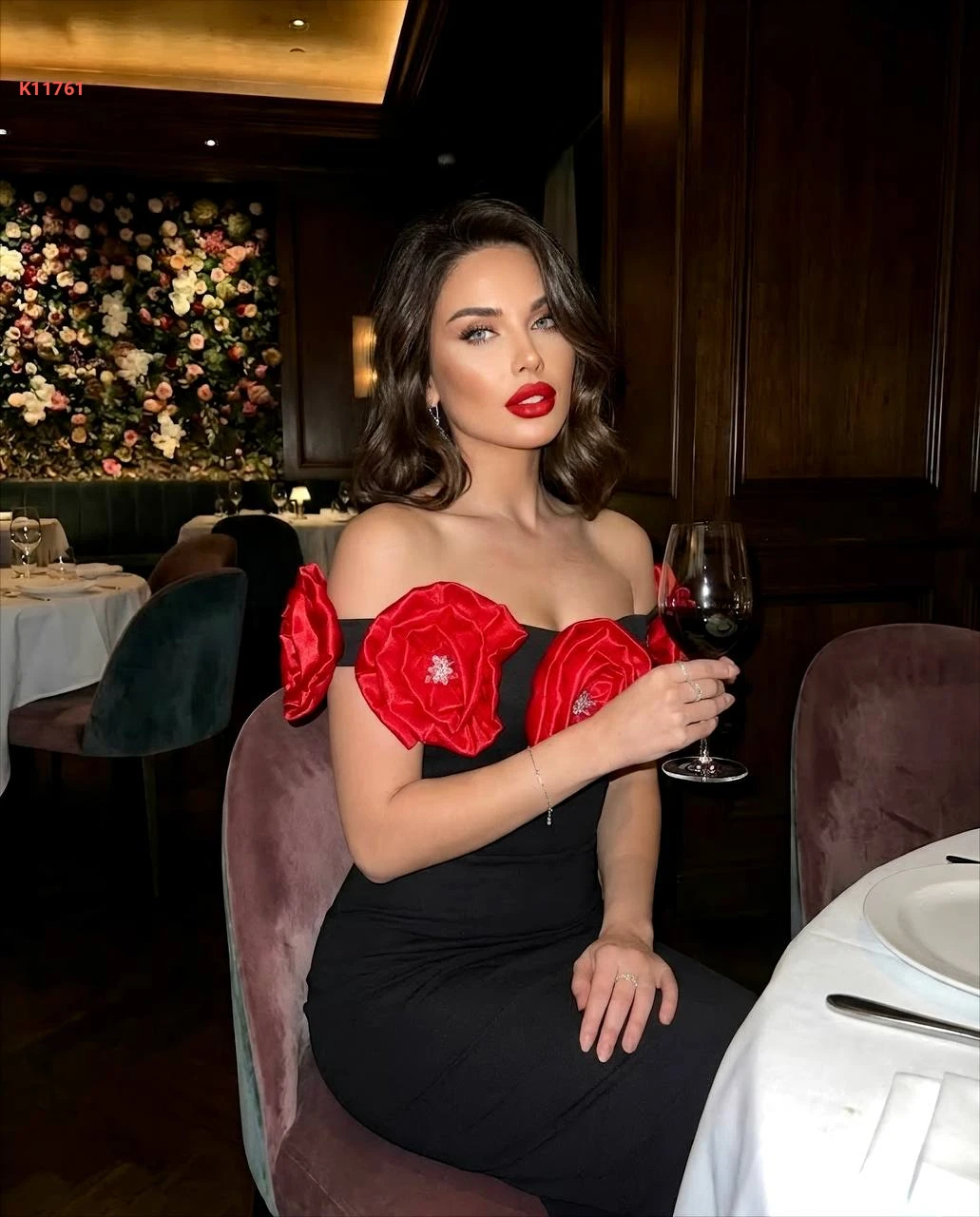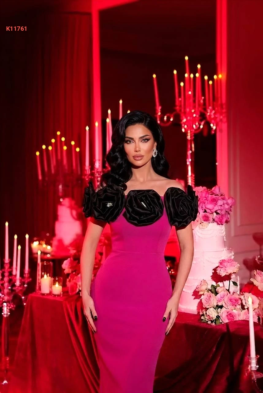 فستان مزين ورد ساتان وأحجار