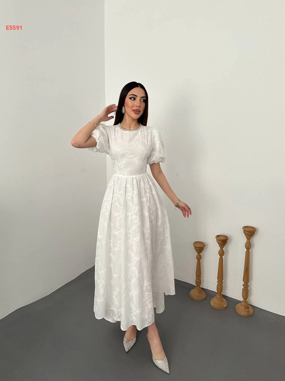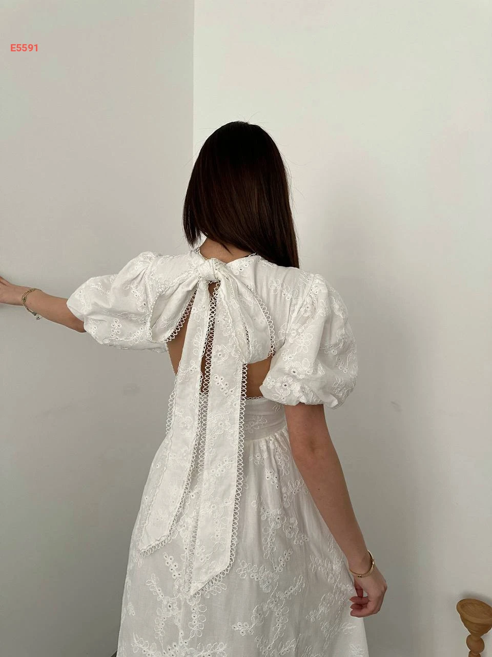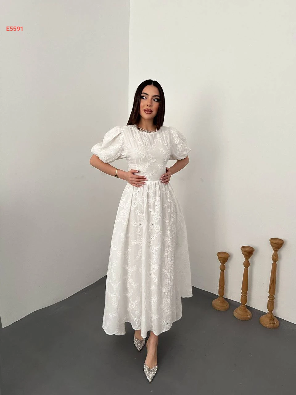 فستان طويل مطرز بربطة خلفية