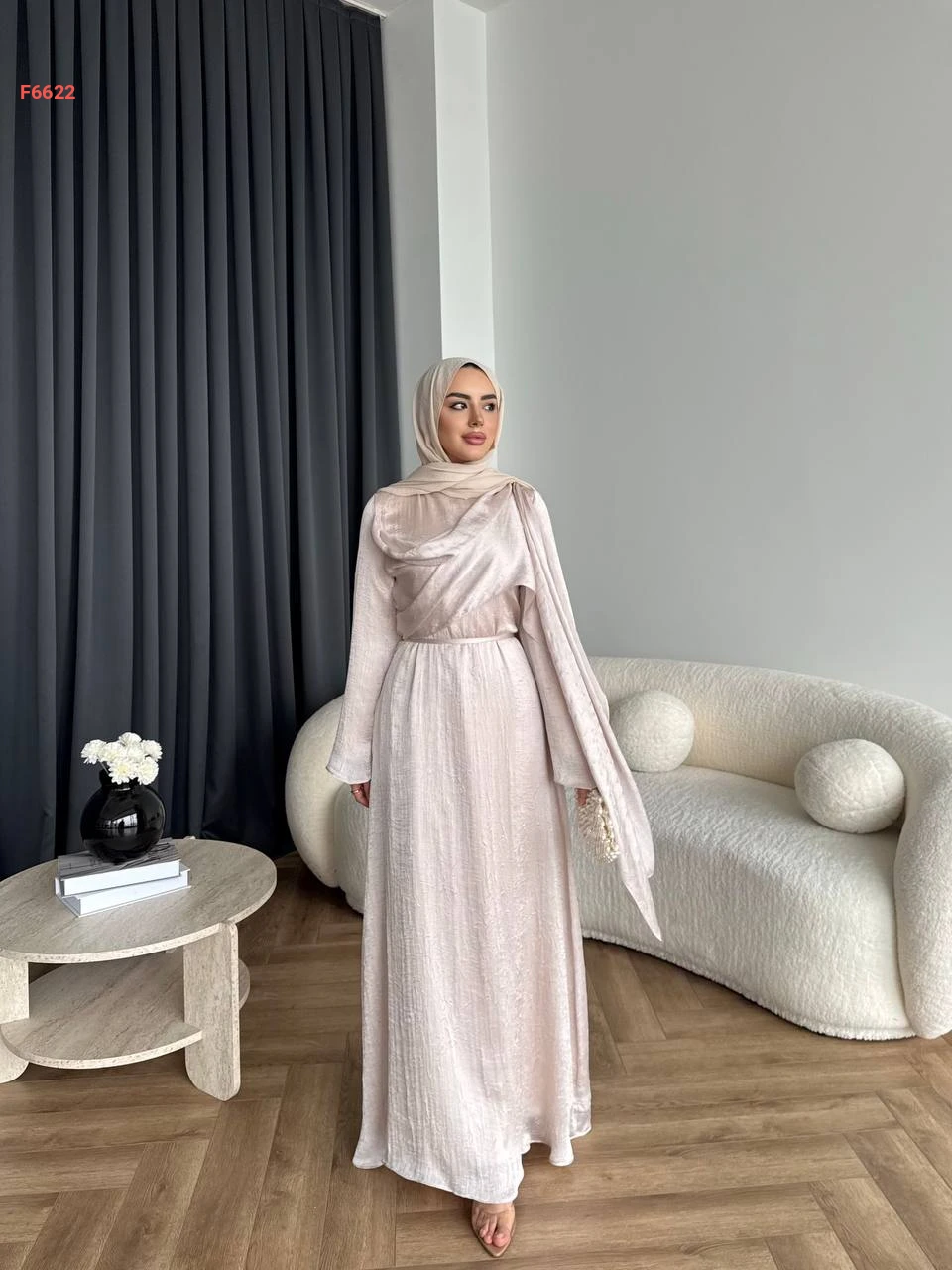 فستان طويل محجبات مع وشاح