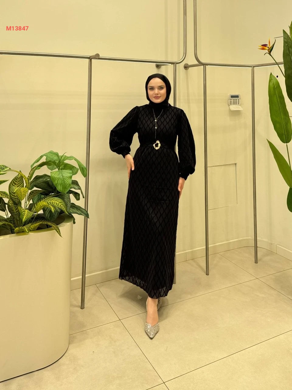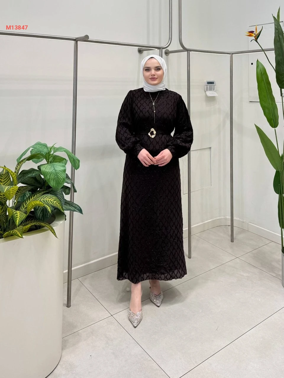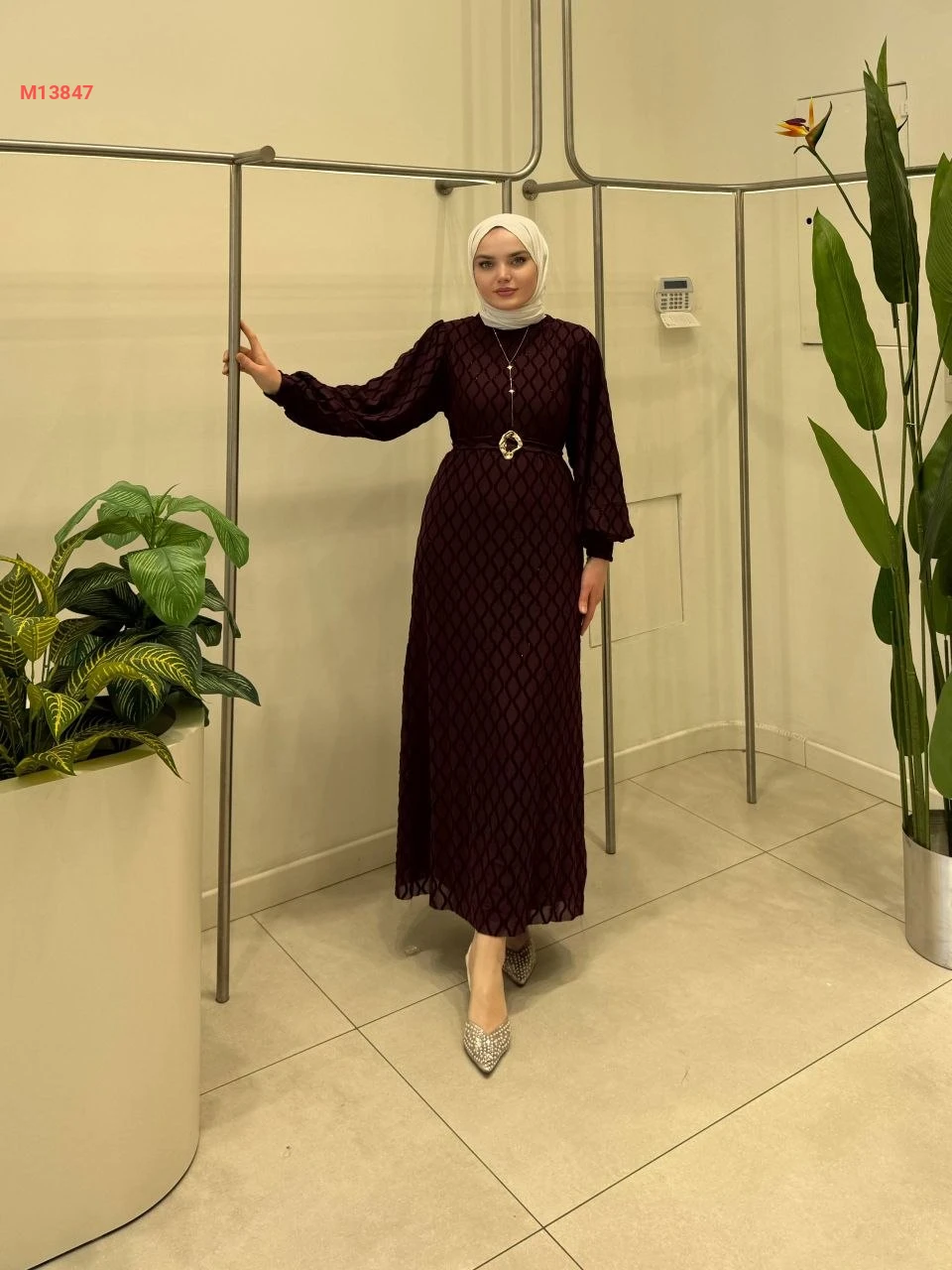 فستان طويل للمحجبات مع حزام