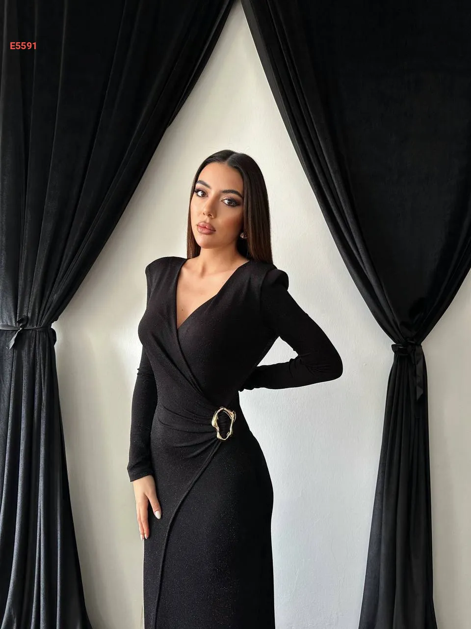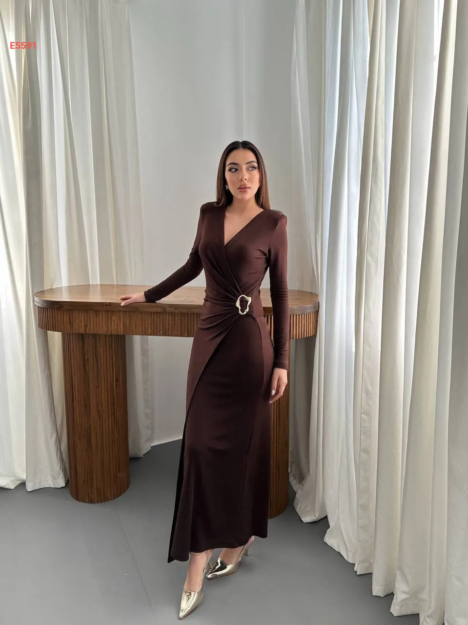 فستان طويل مجمع بإبزيم جانبي
