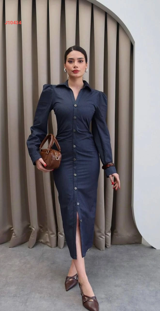 فستان طويل مجمع بأزرار