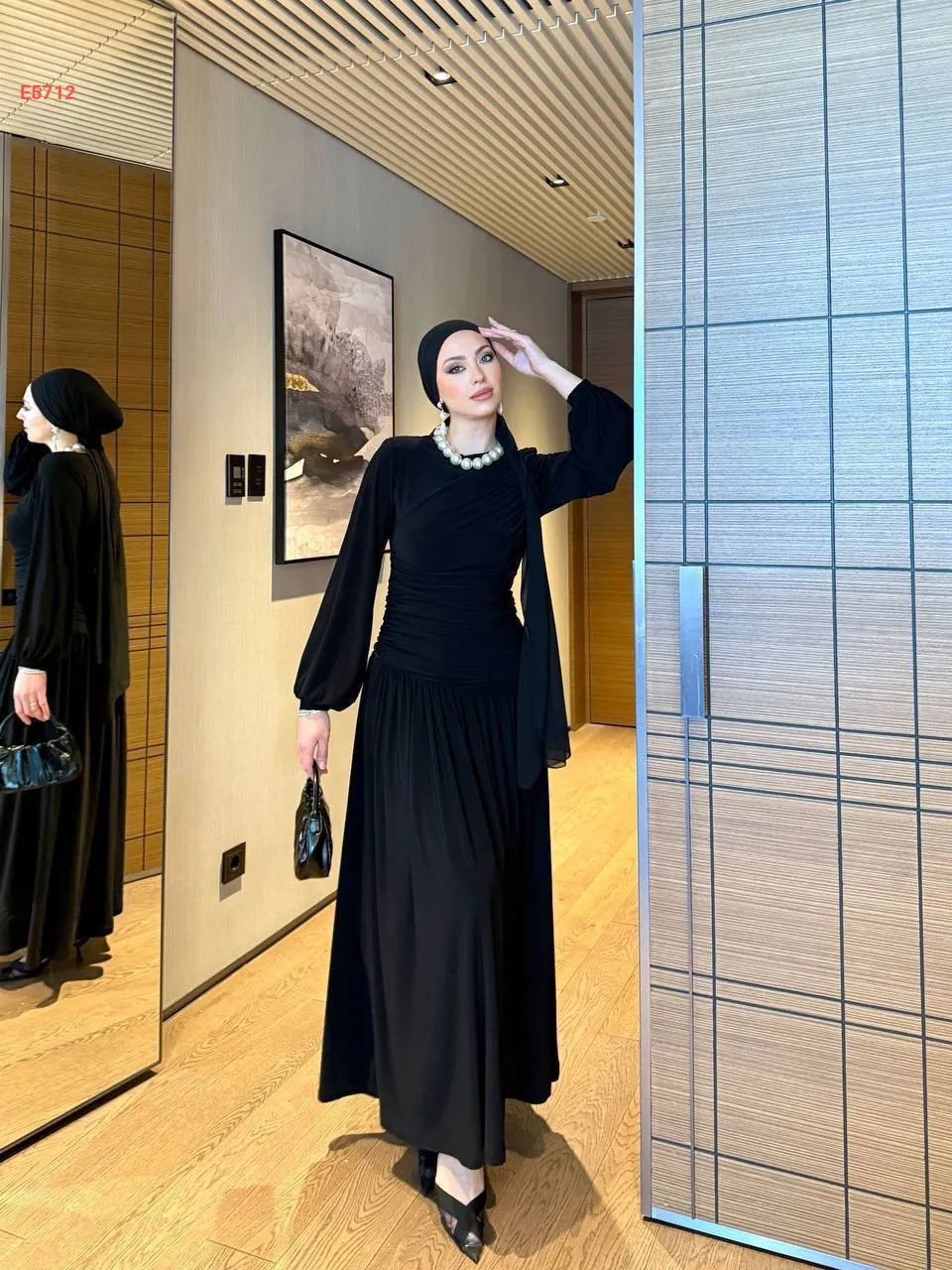 فستان طويل مجمع بطيات