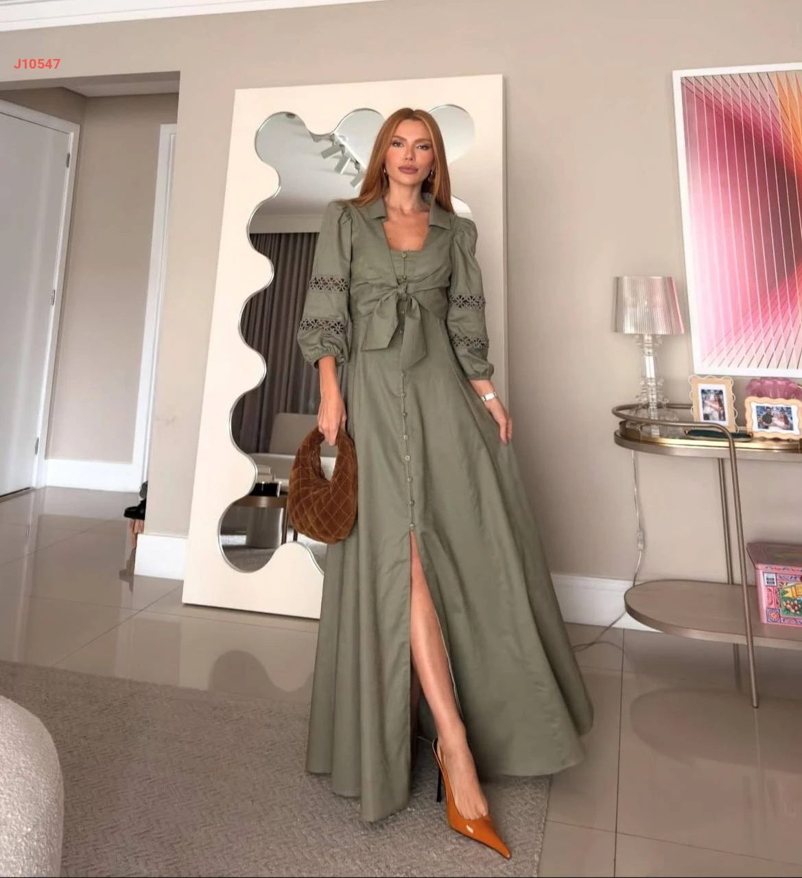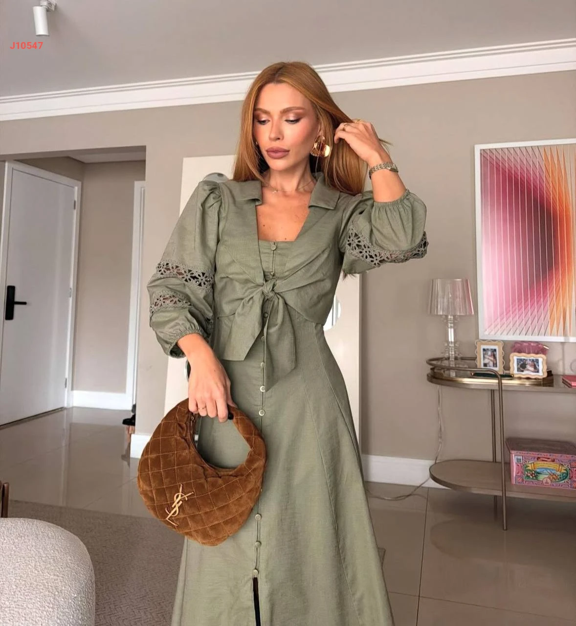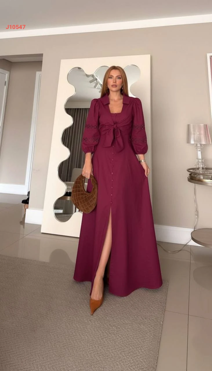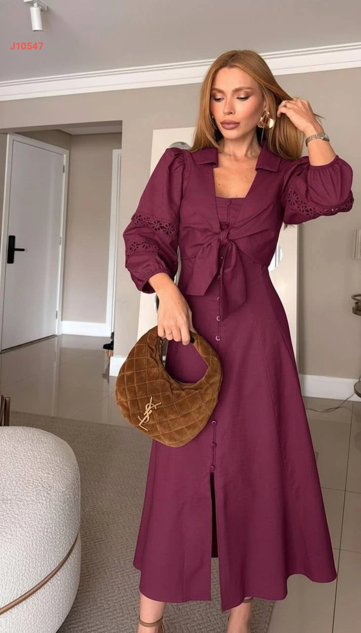 طقم فستان طويل أزرار مع بوليرو ربط