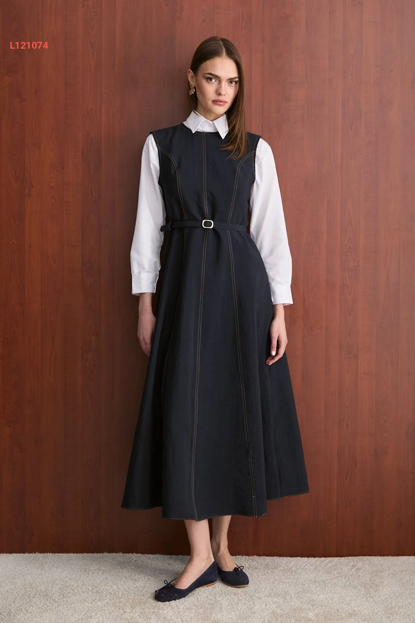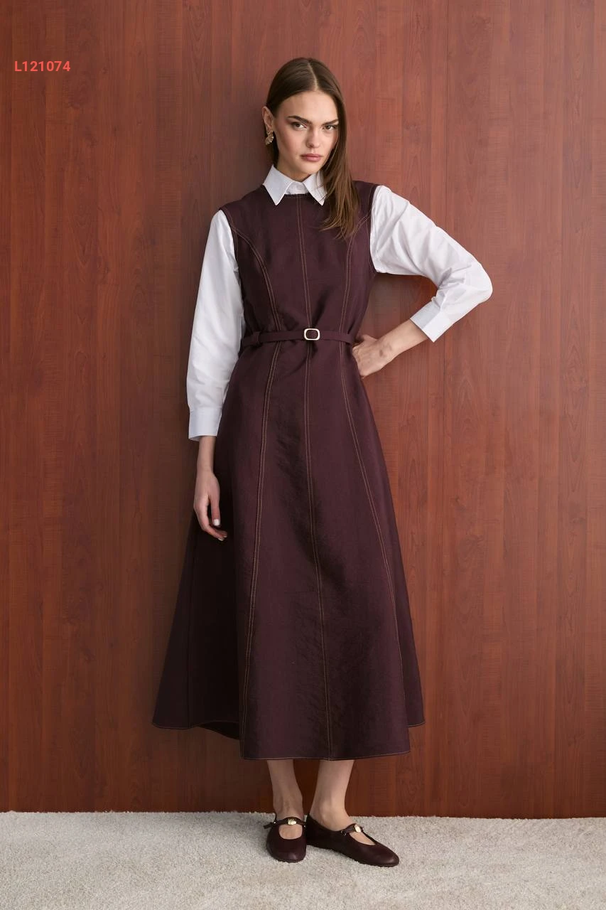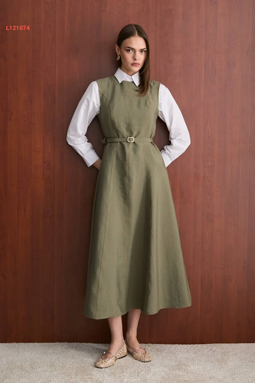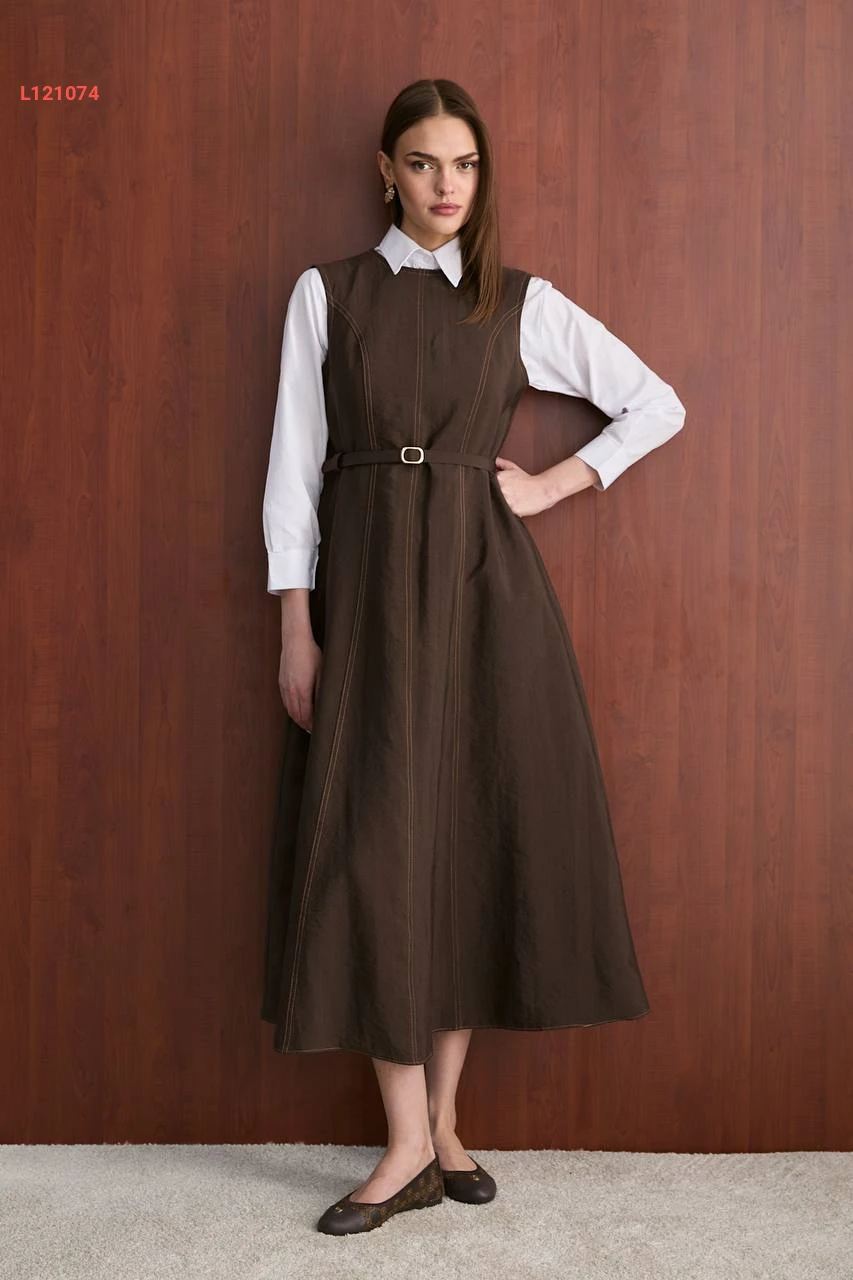 فستان طويل جيليه مع حزام