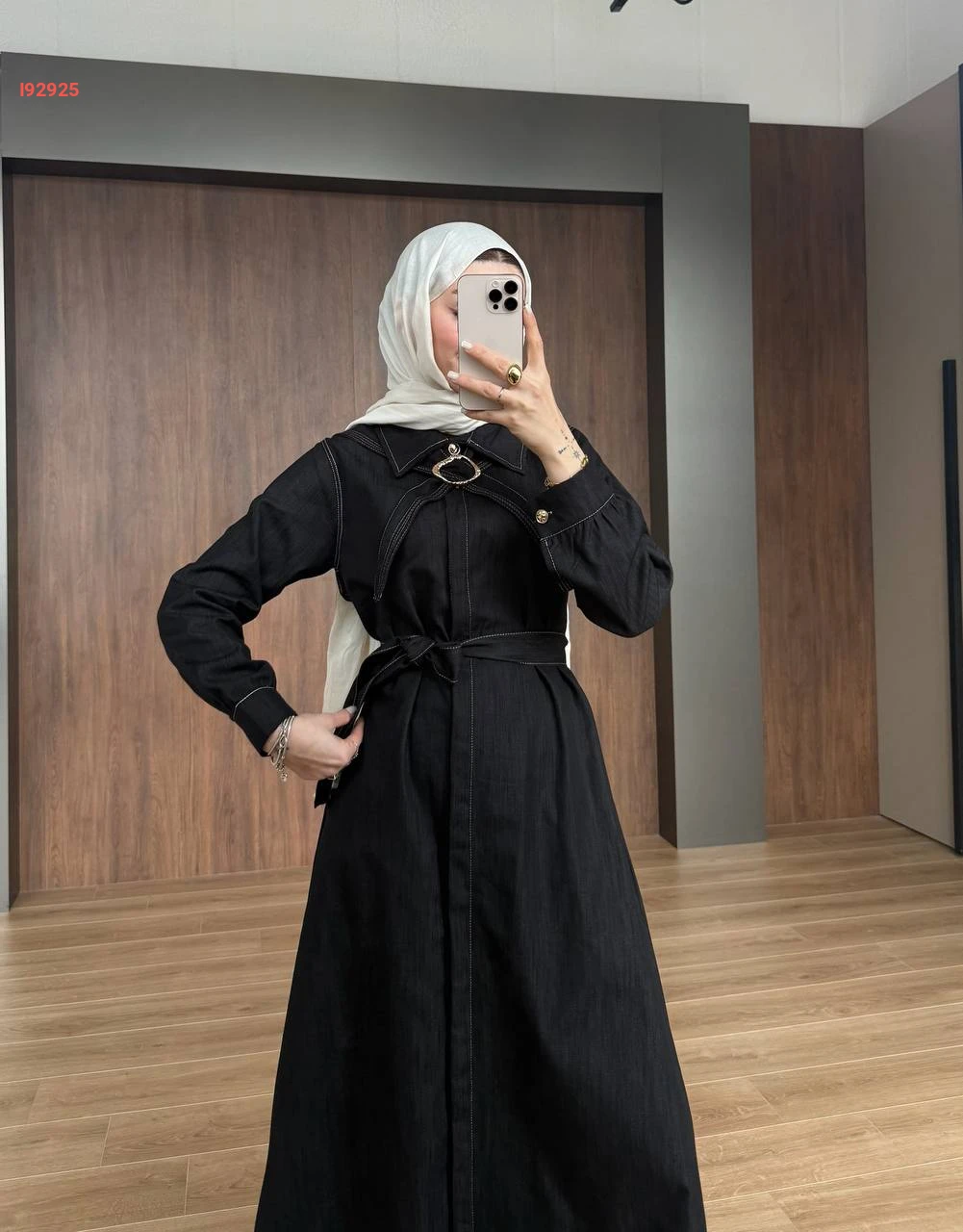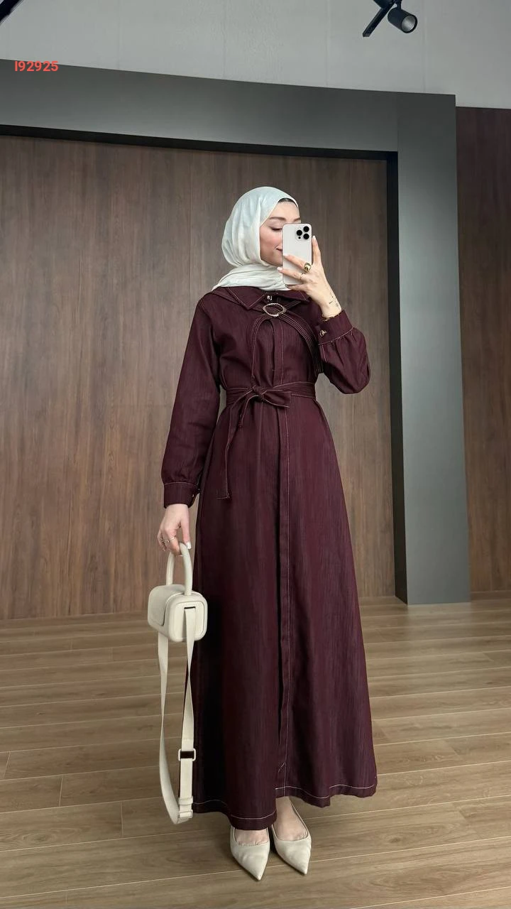 فستان طويل مع فولار بإبزيم