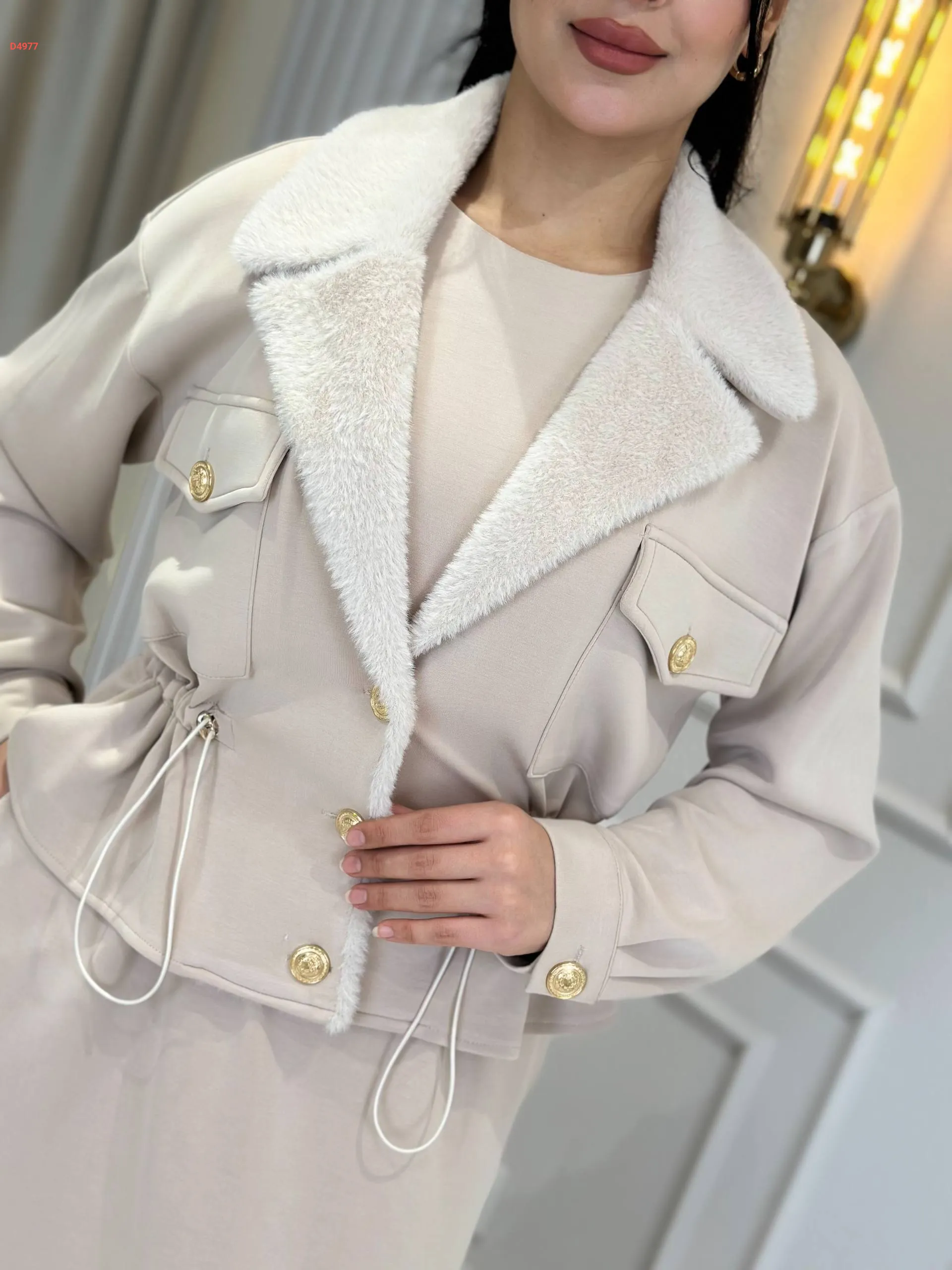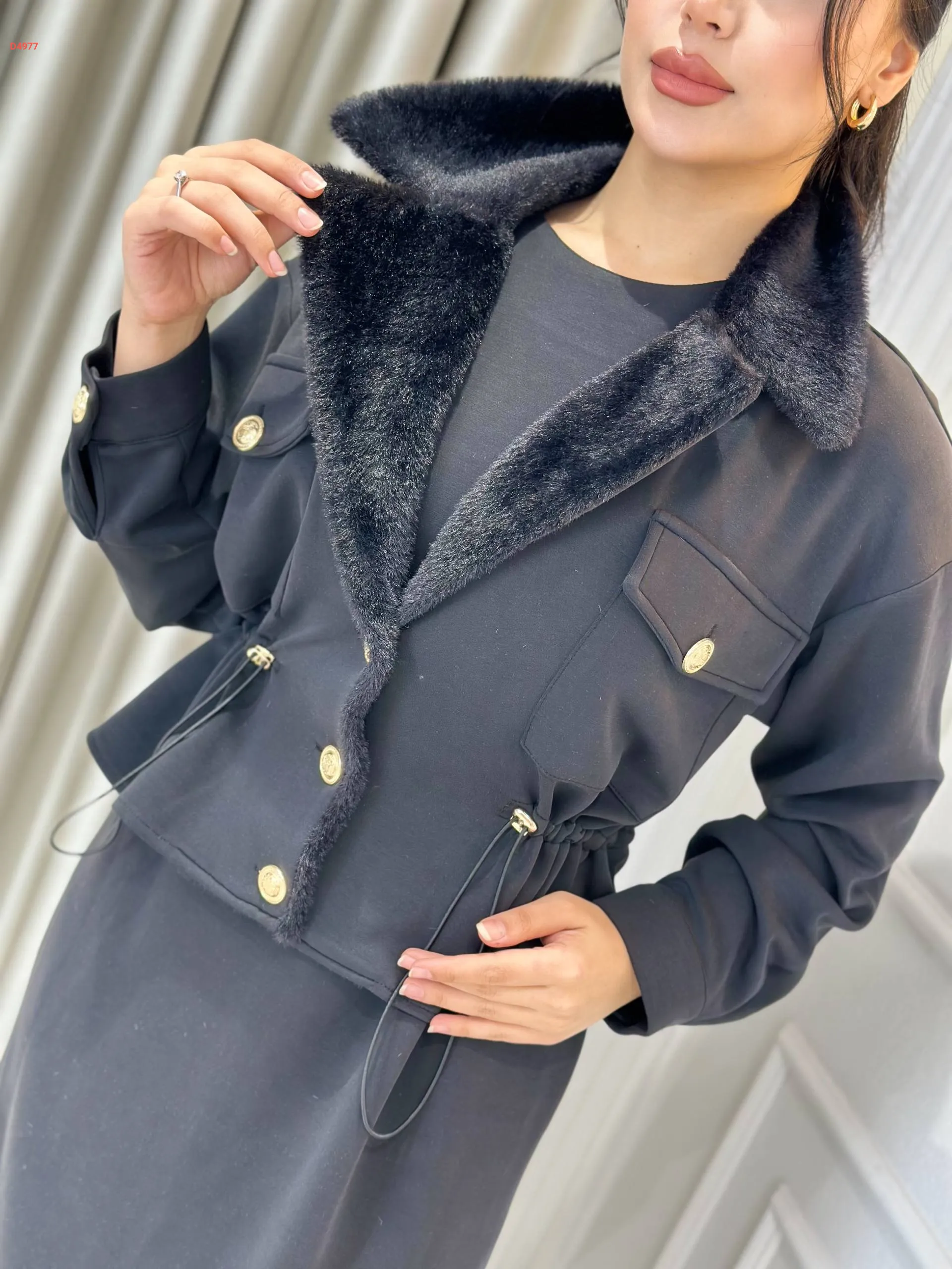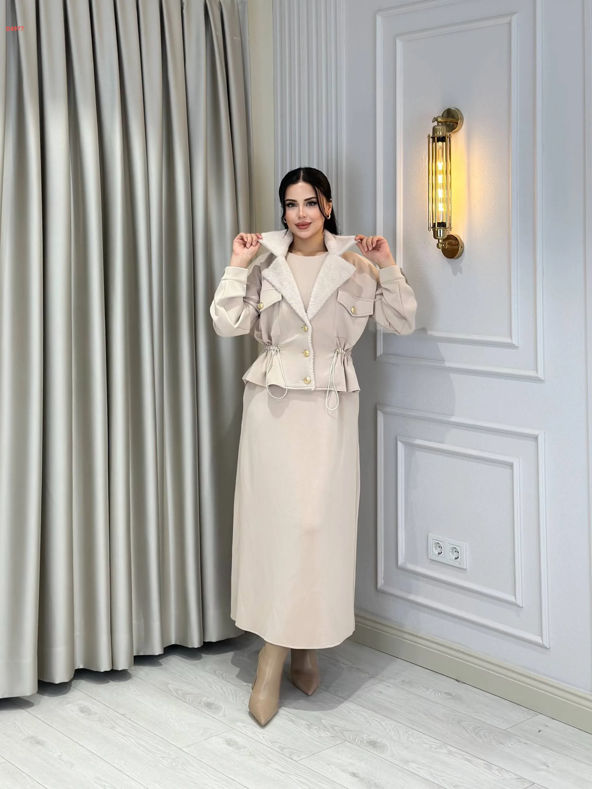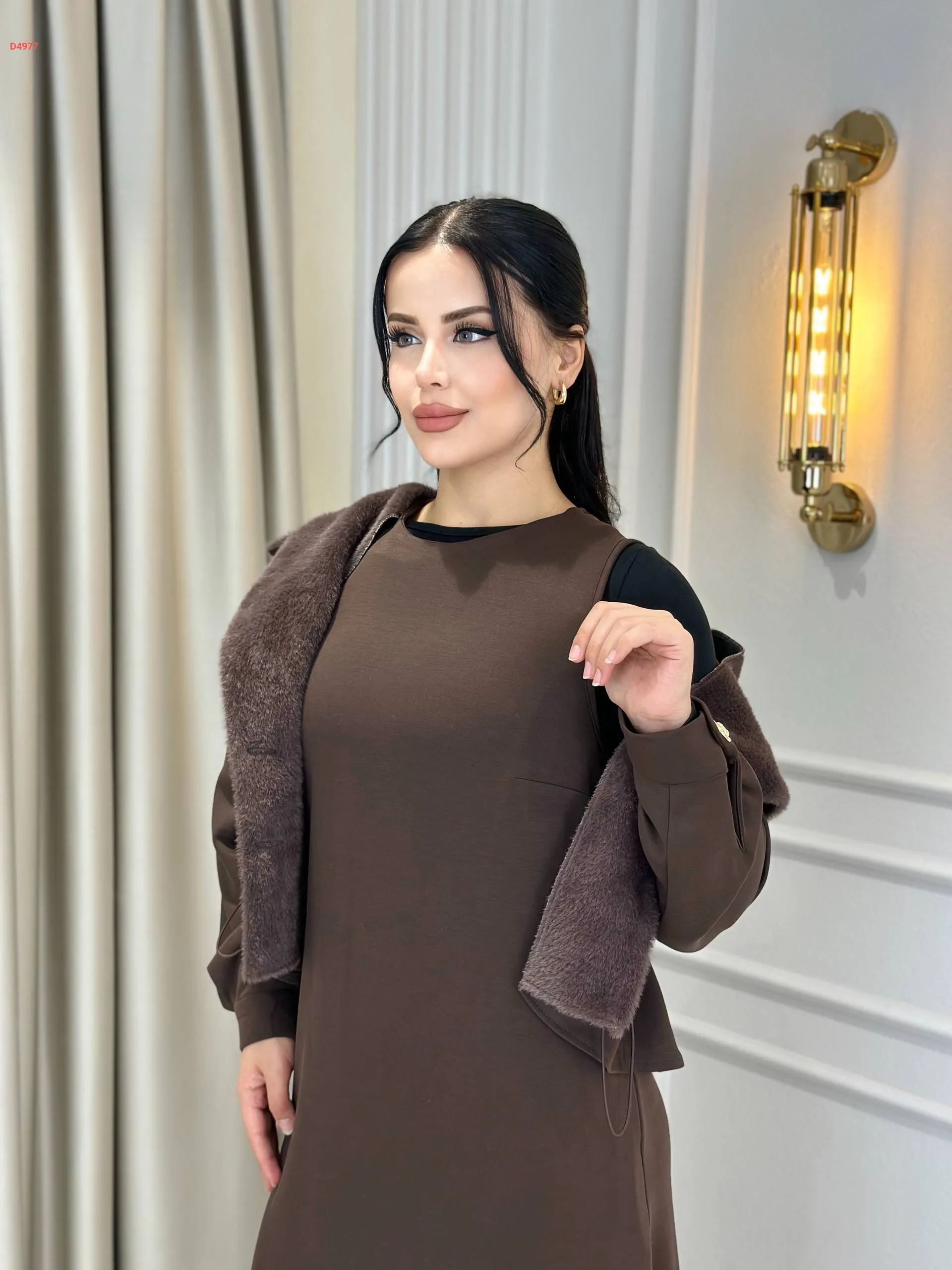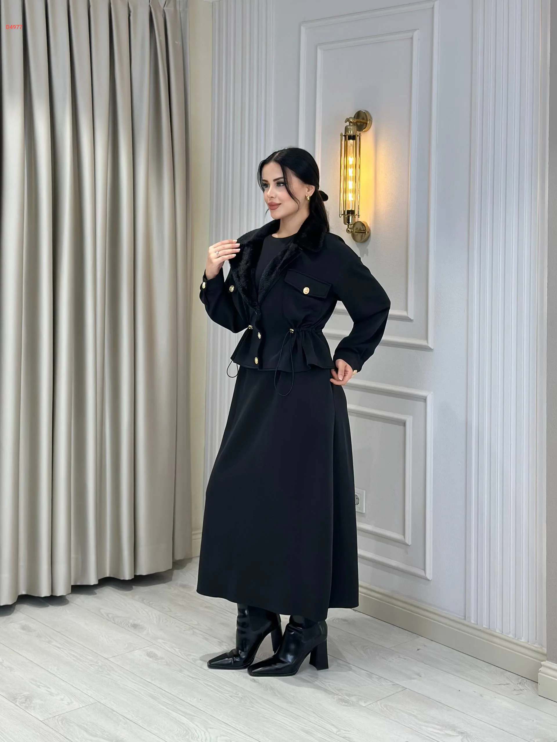 فستان طويل مع جاكيت بياقة فرو