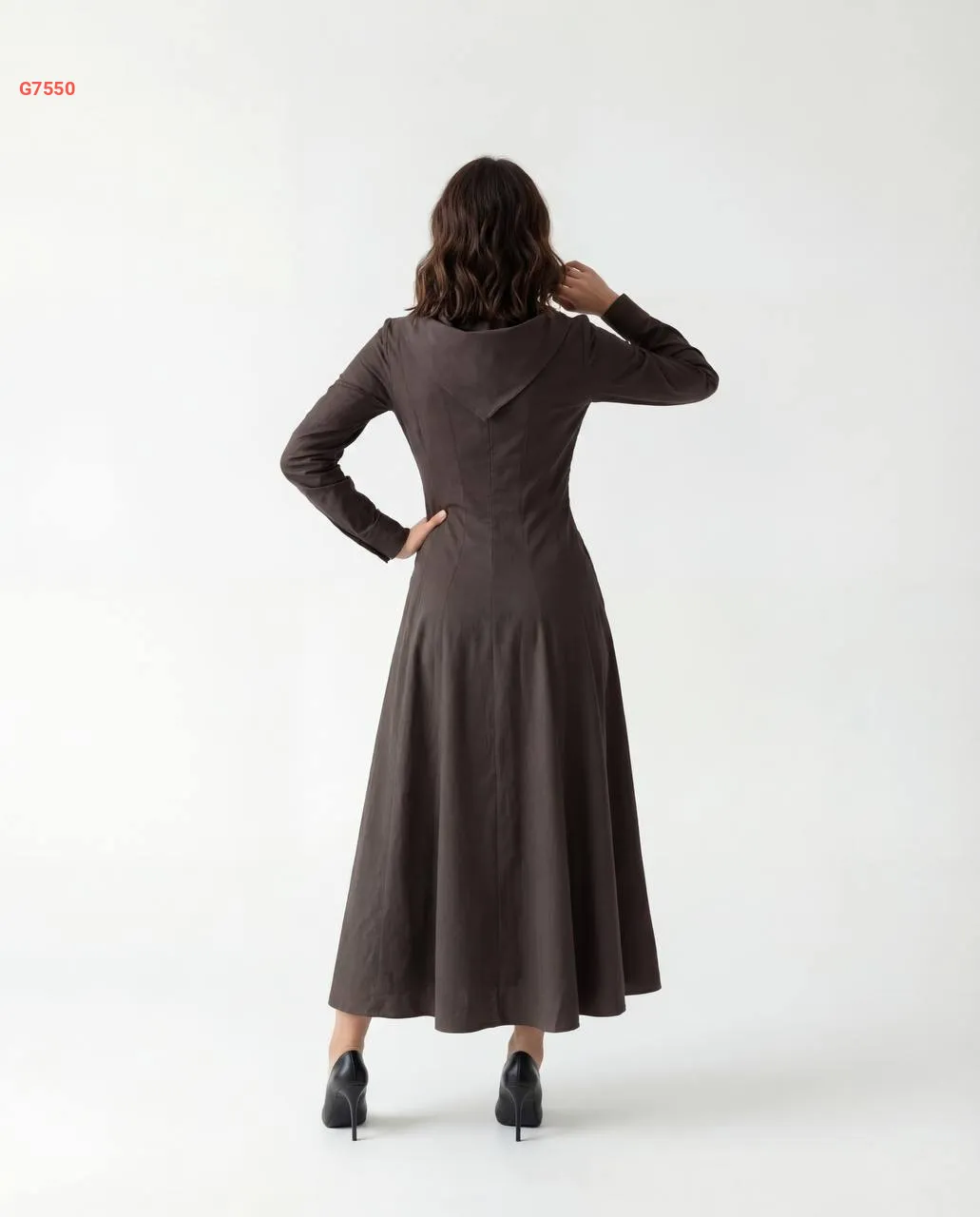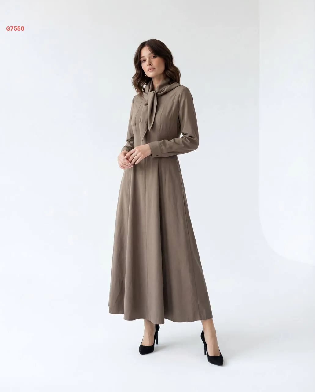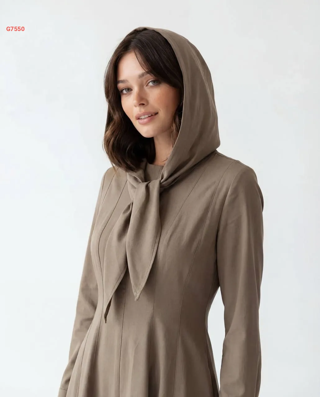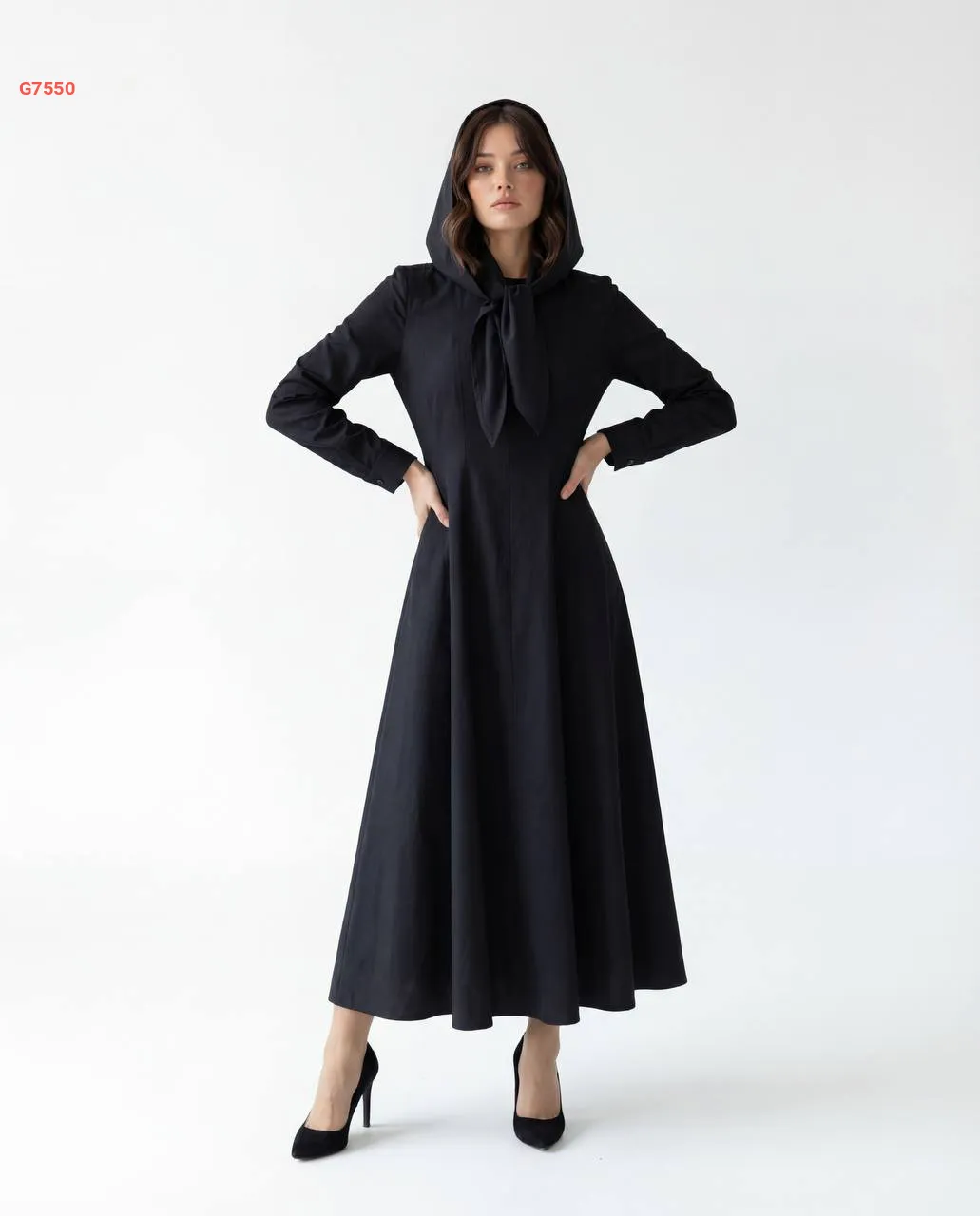 فستان طويل بطاقية وفولار