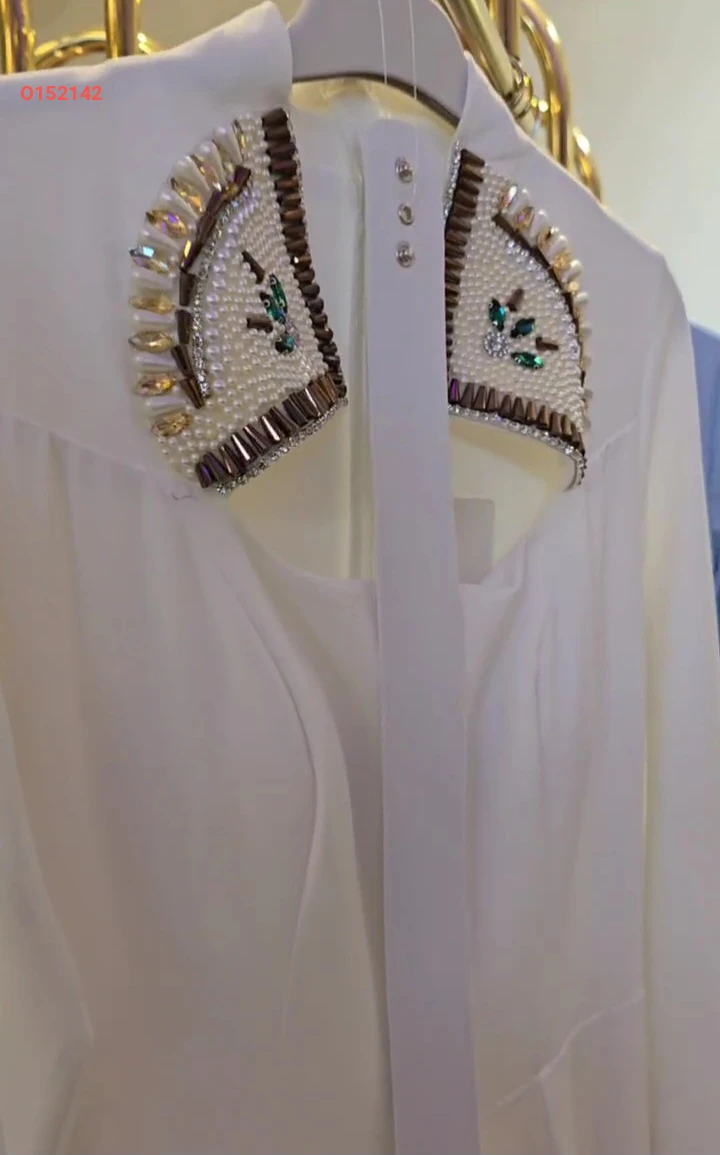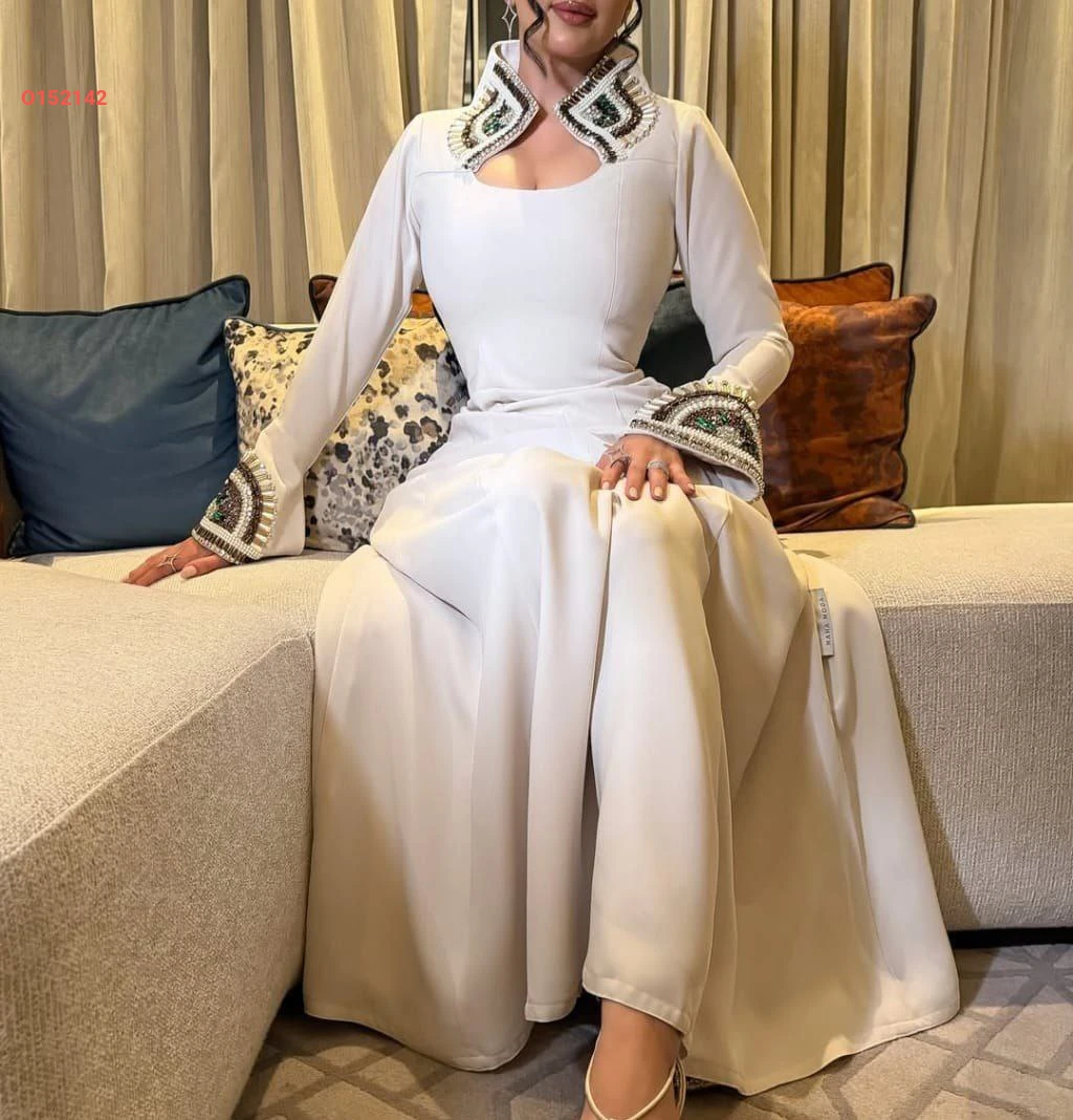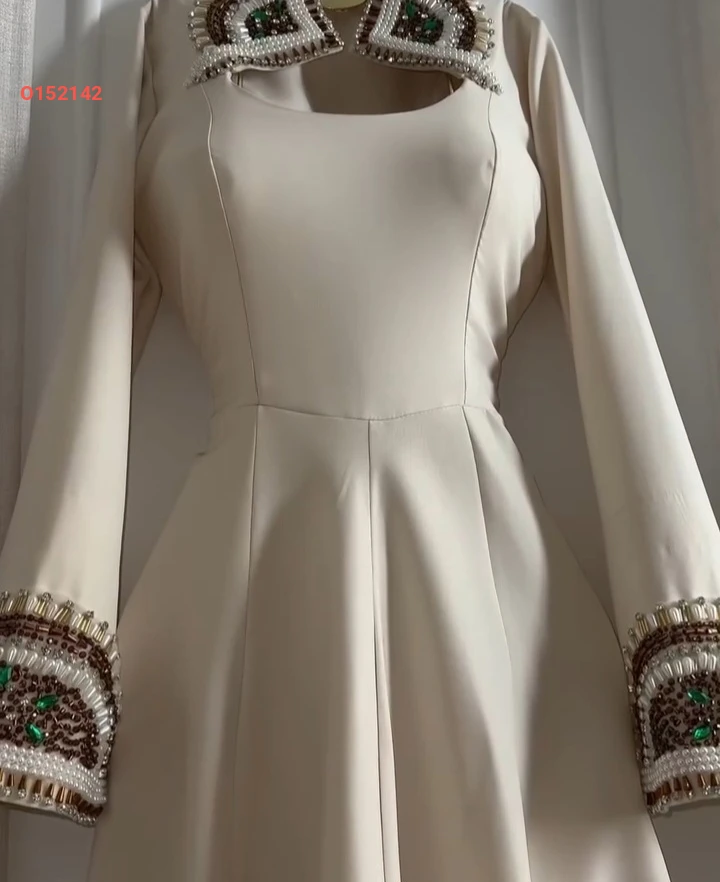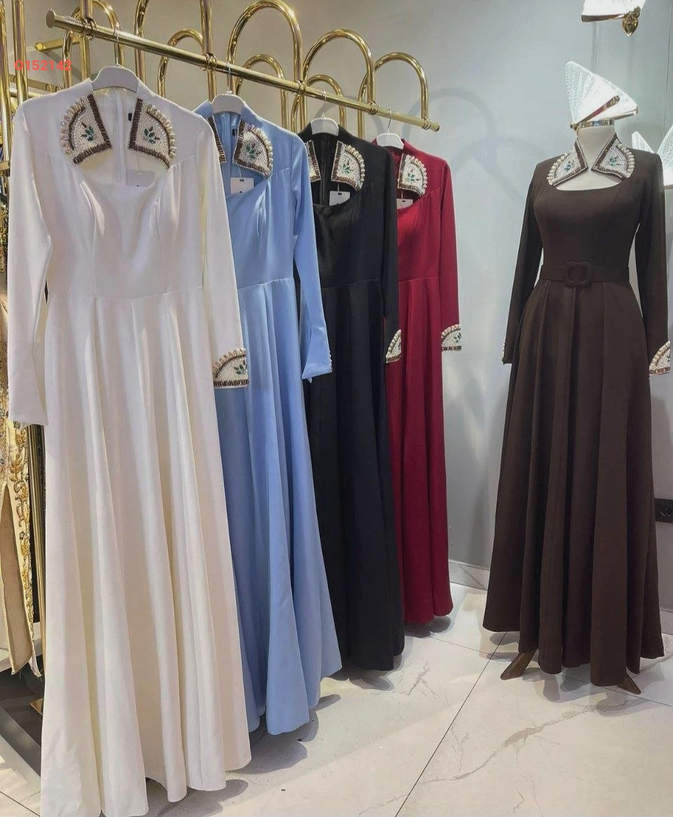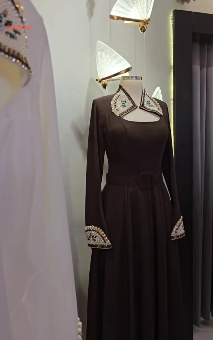فستان طويل بياقة ملكية مطرزة لولو وأحجار