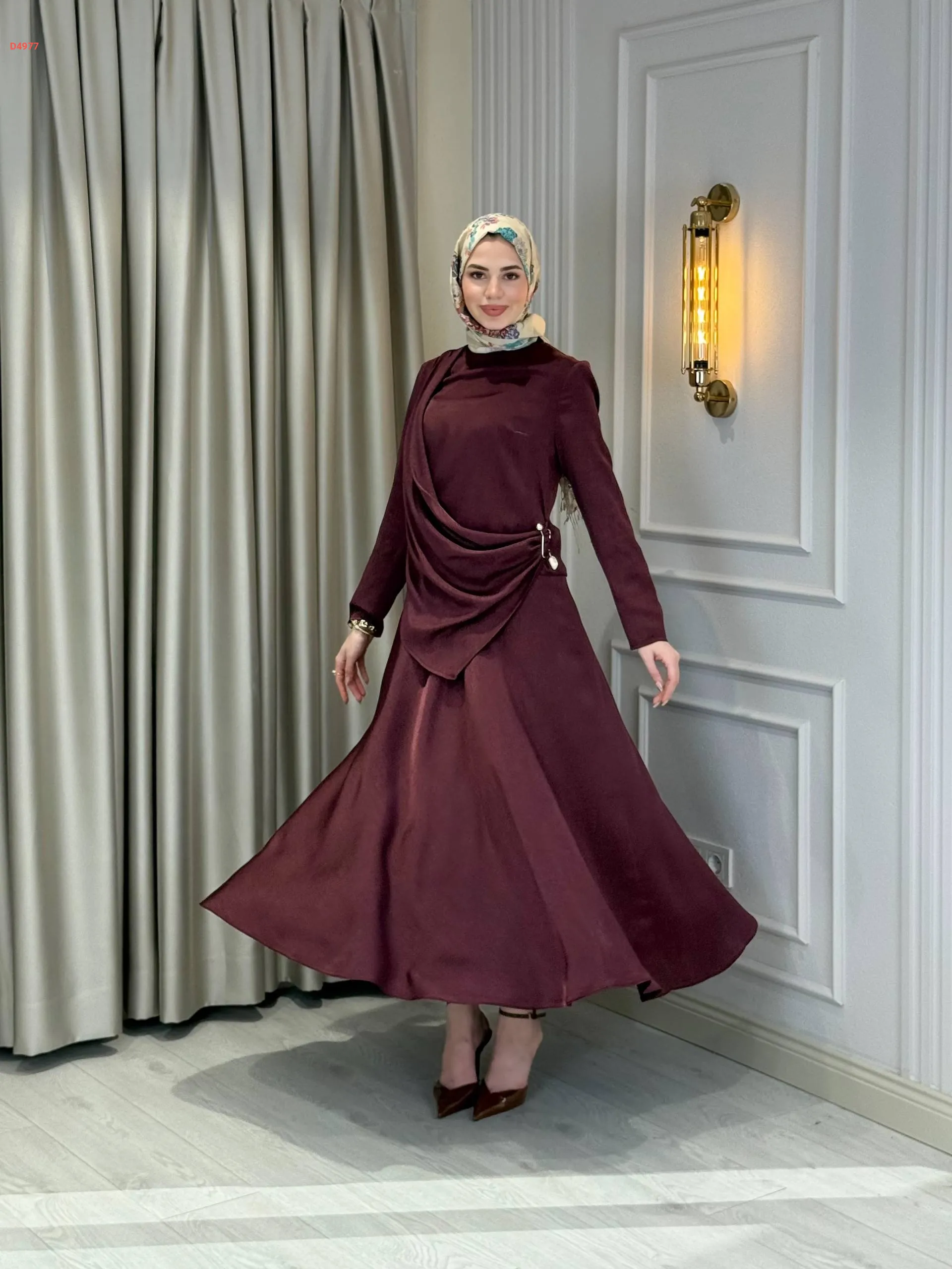 فستان طويل أطلس منقوش