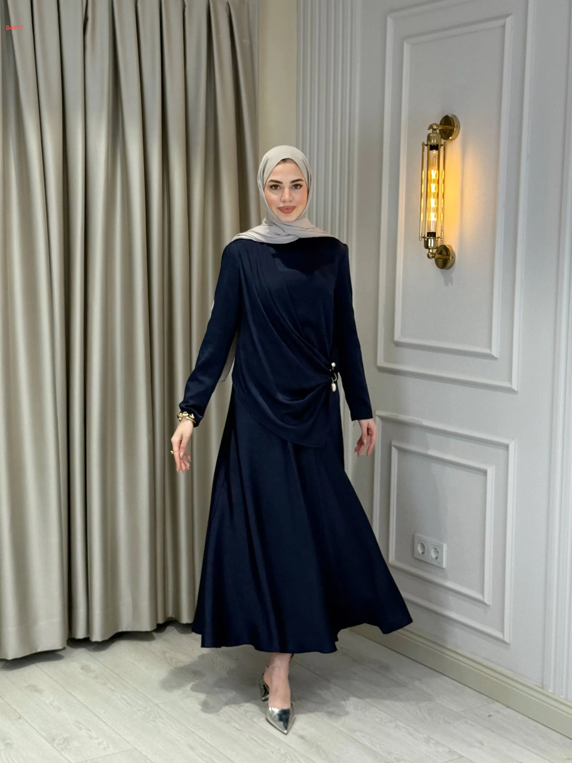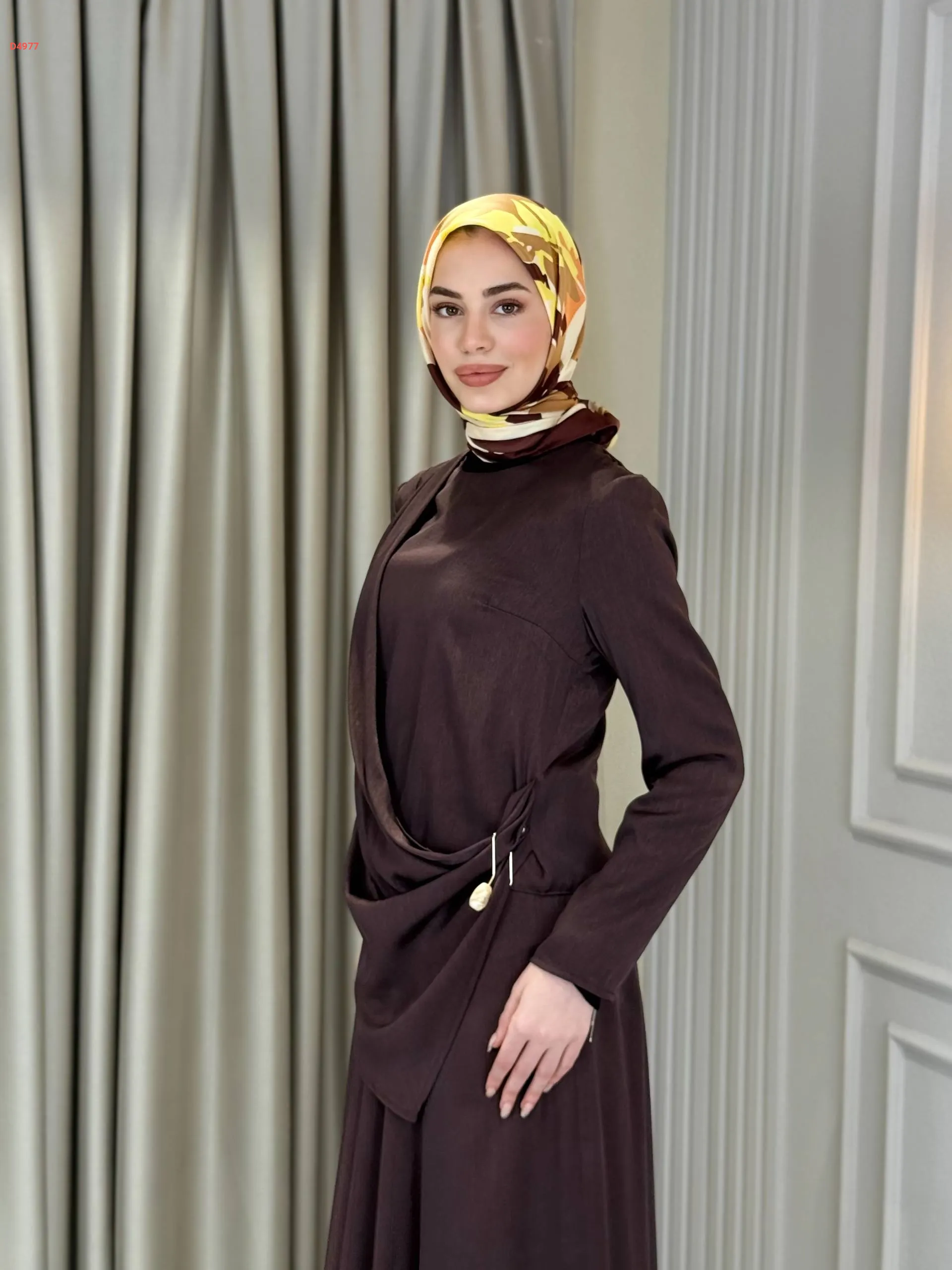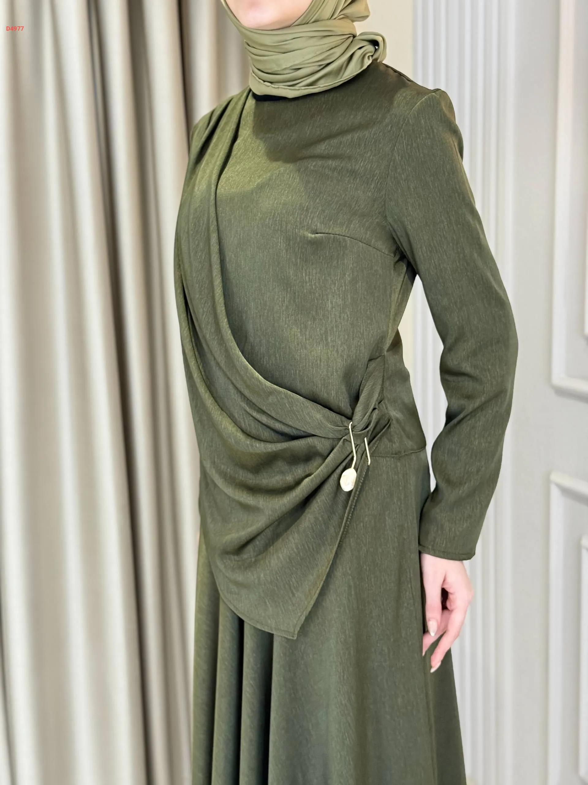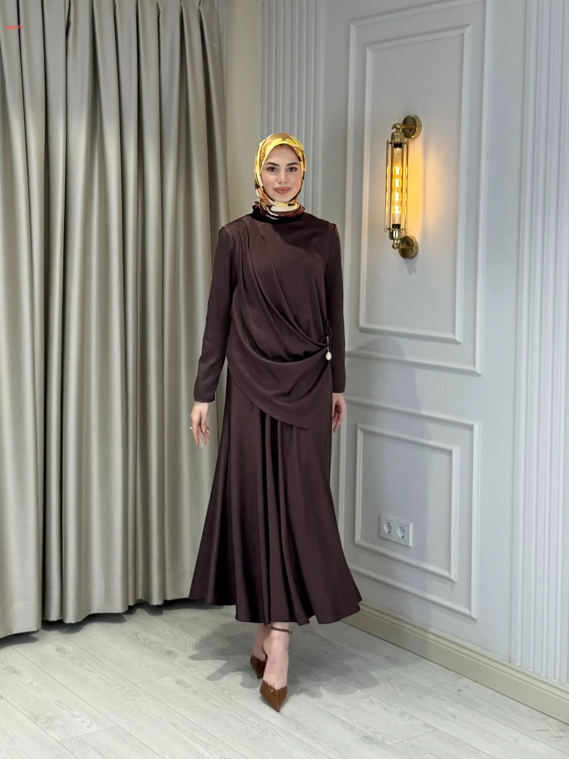 فستان طويل ببروش دهبي جانبي