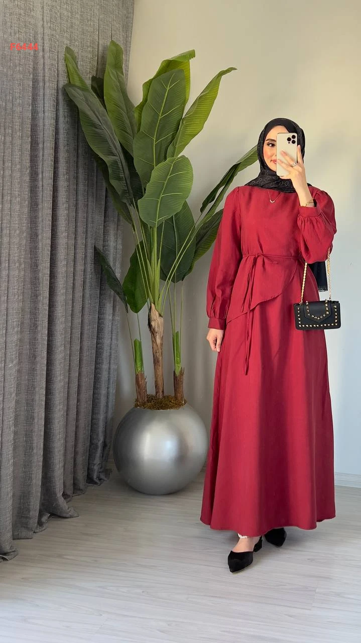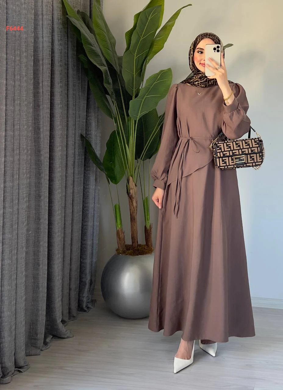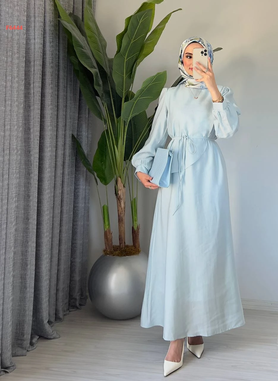 فستان طويل مع زنار ربط