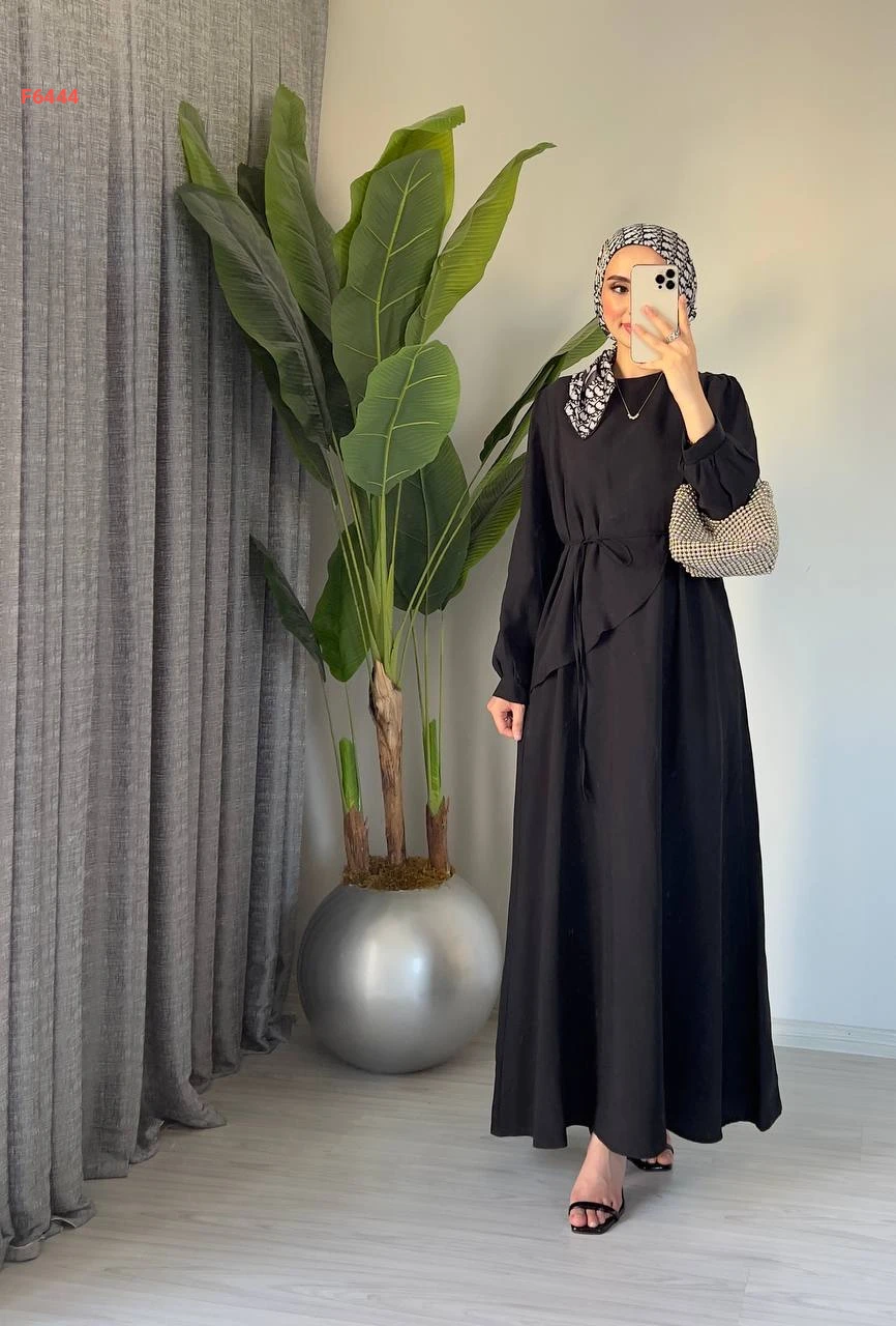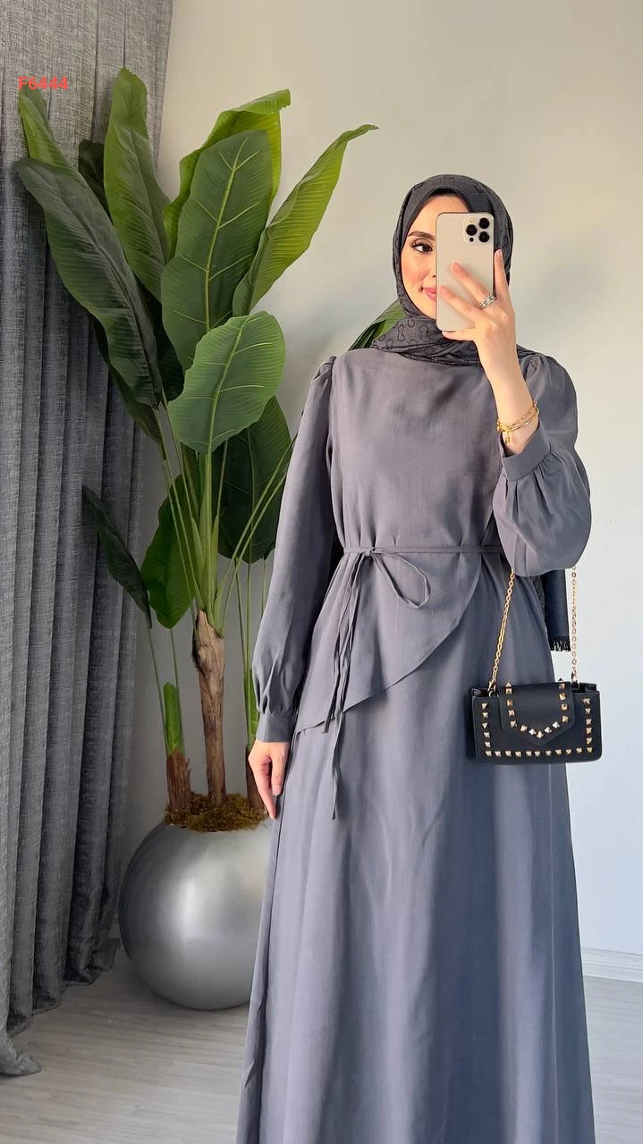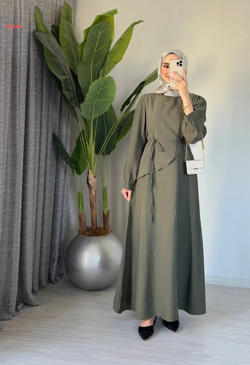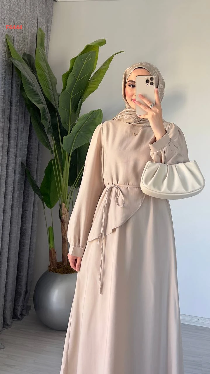 فستان طويل مع زنار ربط