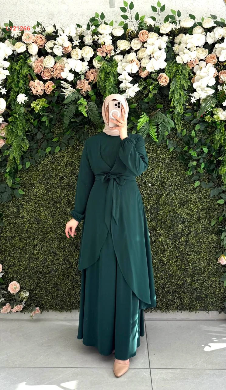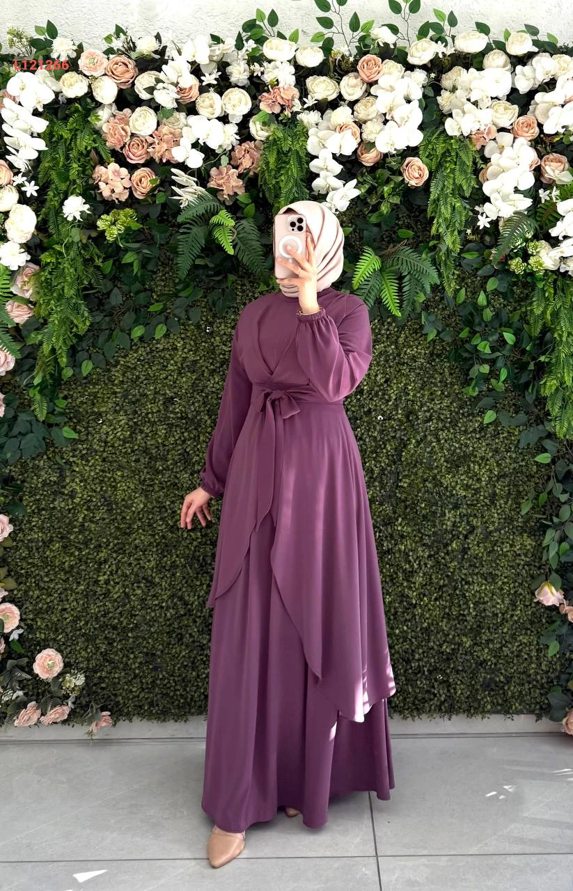 فستان طويل مع زنار ربط