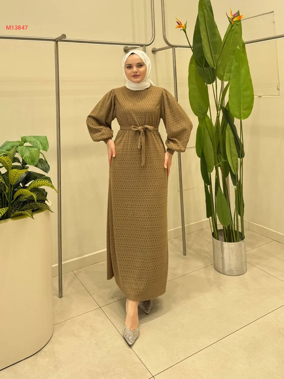 فستان طويل مع زنار ربط