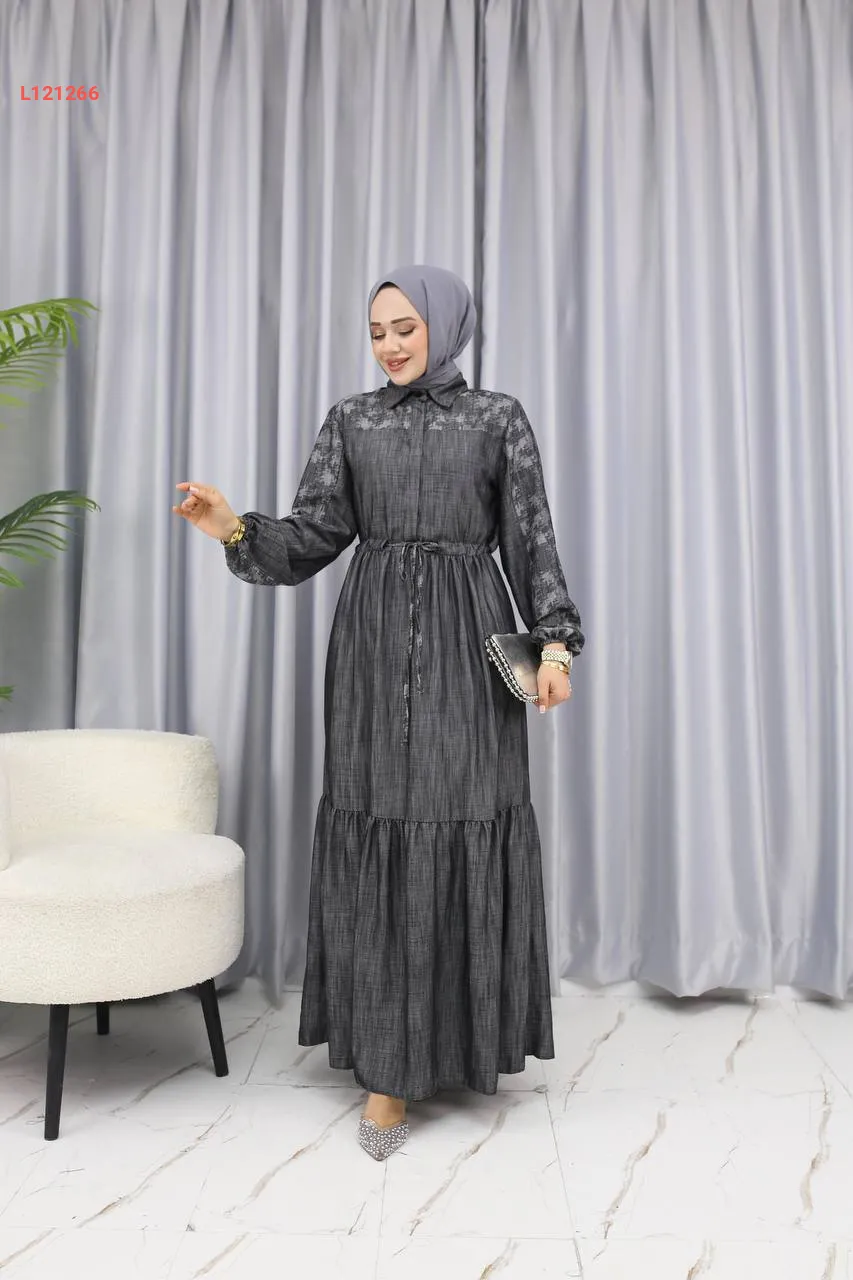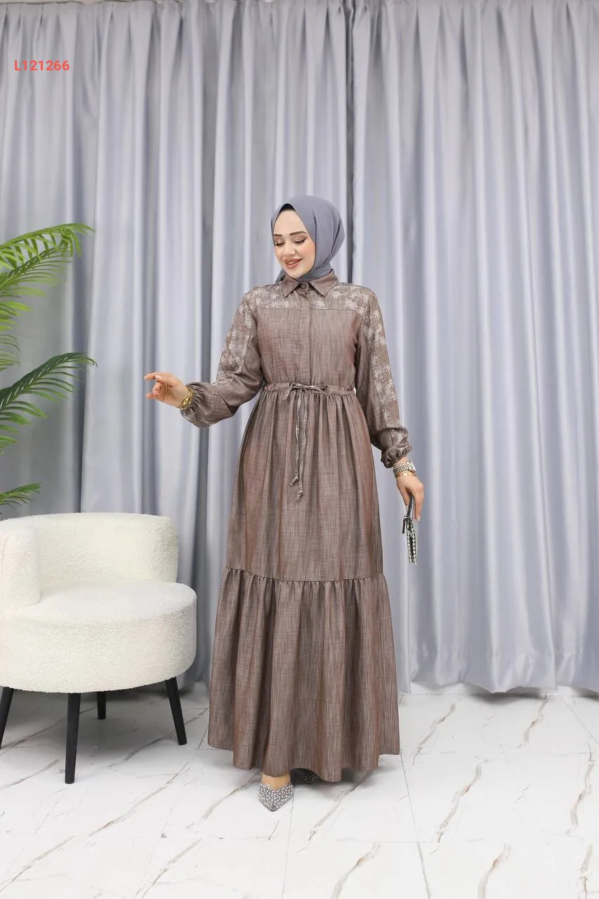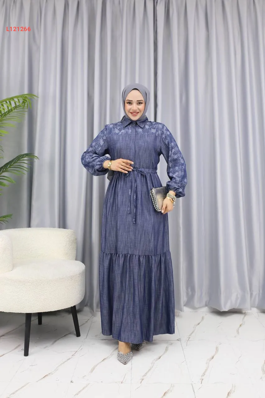 فستان طويل تنسل بزنار داخلي