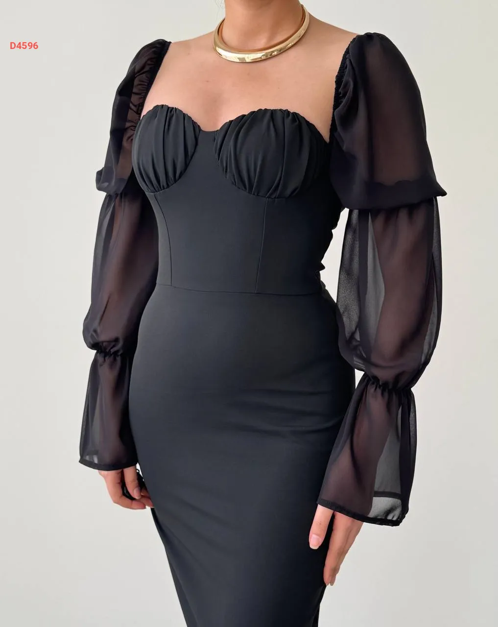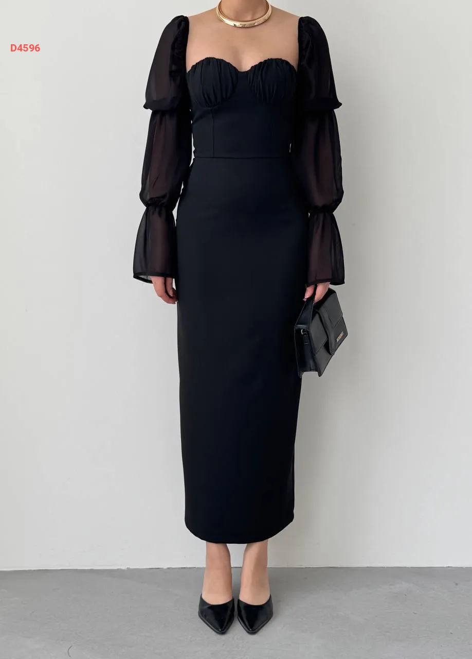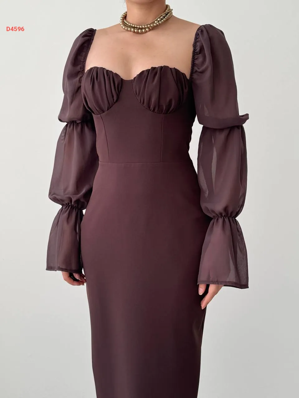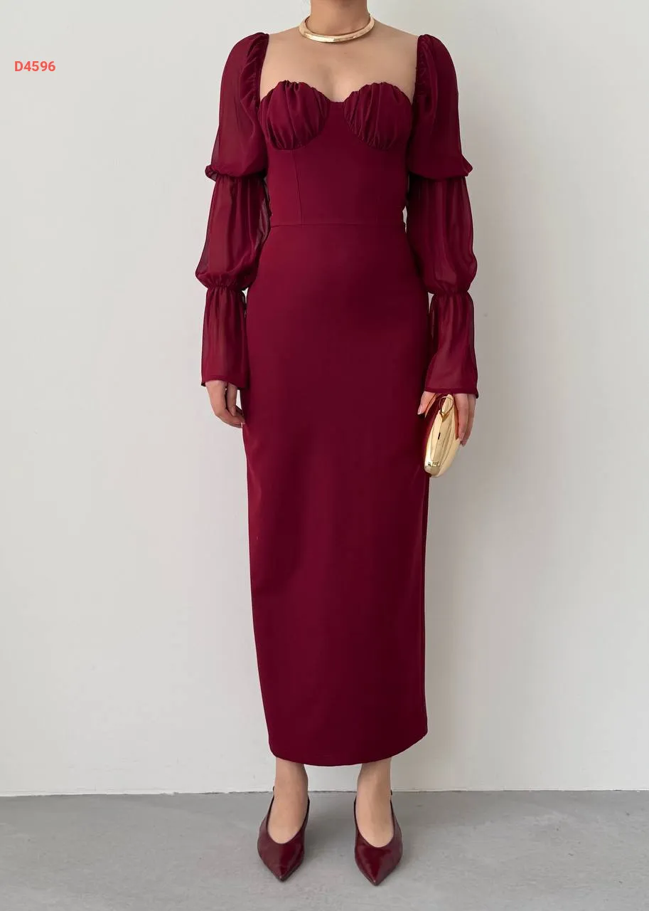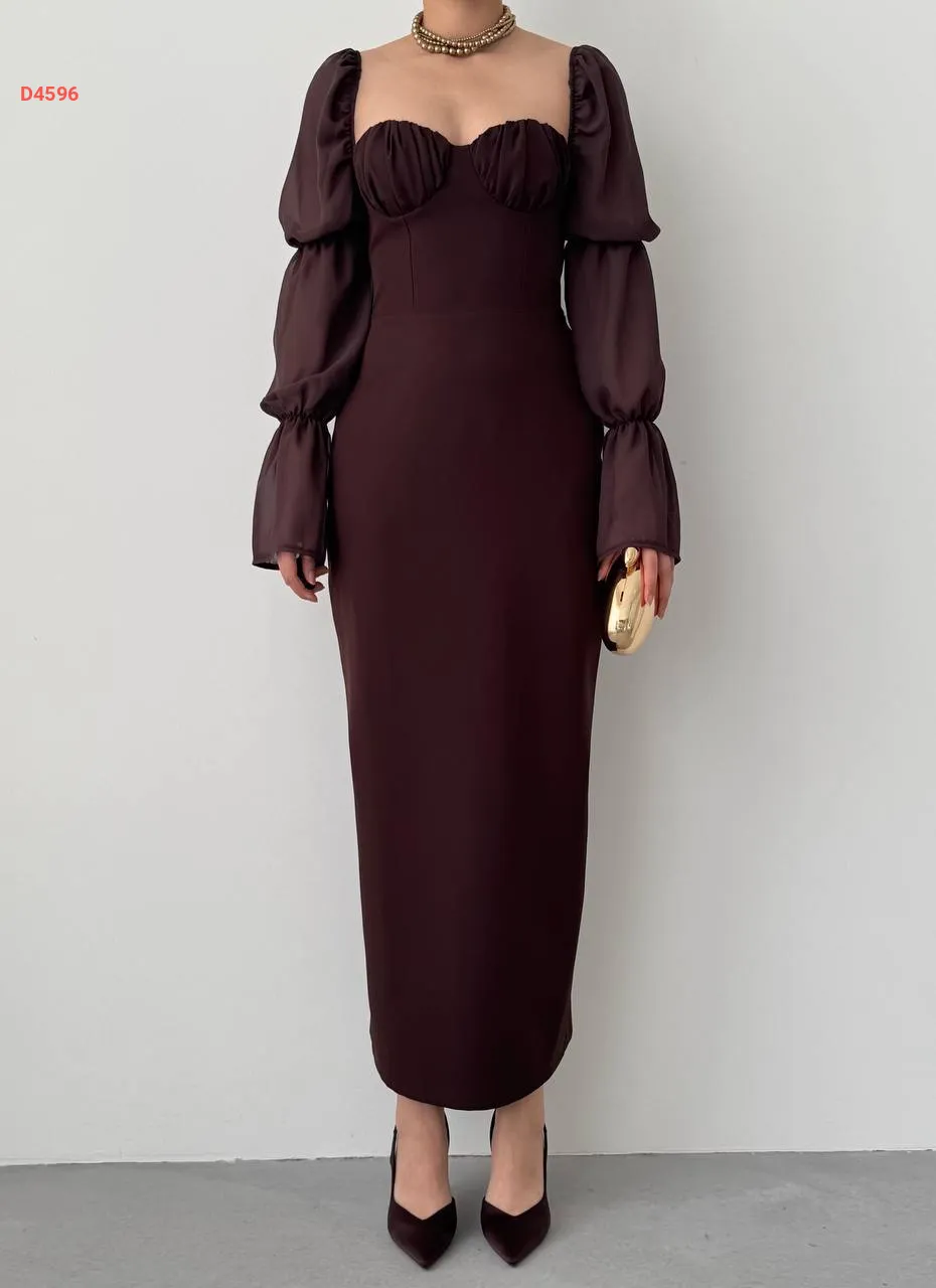 فستان طويل بأكمام شيفون بالونية