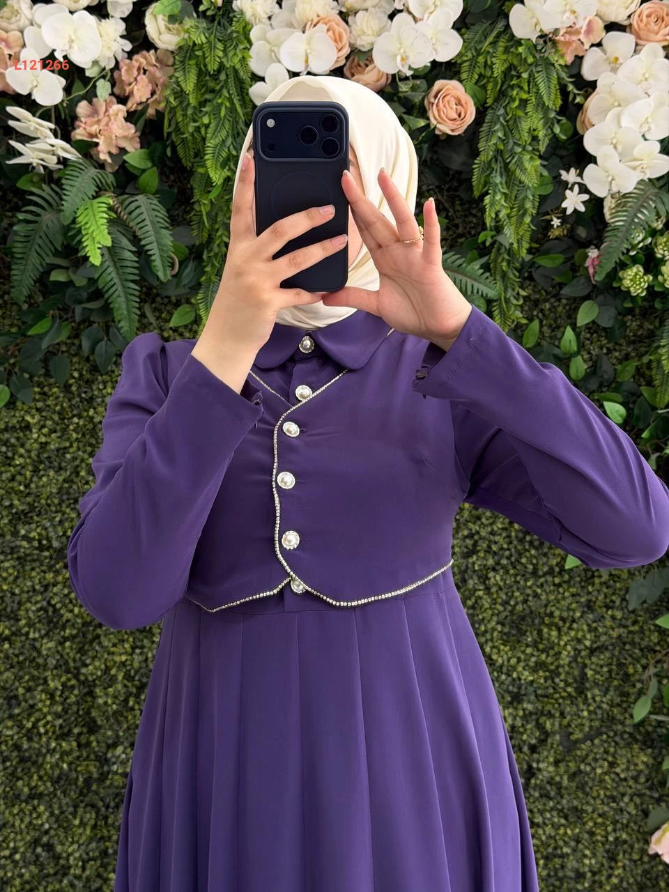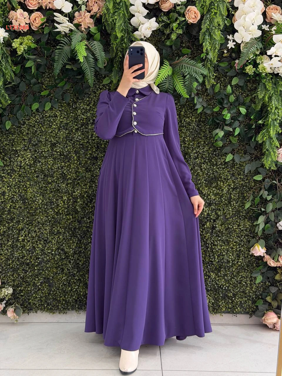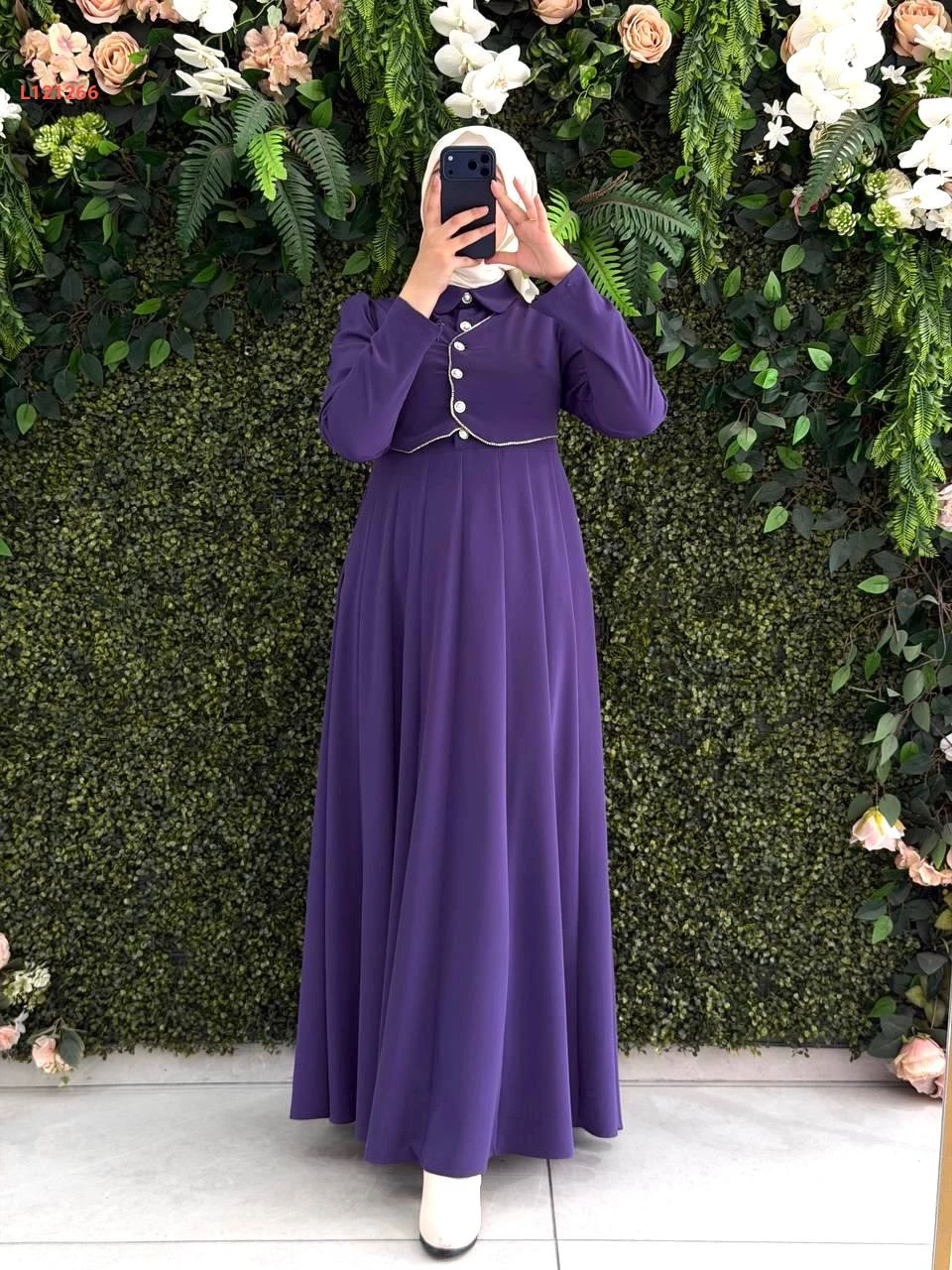 فستان طويل بتفاصيل بوليرو أزرار