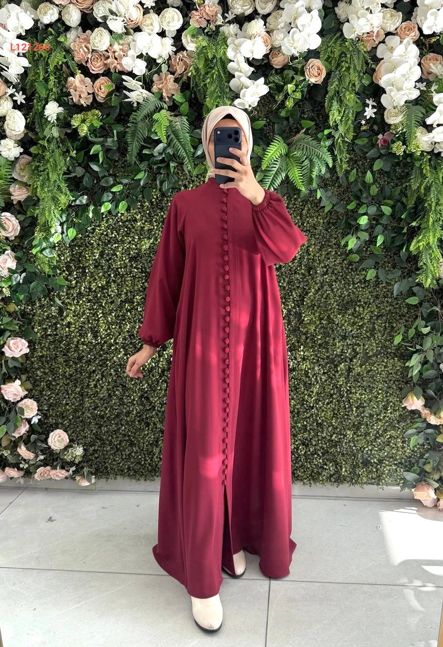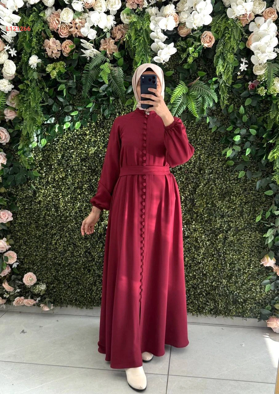فستان طويل بأزرار وزنار