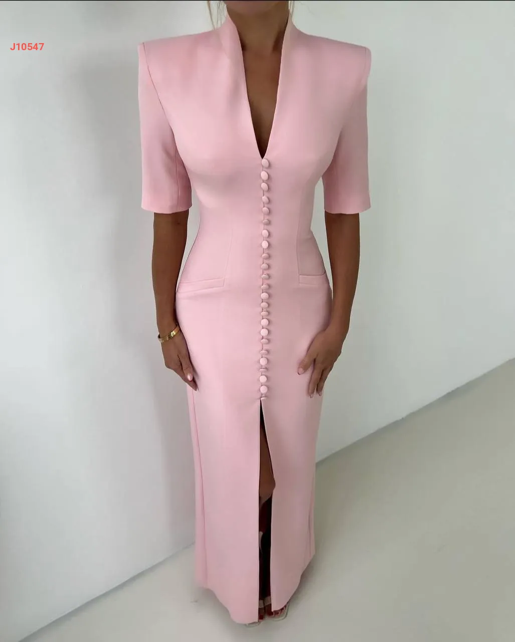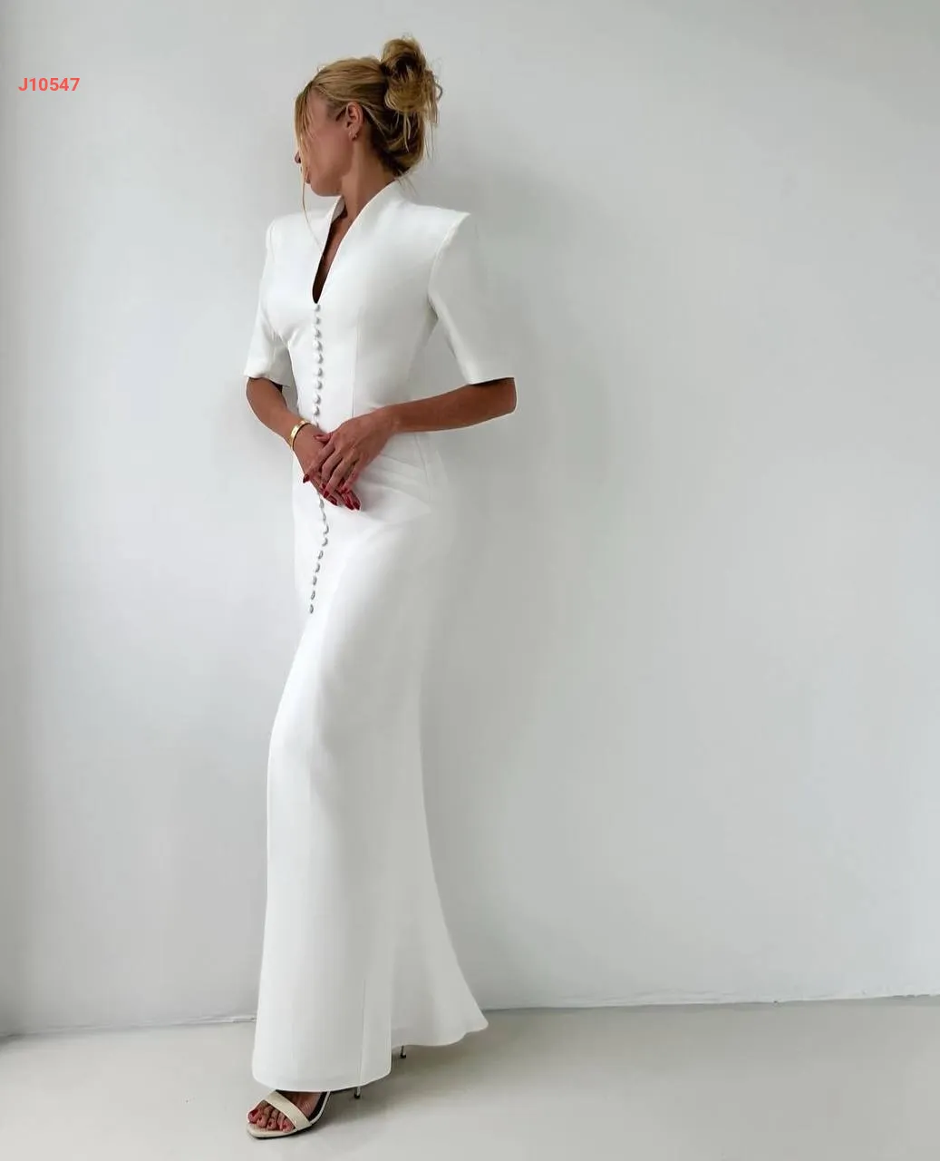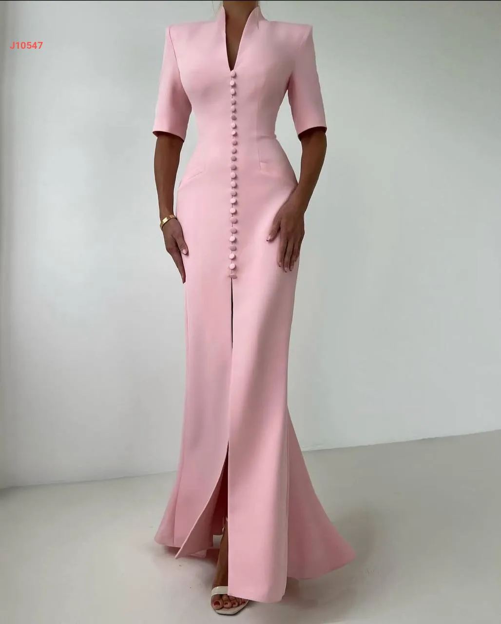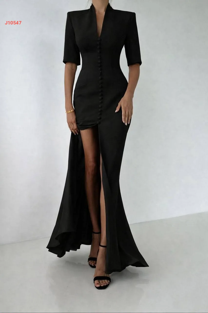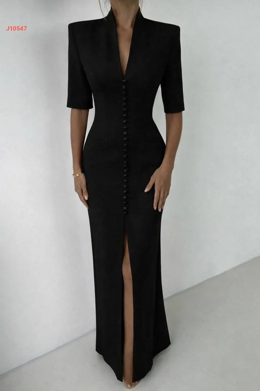 فستان طويل بأزرار وقبة ملكية
