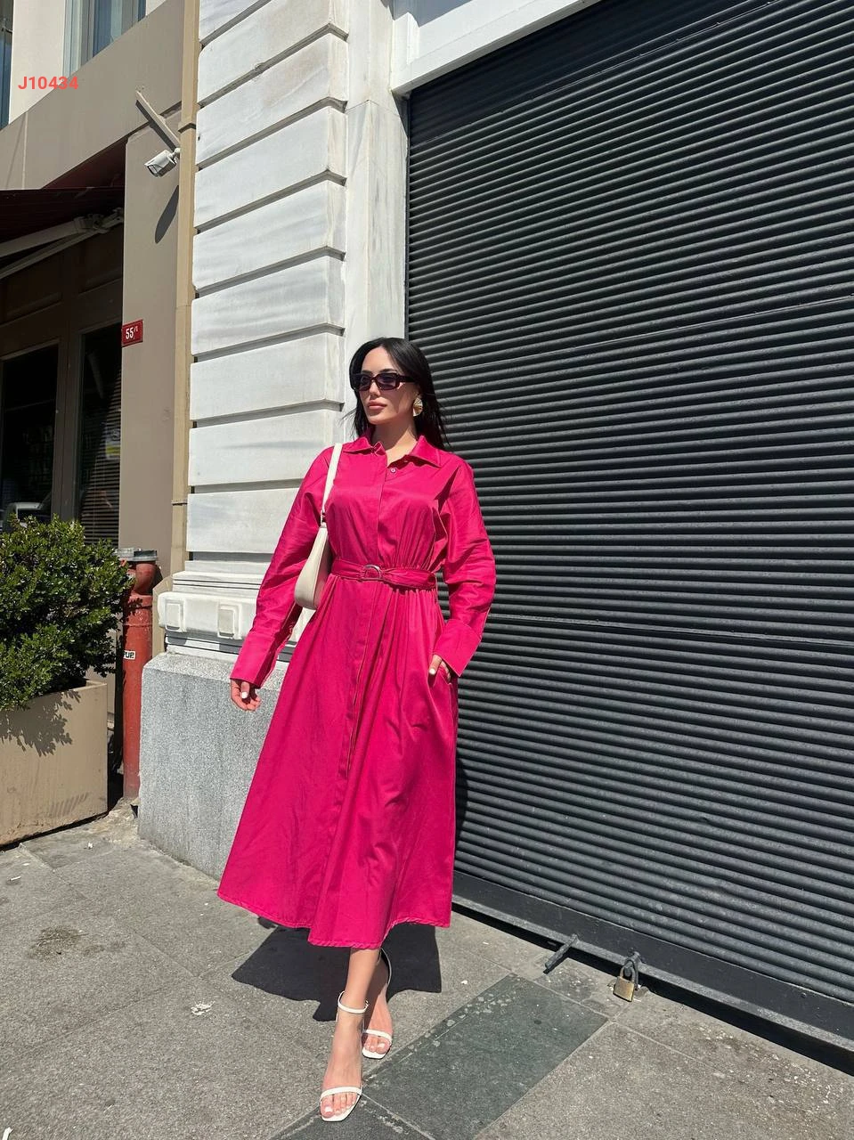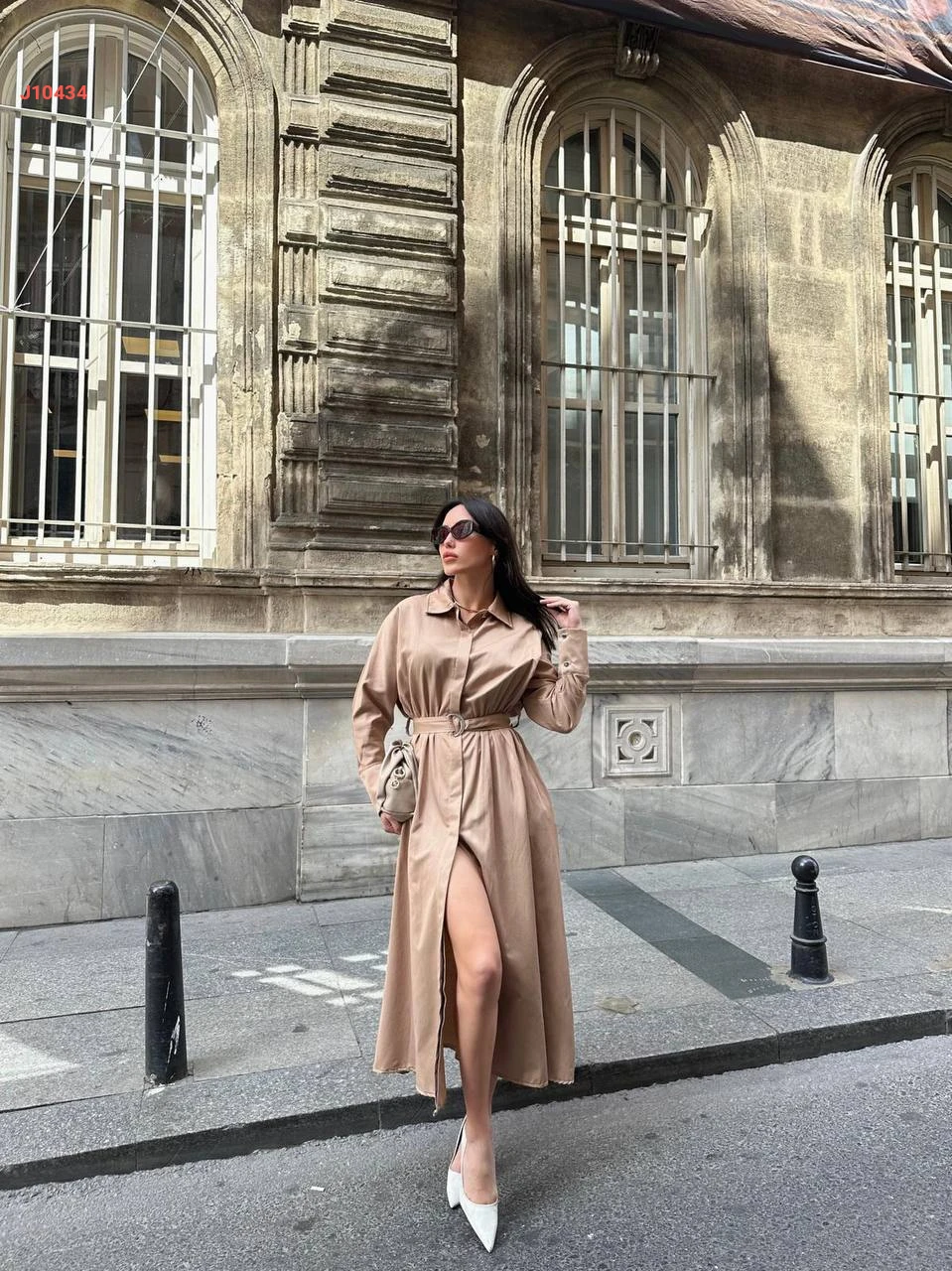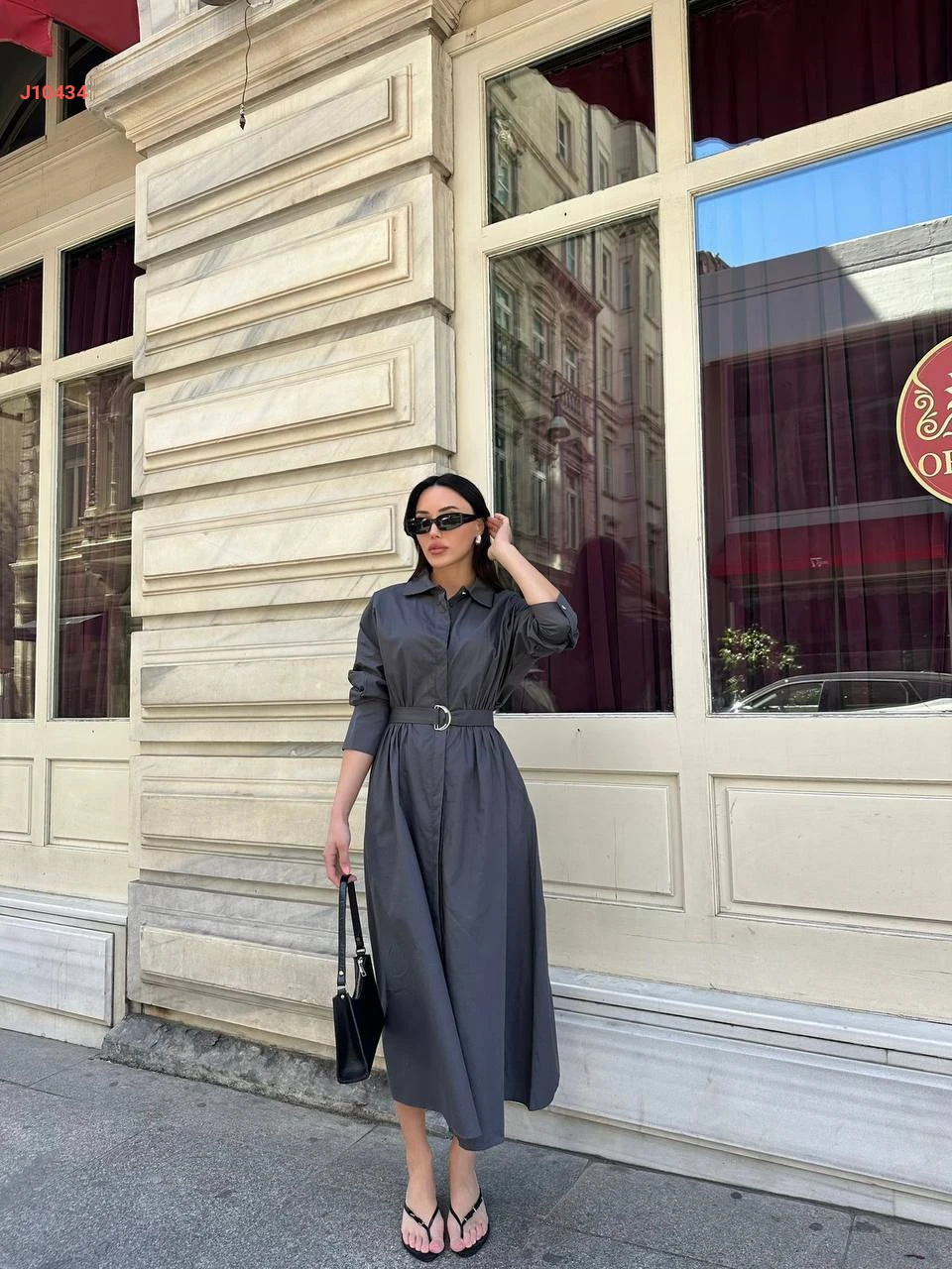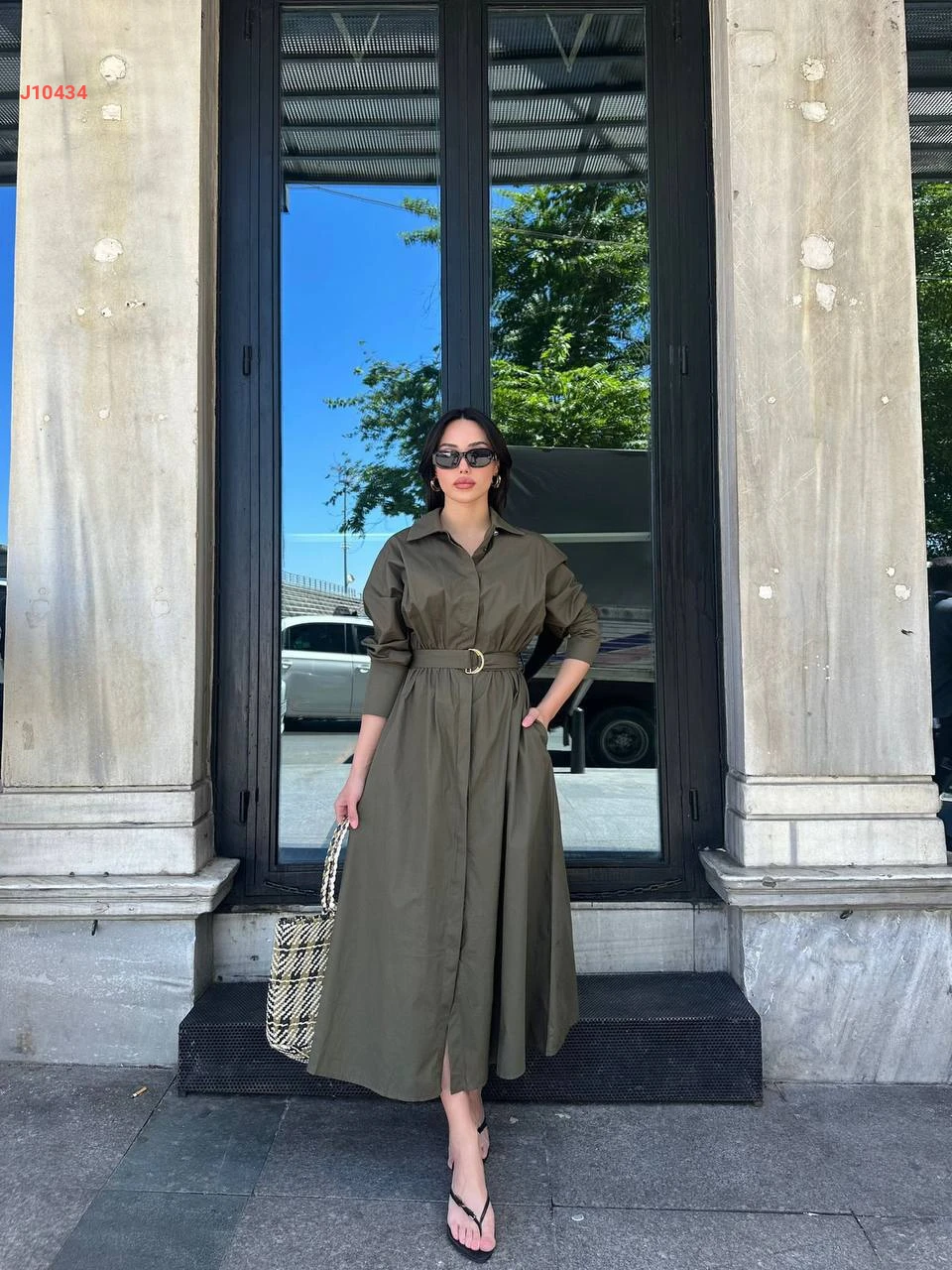 فستان طويل بأزرار وحزام