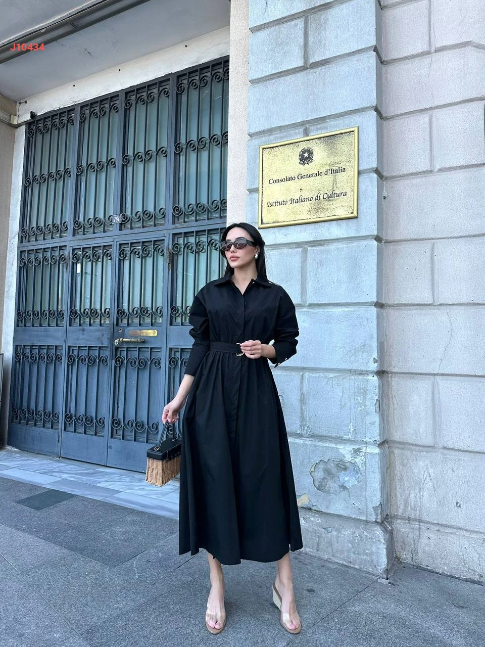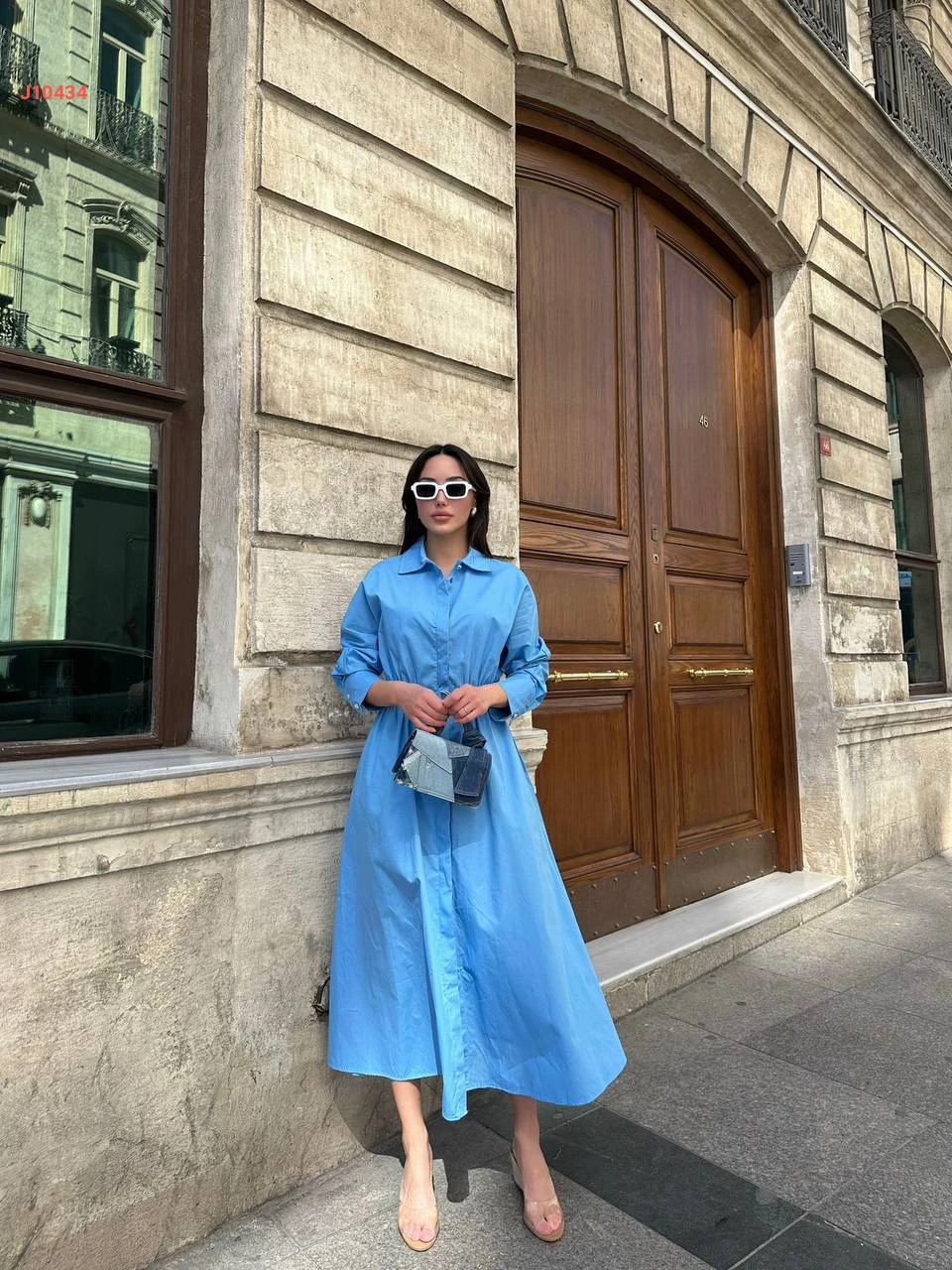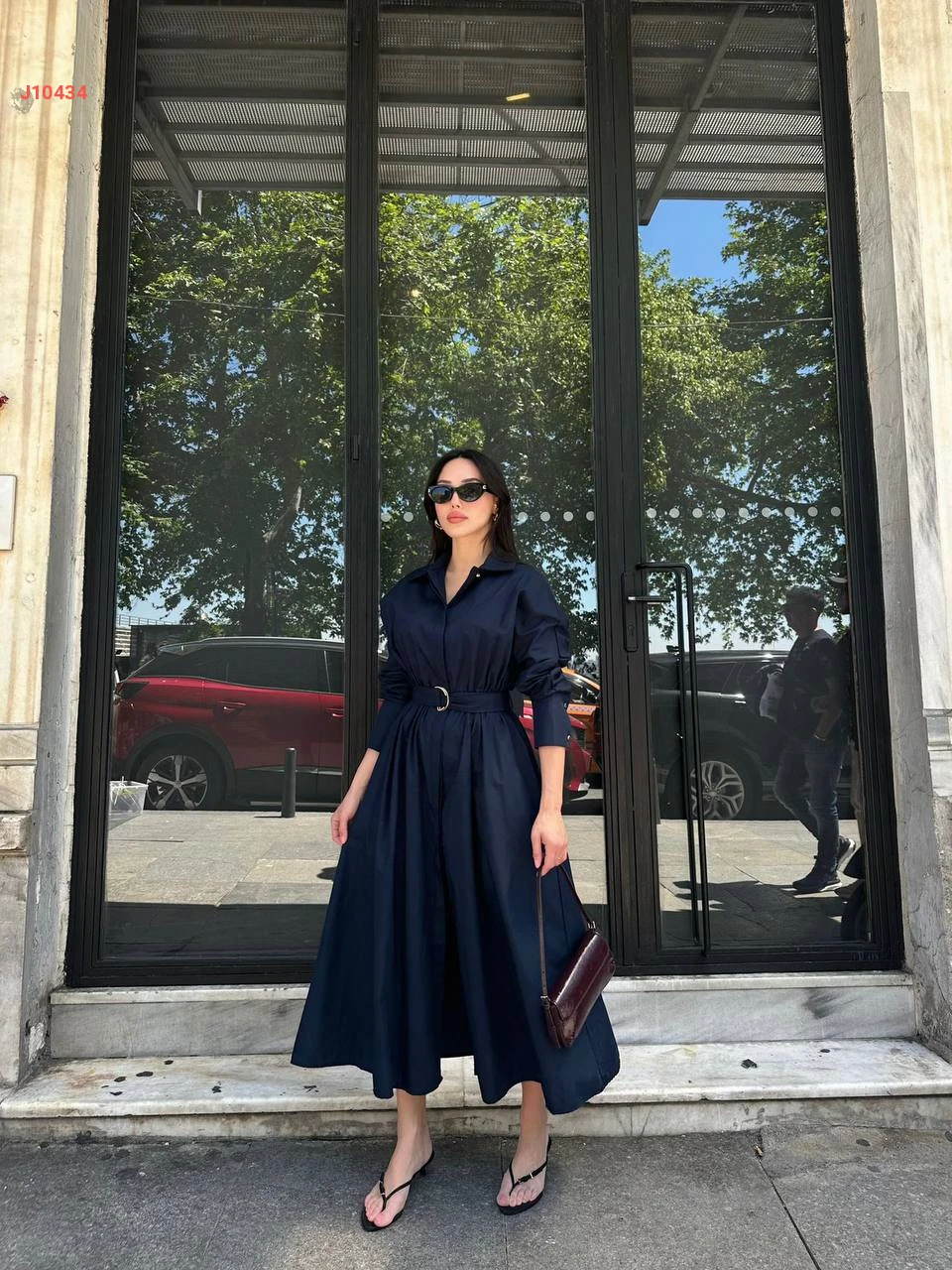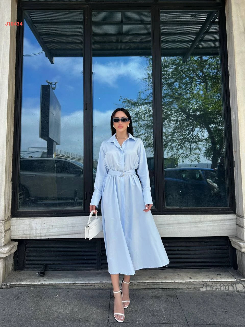 فستان طويل بأزرار وحزام