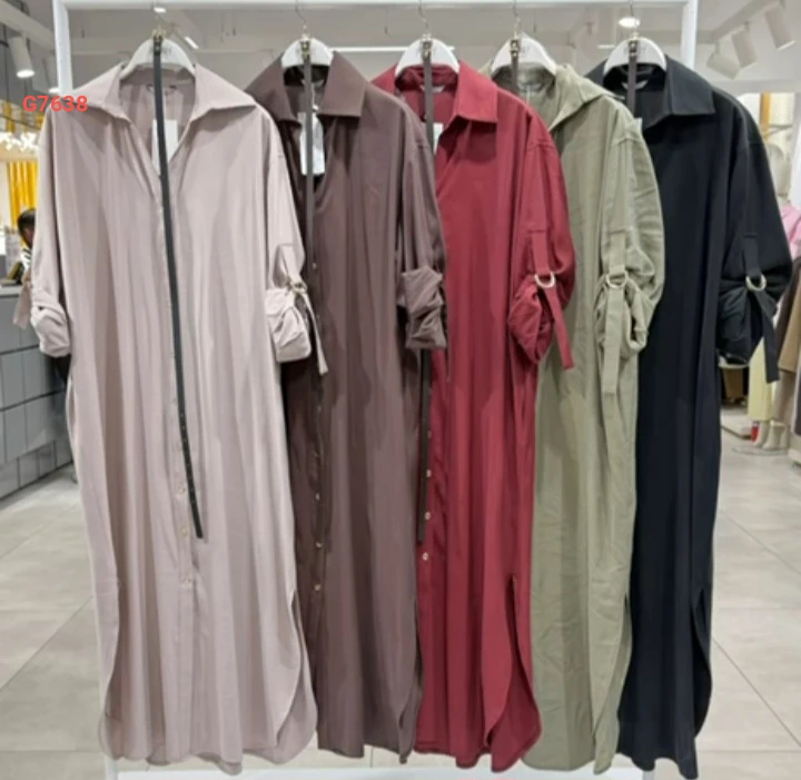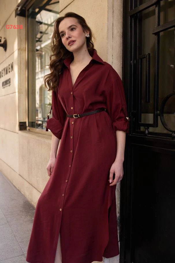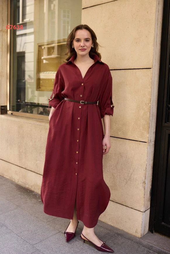 فستان طويل بأزرار وفتحات جانبية