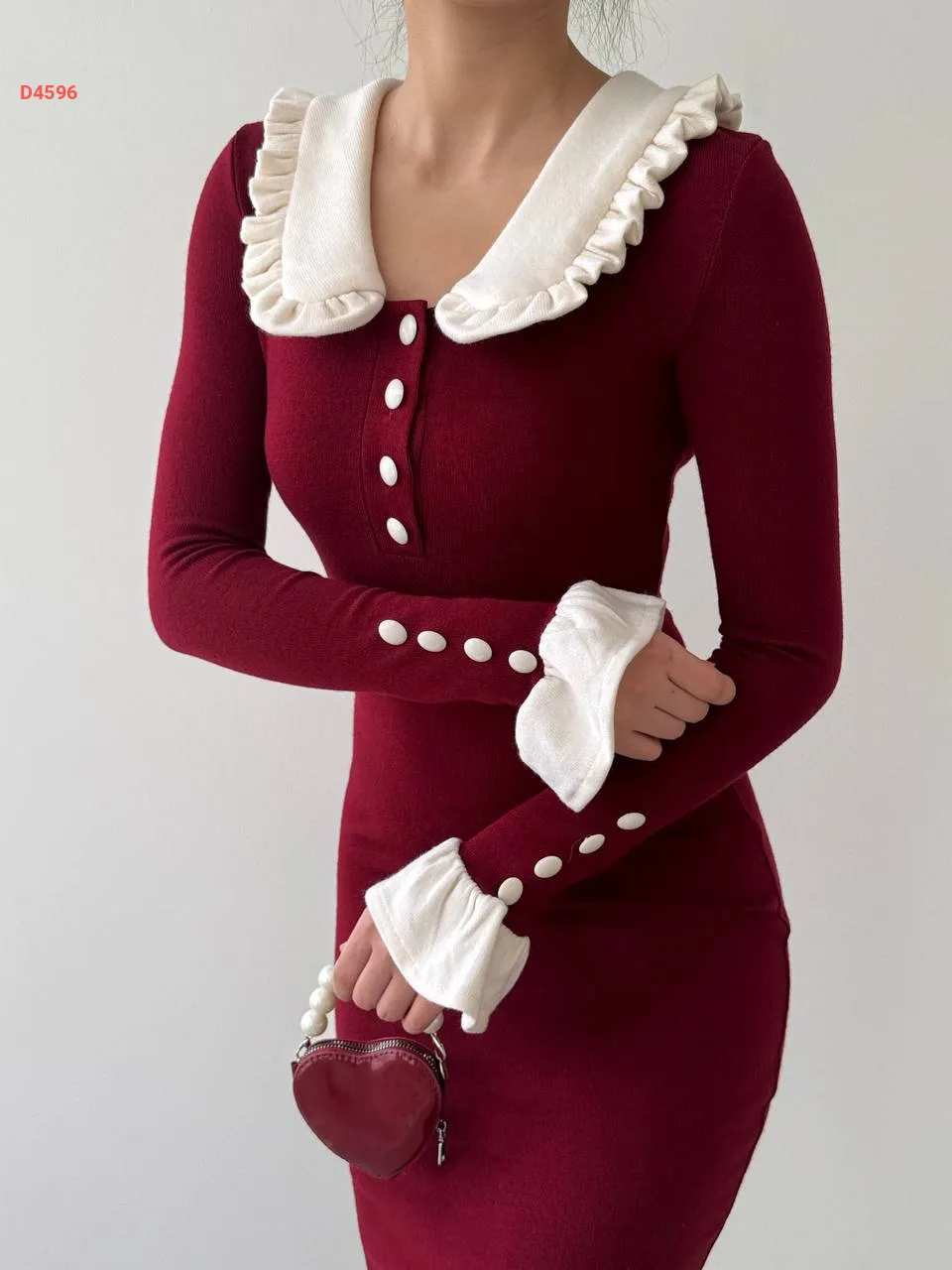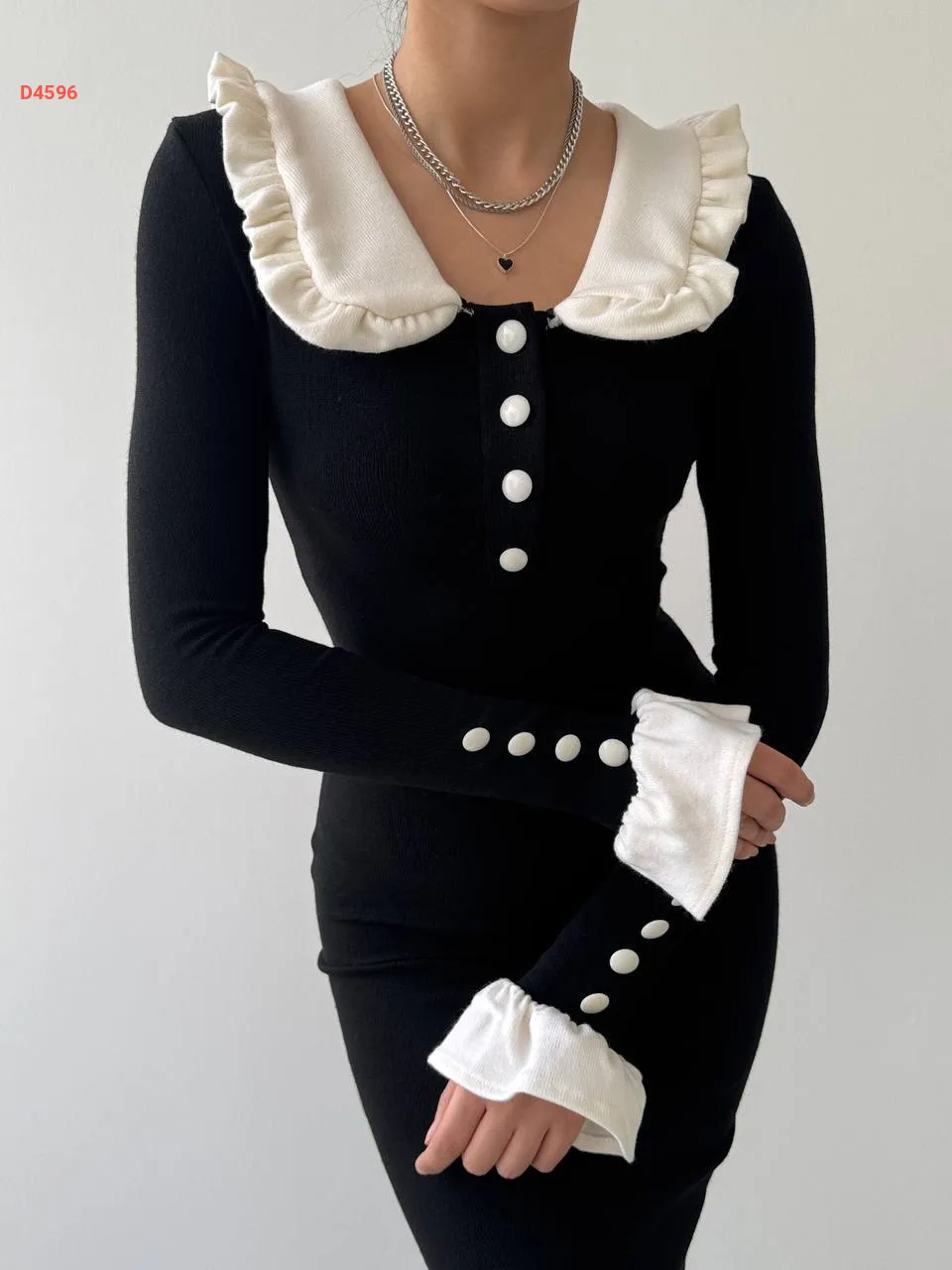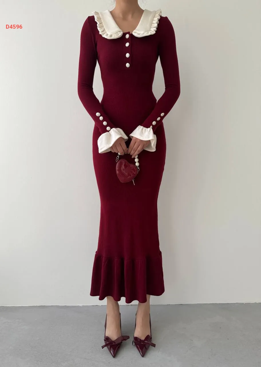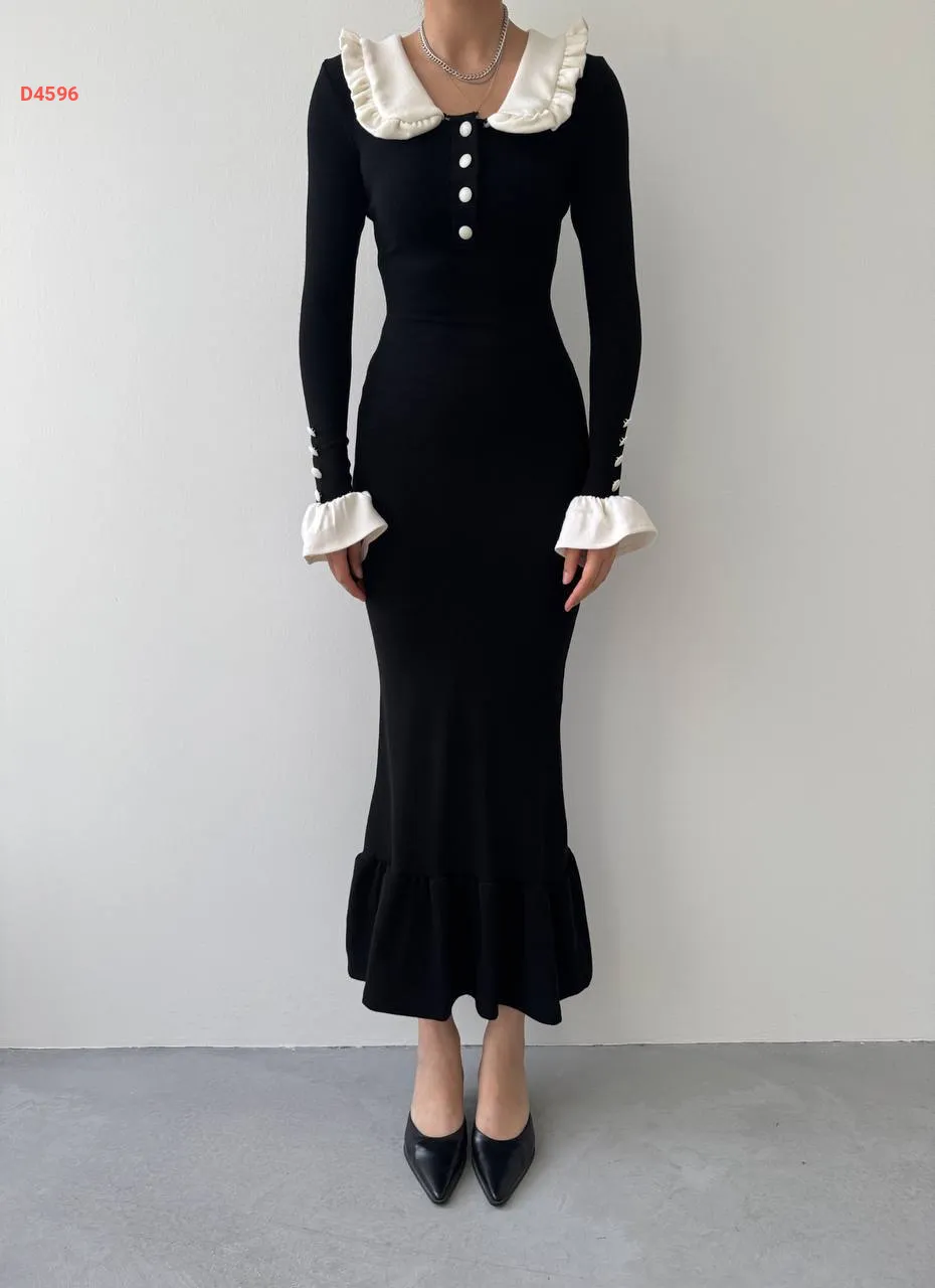 فستان طويل بأزرار عالياقة والكم