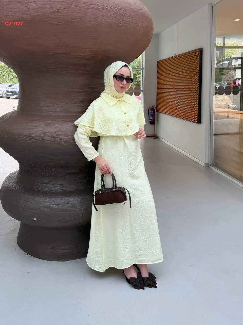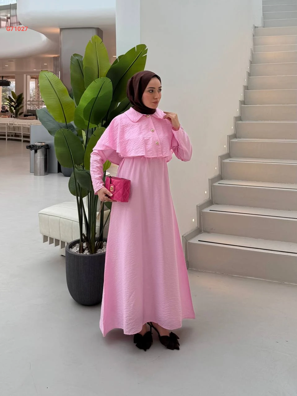 فستان طويل مع تفاصيل كاب