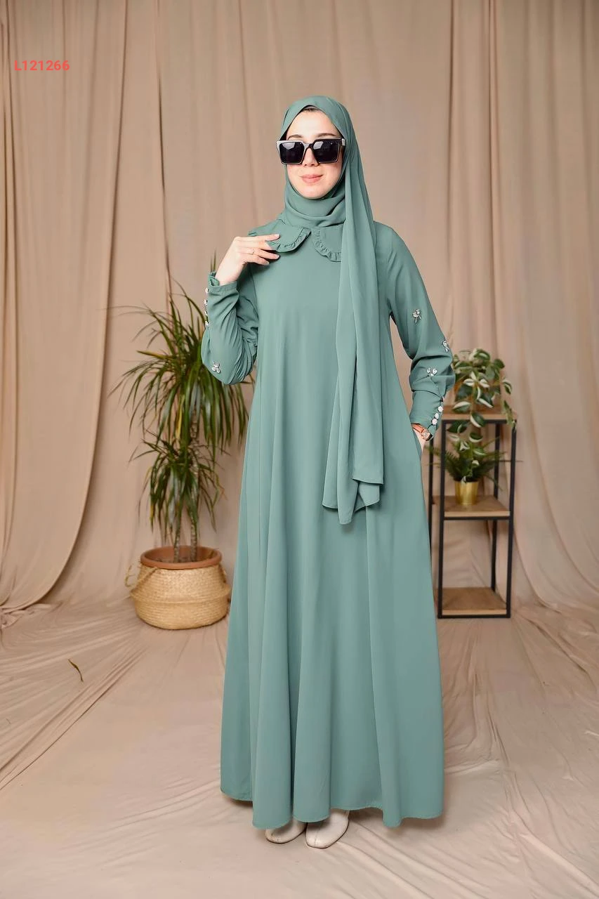 فستان طويل بأكمام مطرزة أحجار