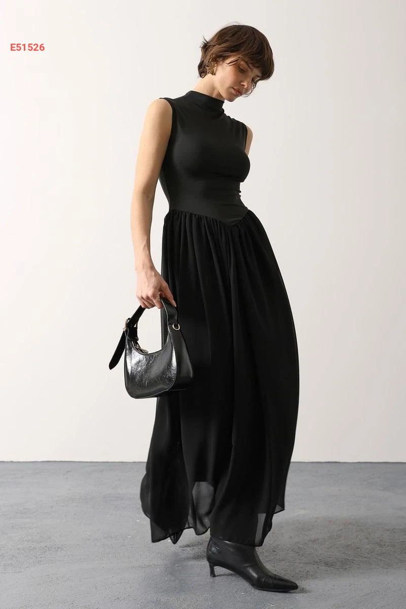 فستان طويل حفر مع تول