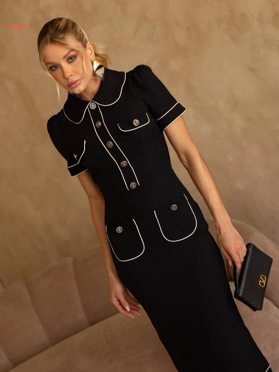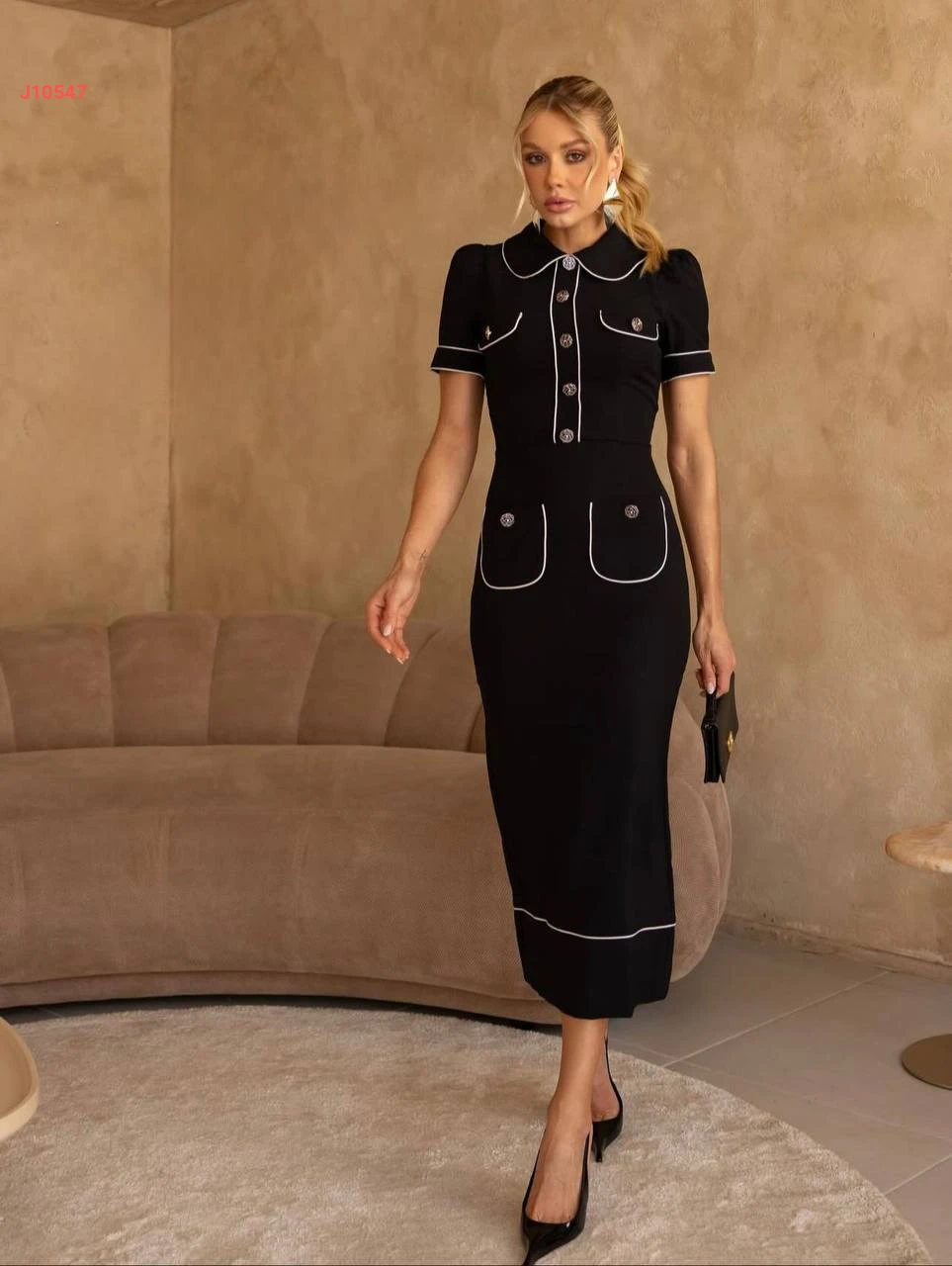 فستان طويل بأزرار دهبي