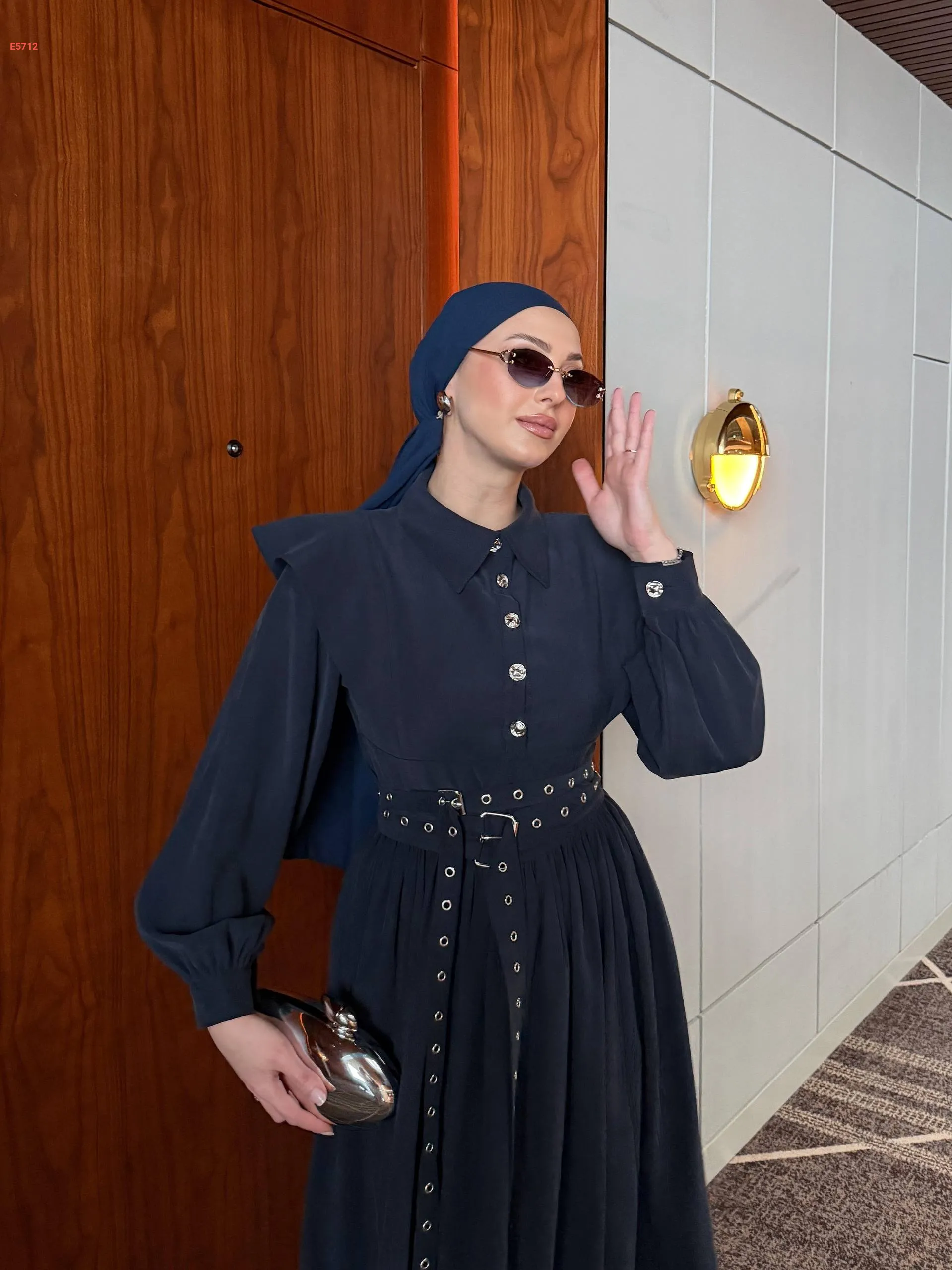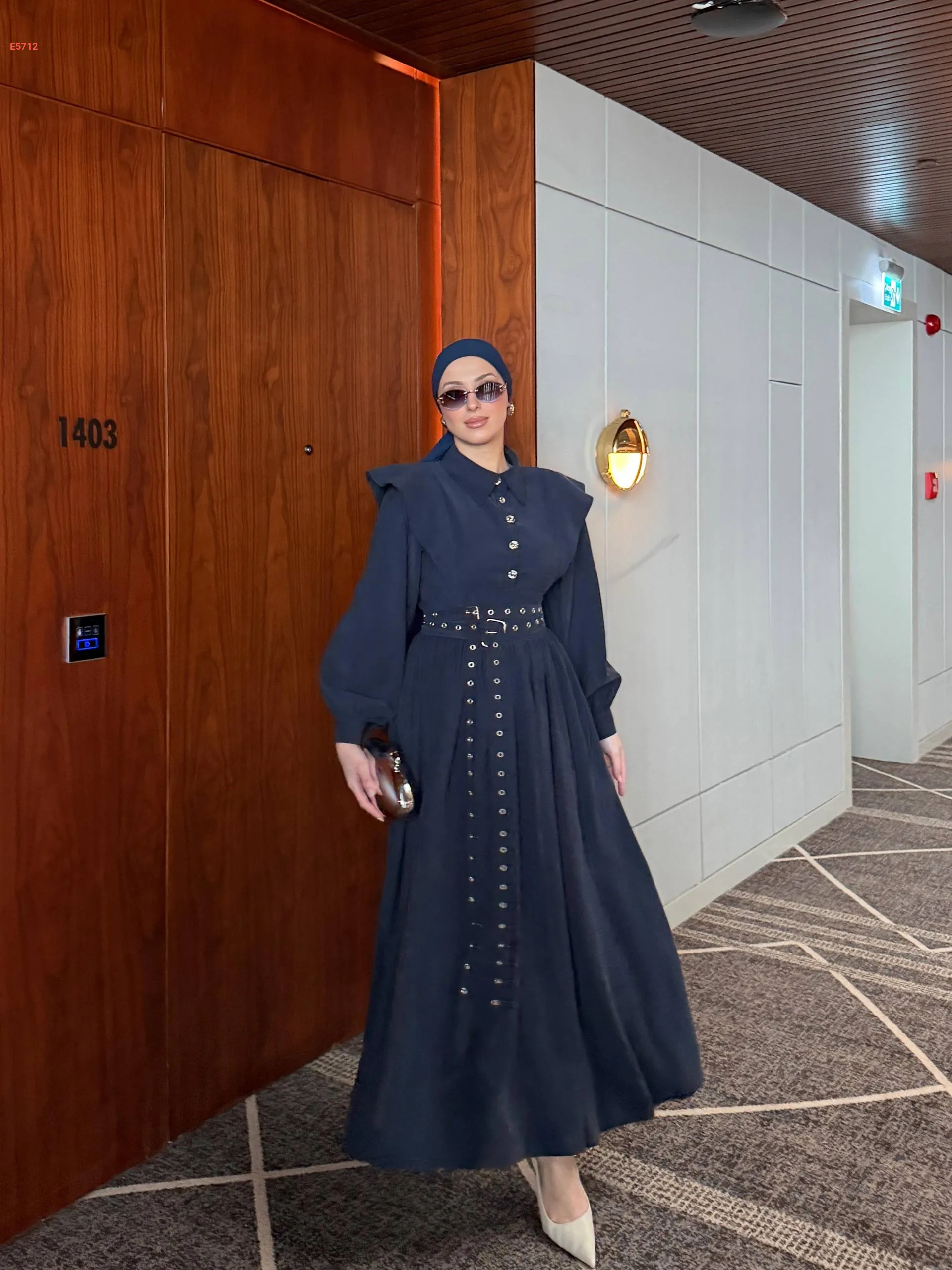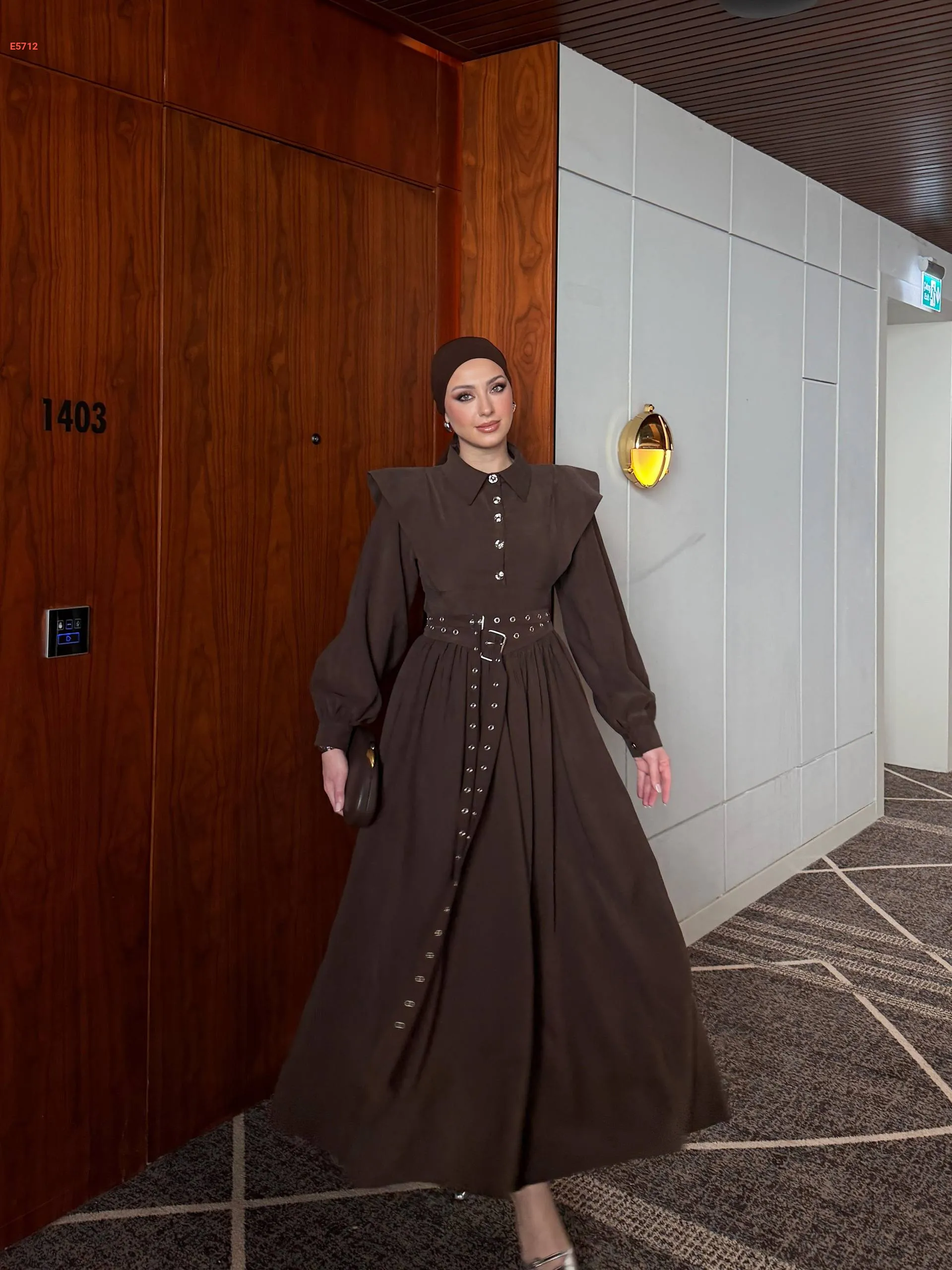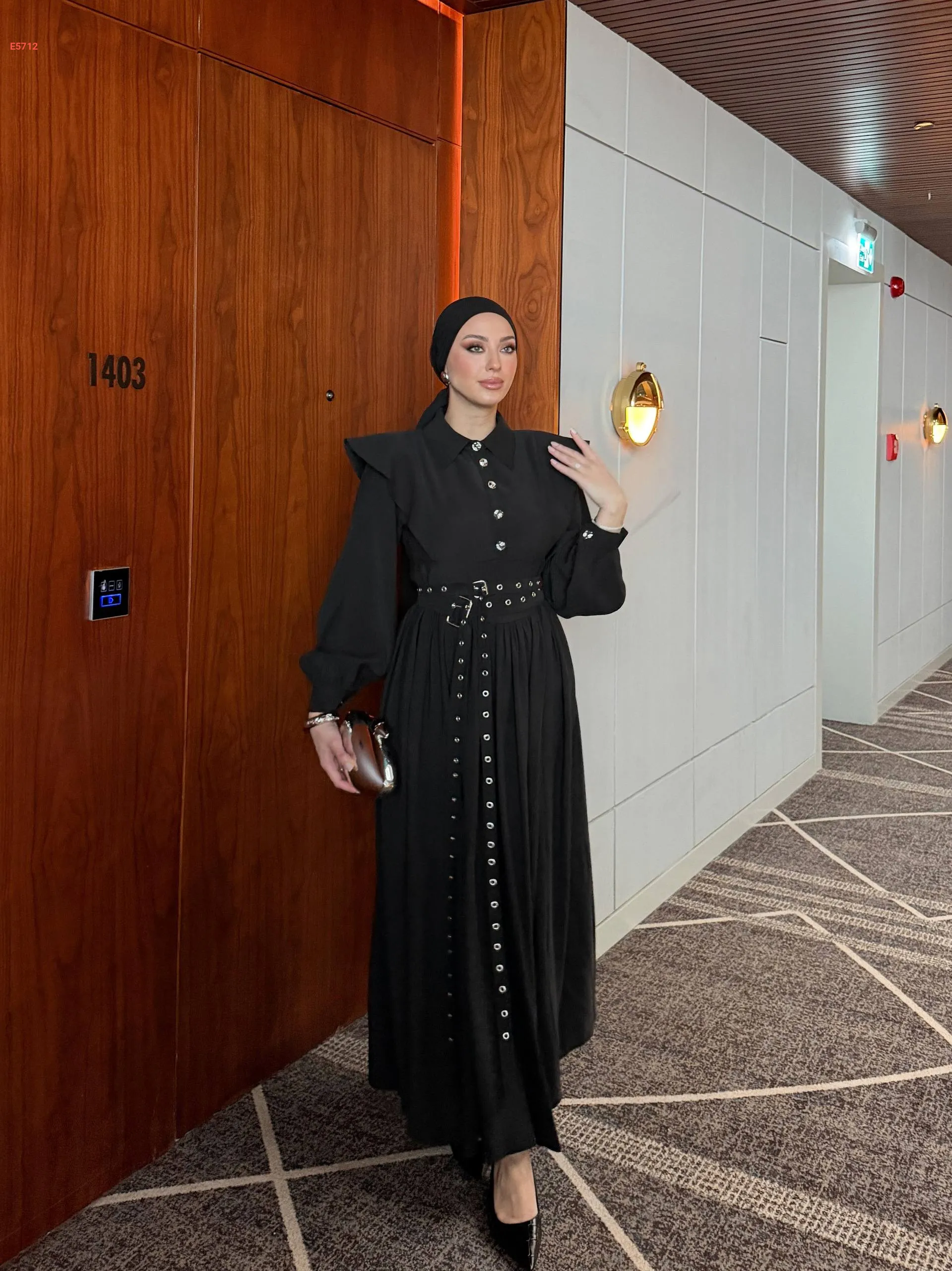 فستان طويل بأزرار نصفية وحزام