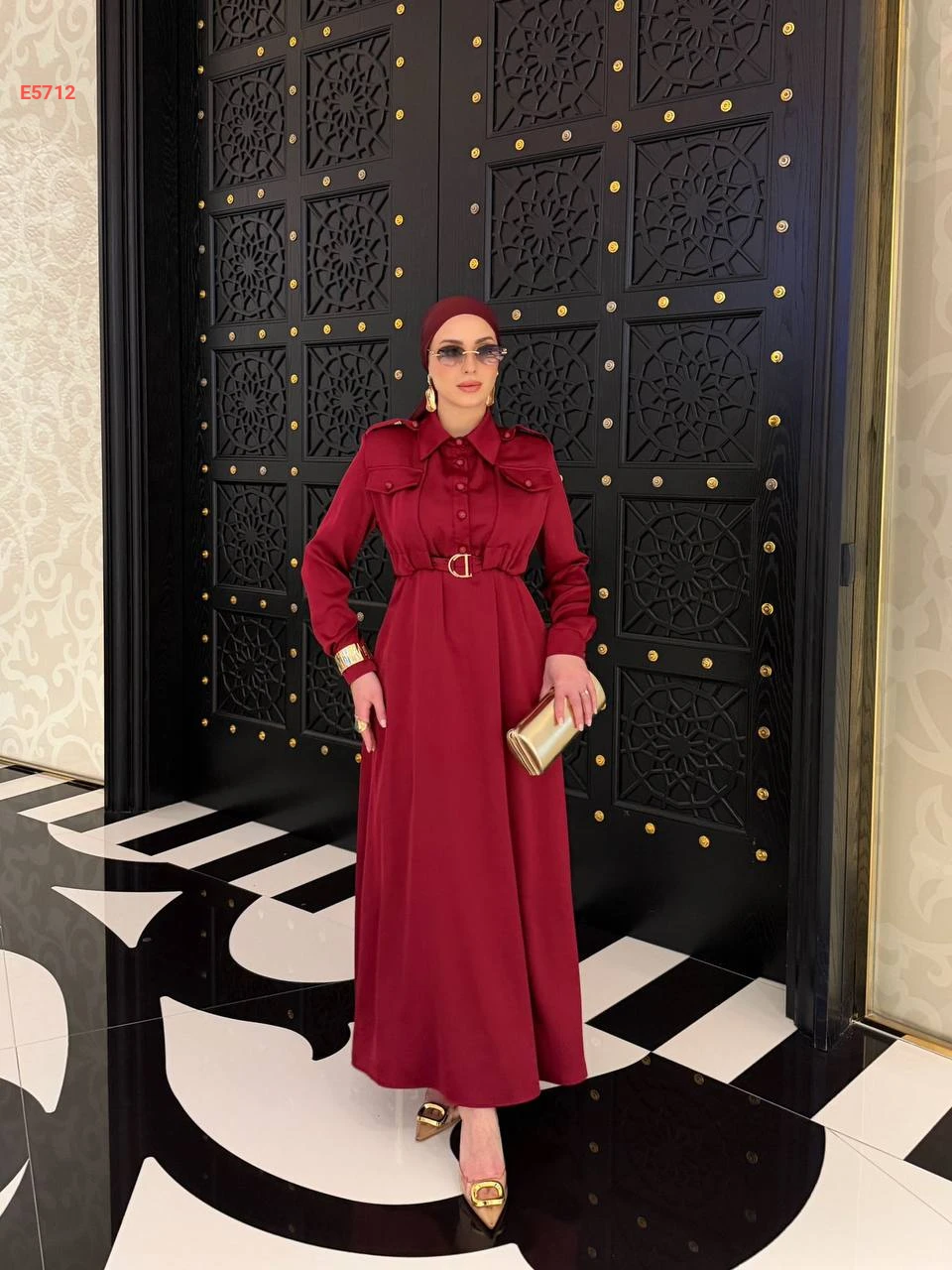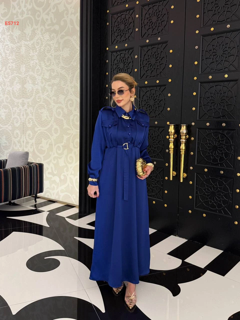 فستان طويل بنصف أزرار وحزام