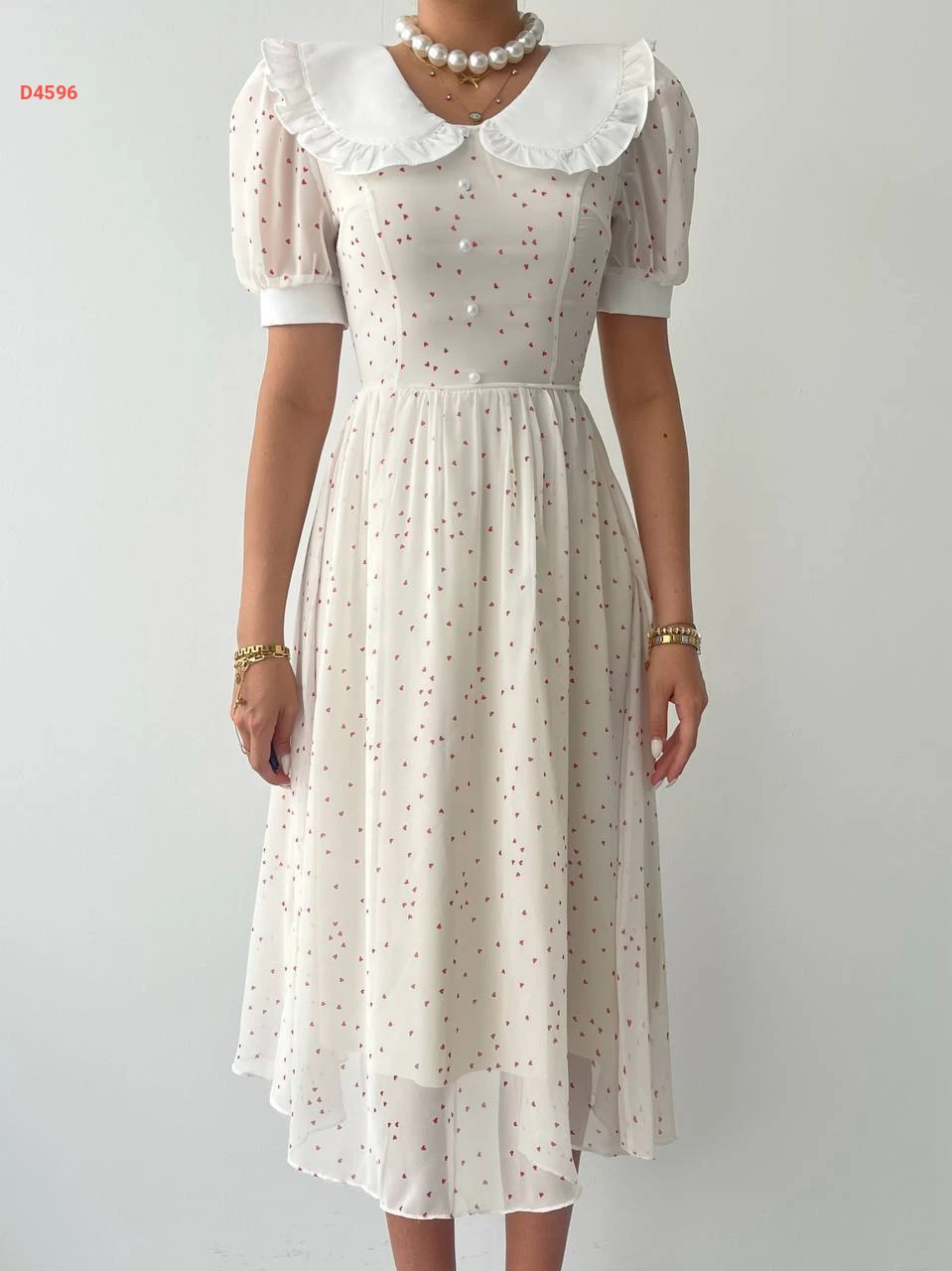 فستان طويل منقوش قلوب