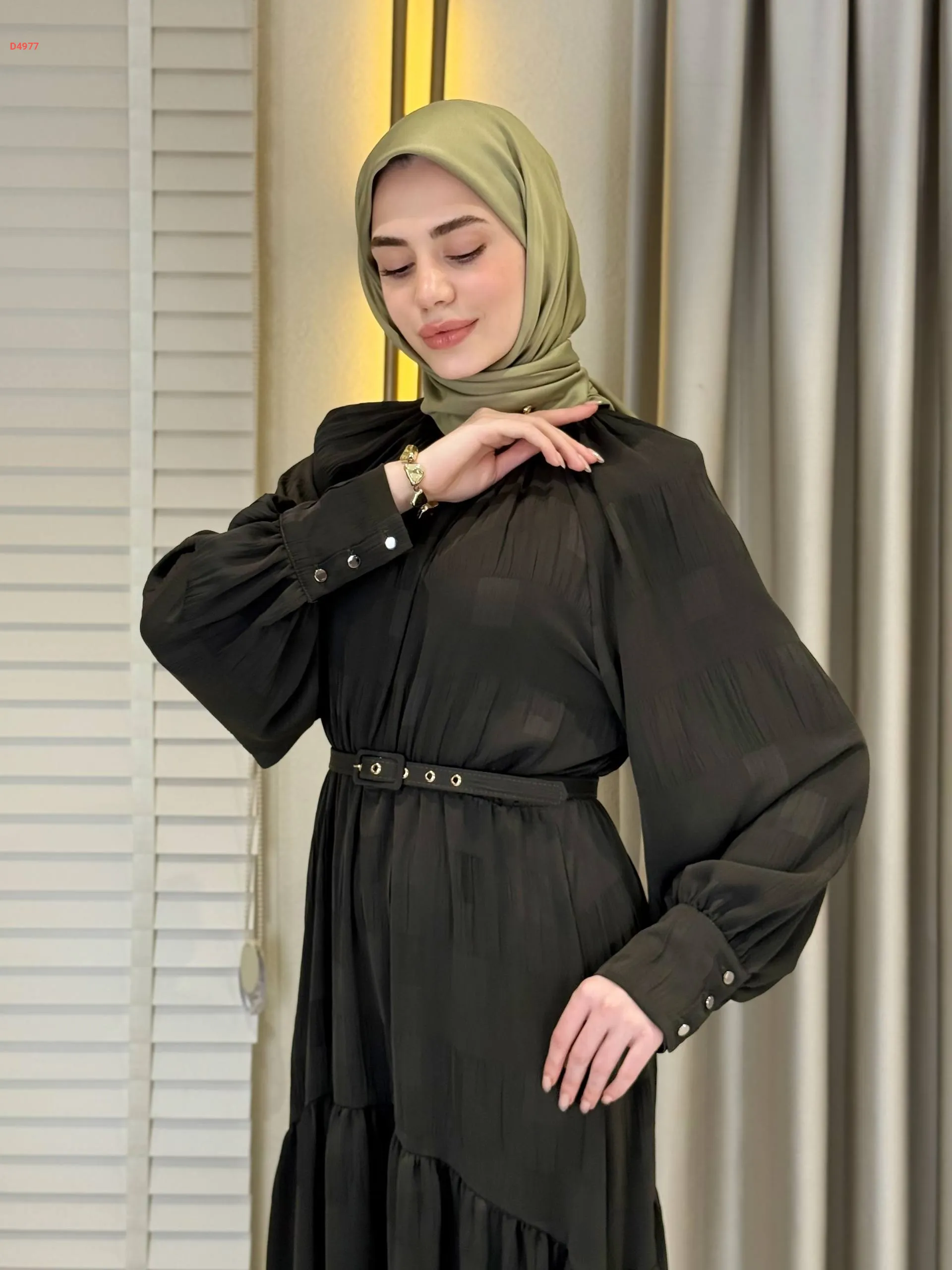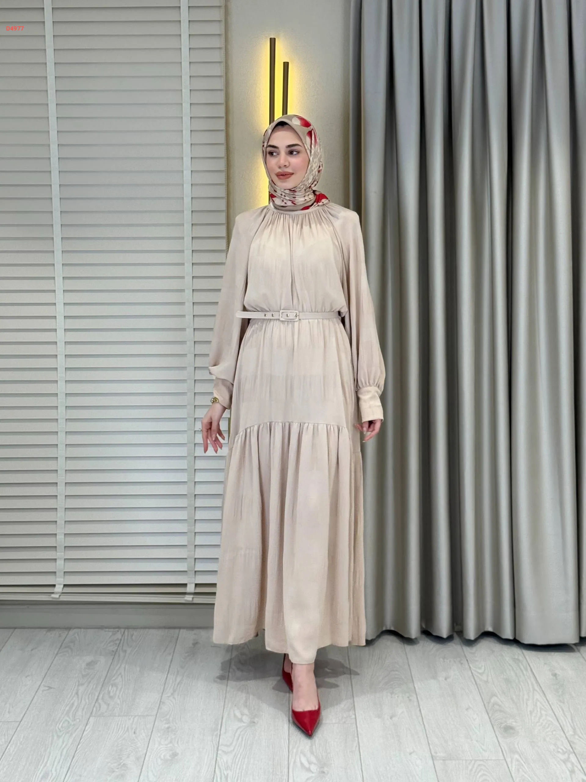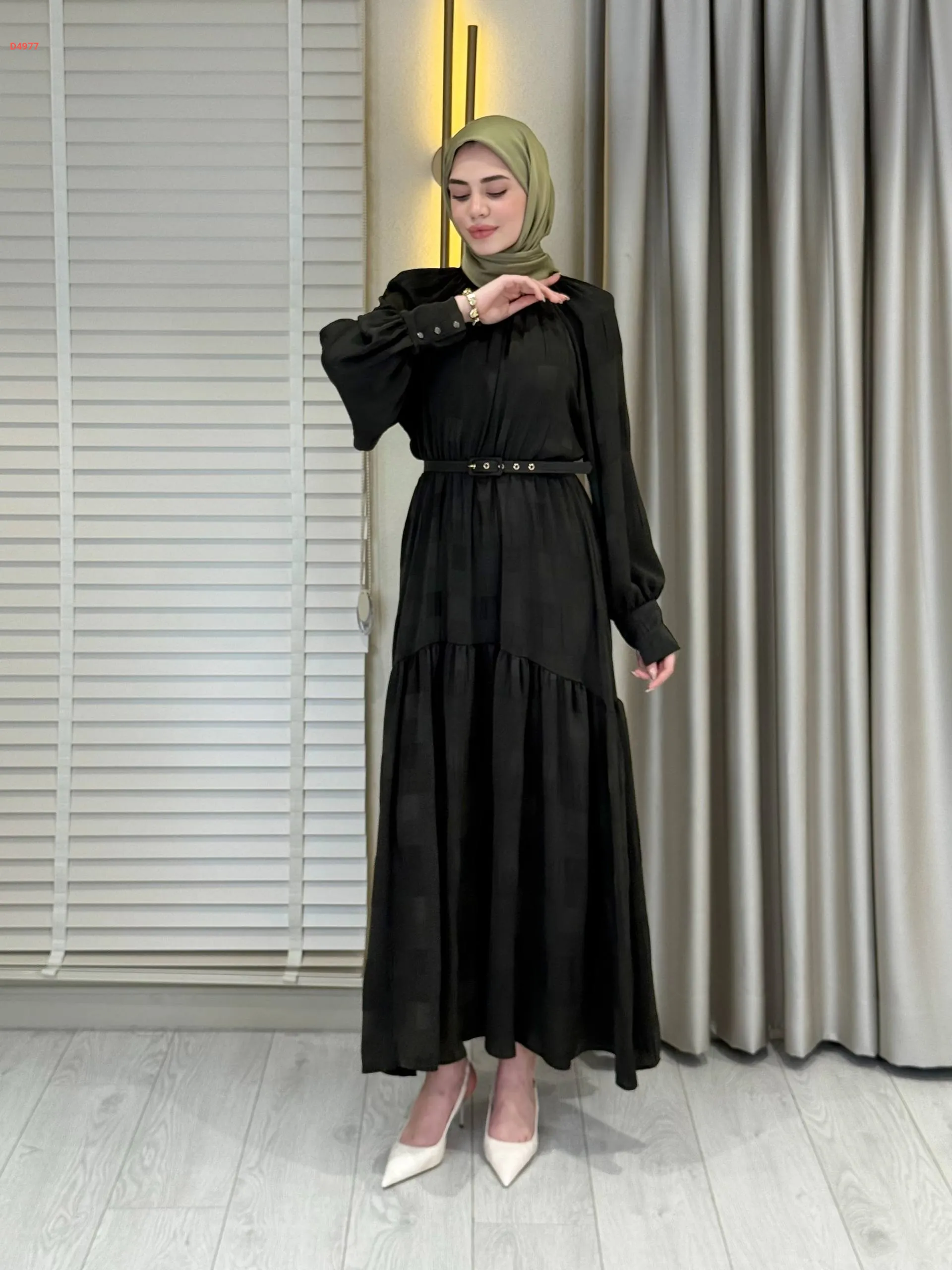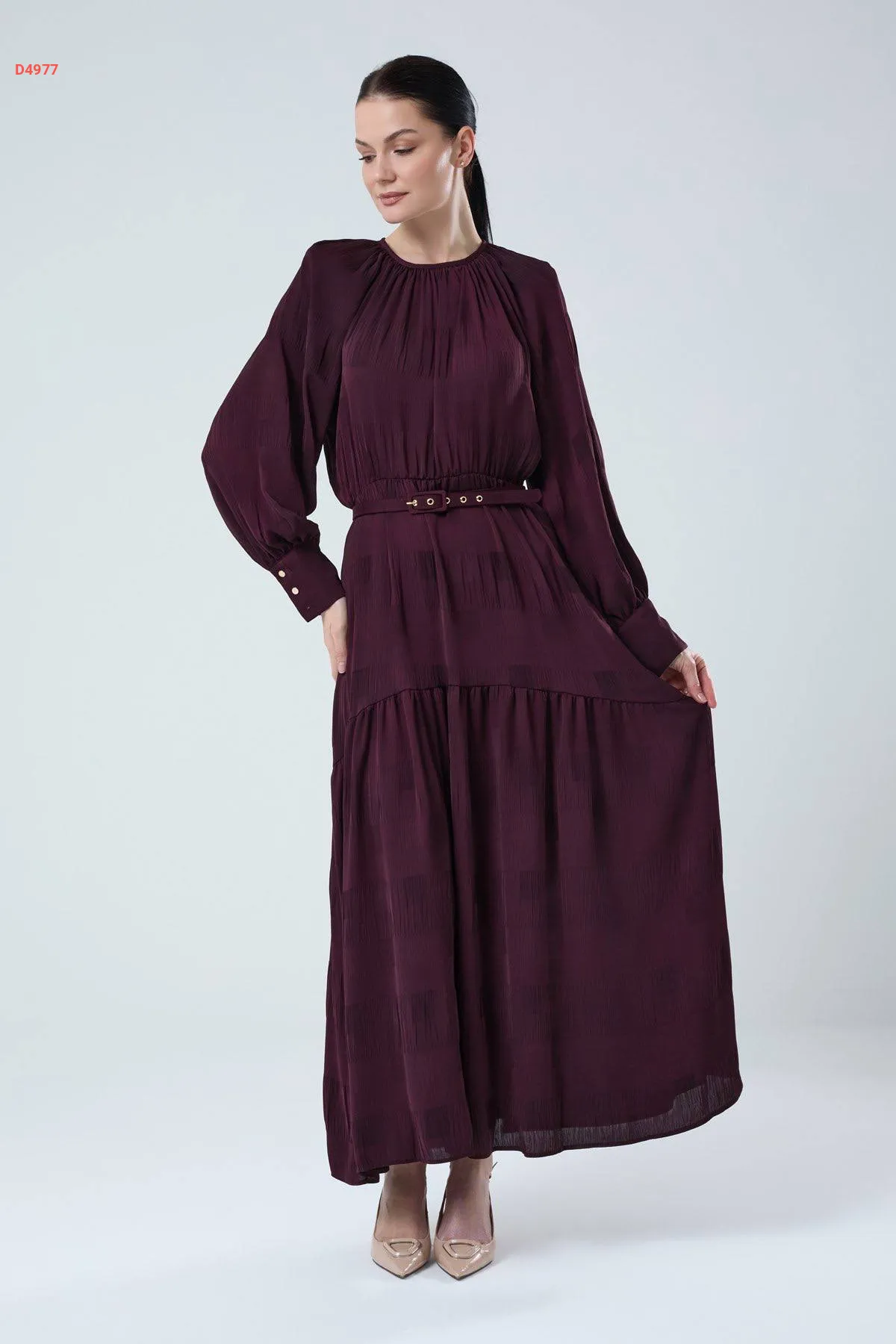 فستان طويل بأزرار عالكم وحزام