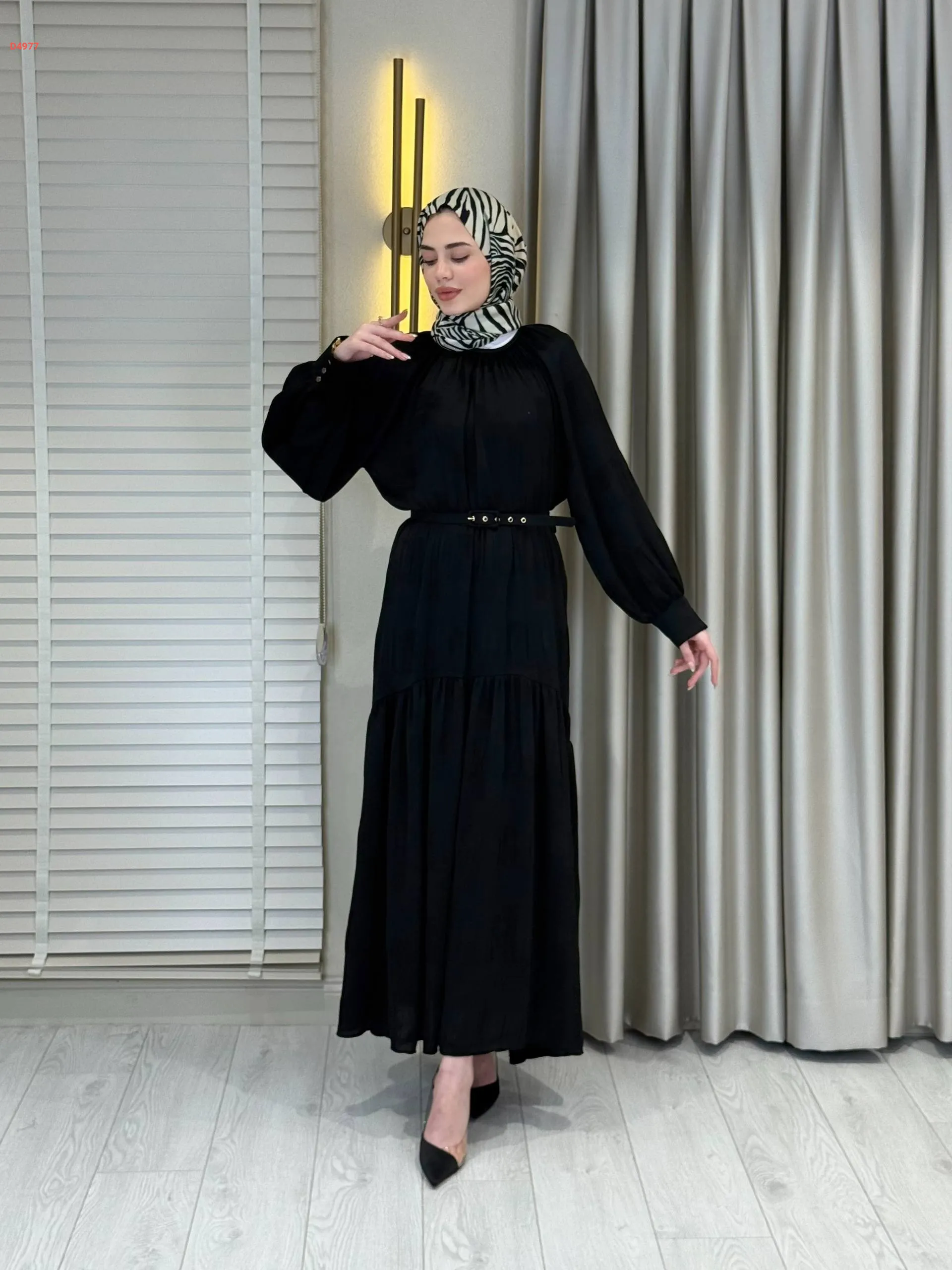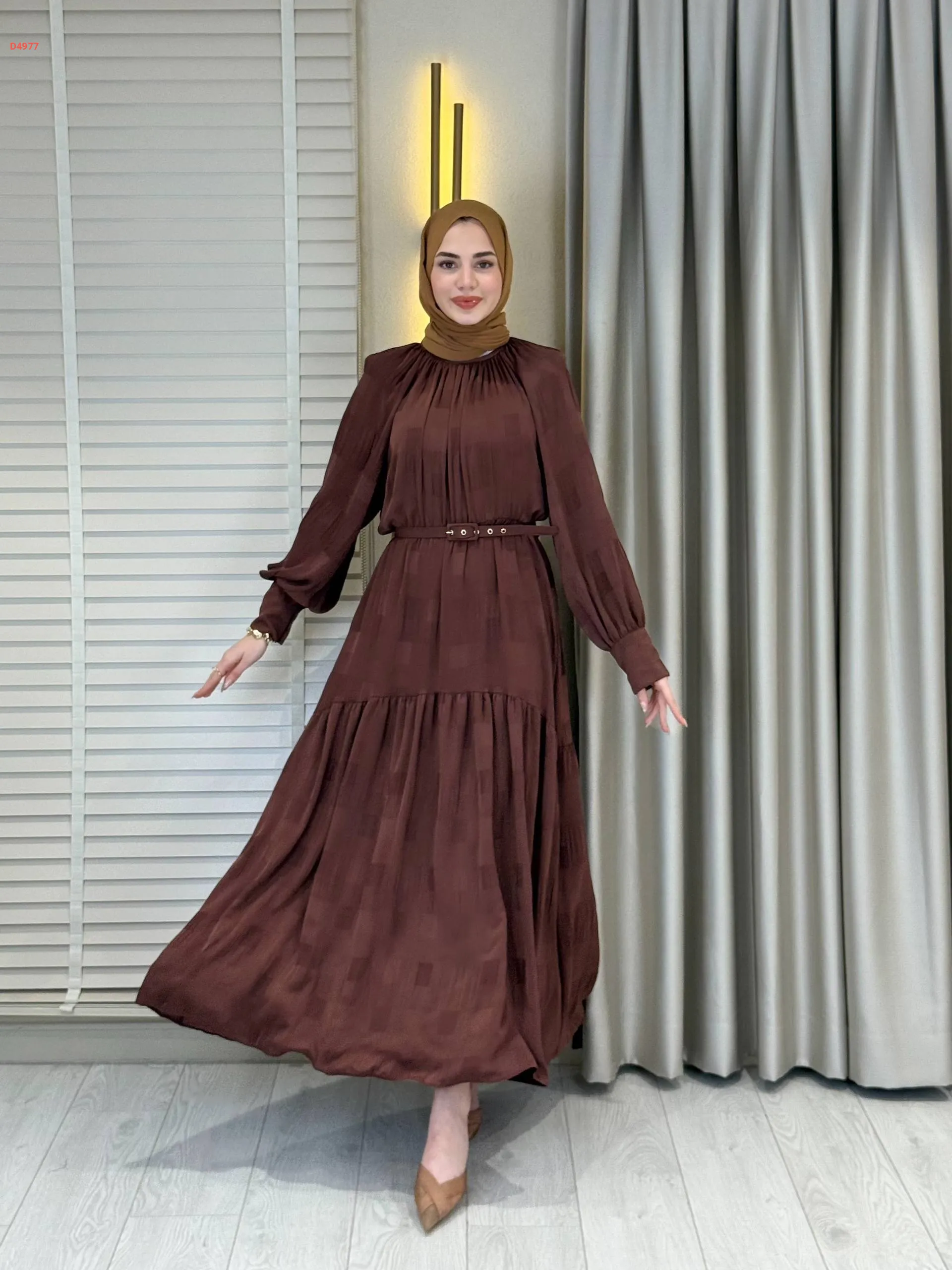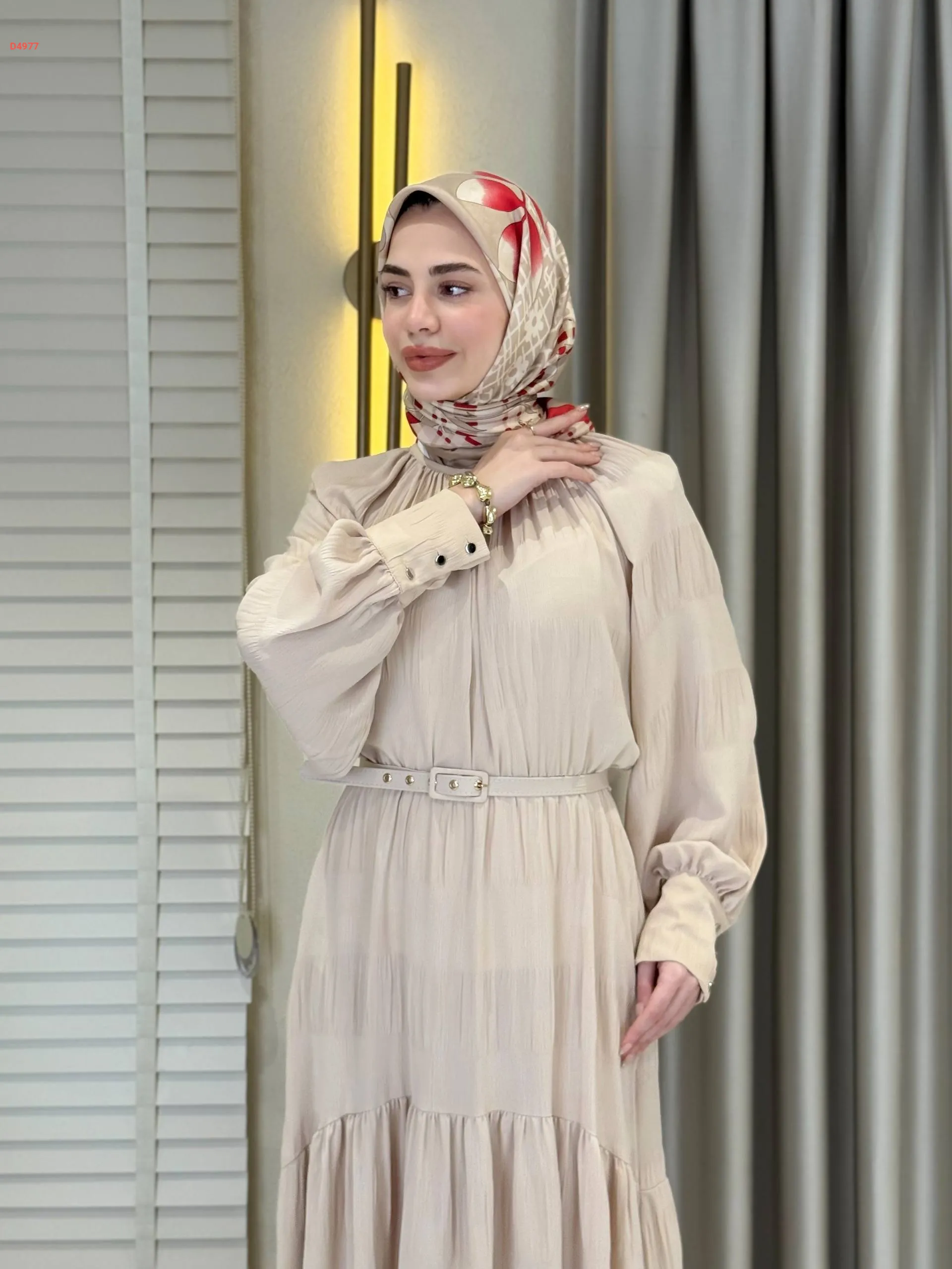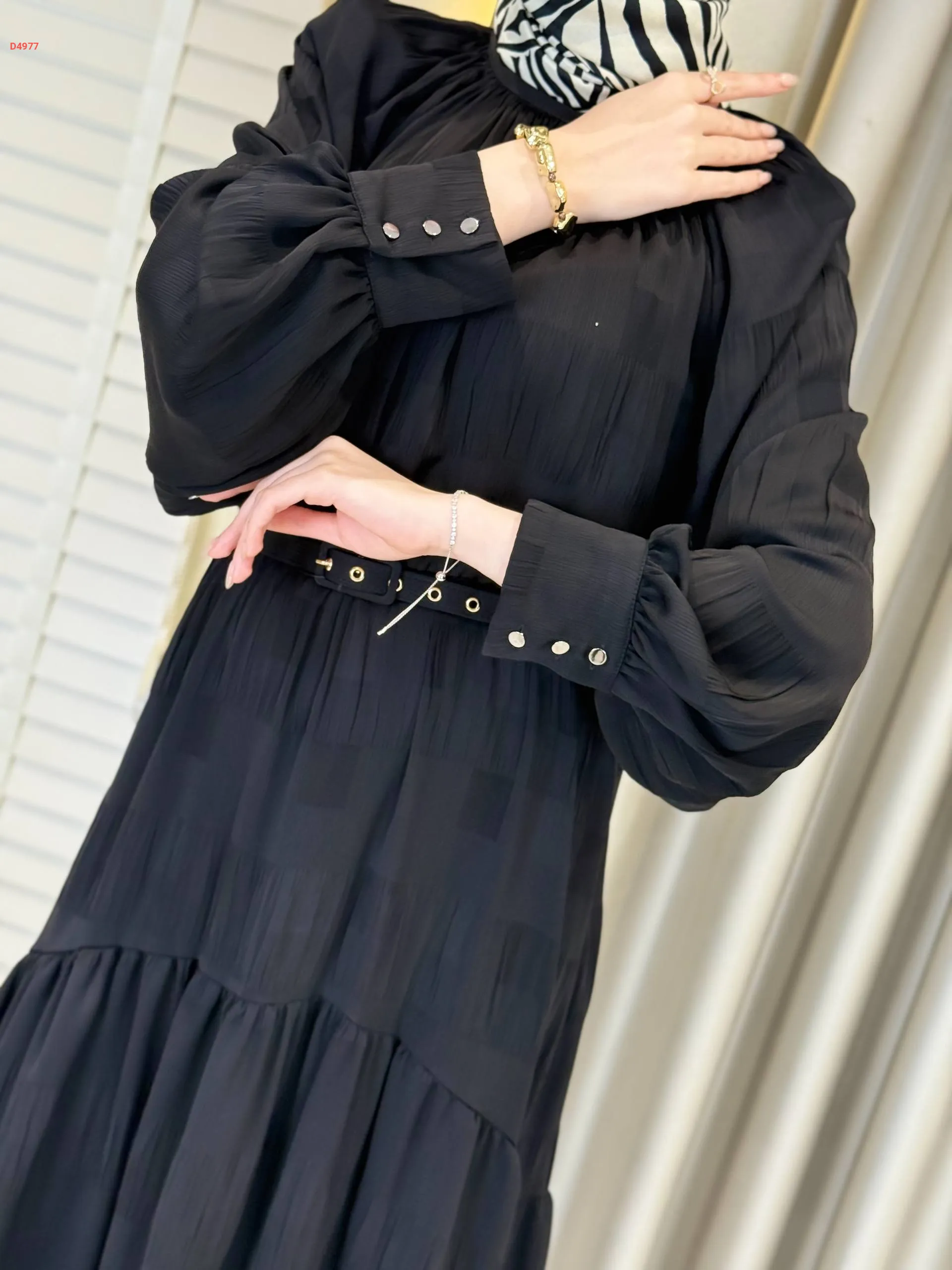 فستان طويل بأزرار عالكم وحزام