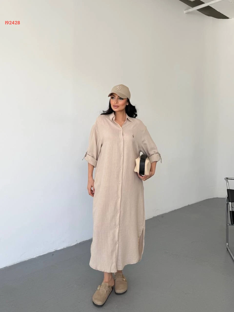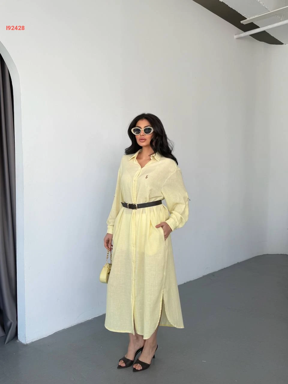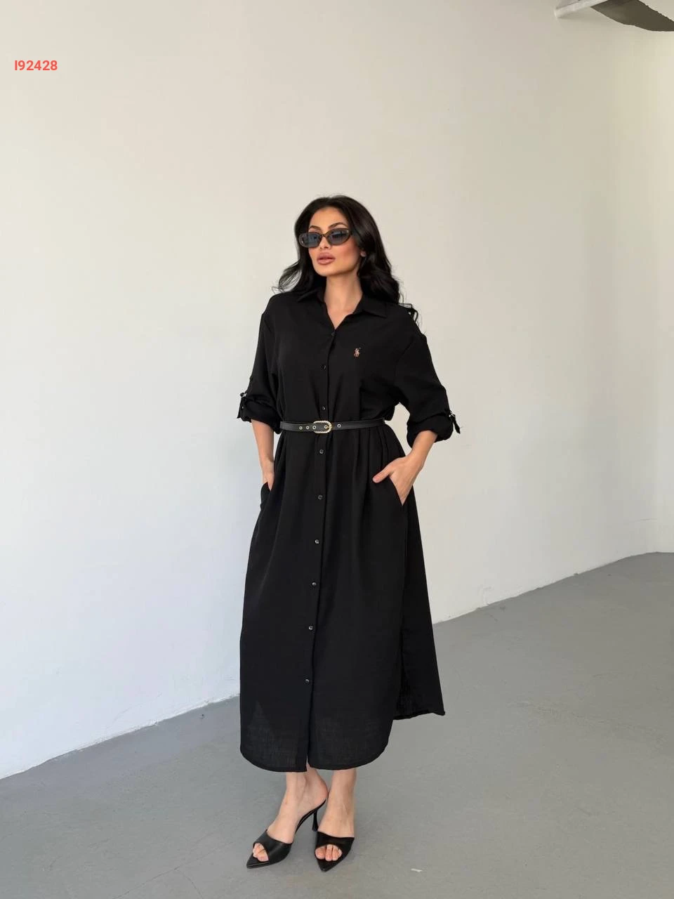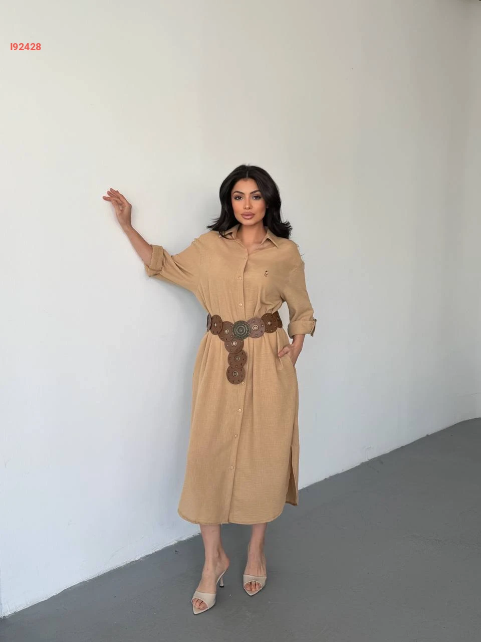 فستان طويل بتفاصيل قميص