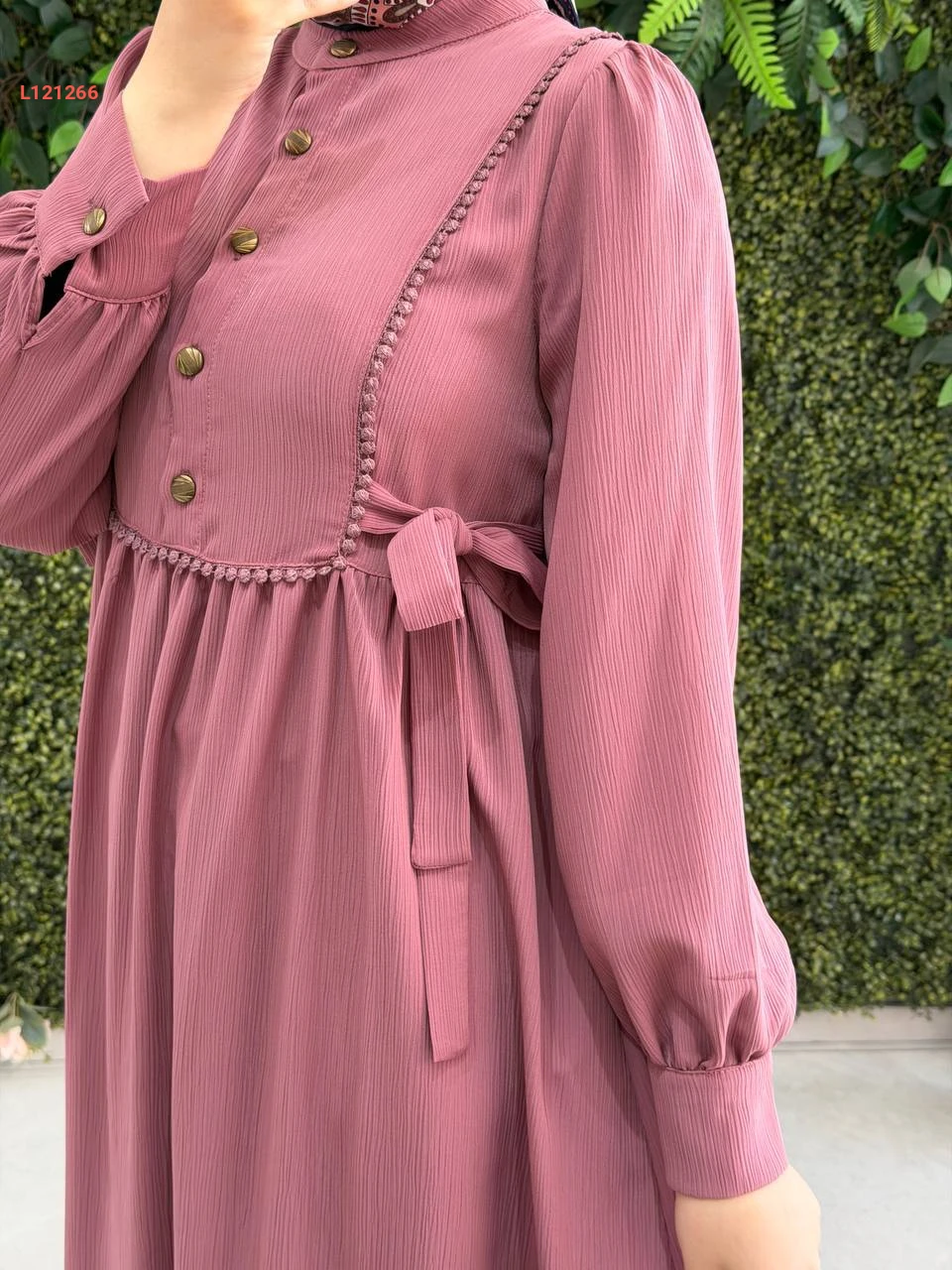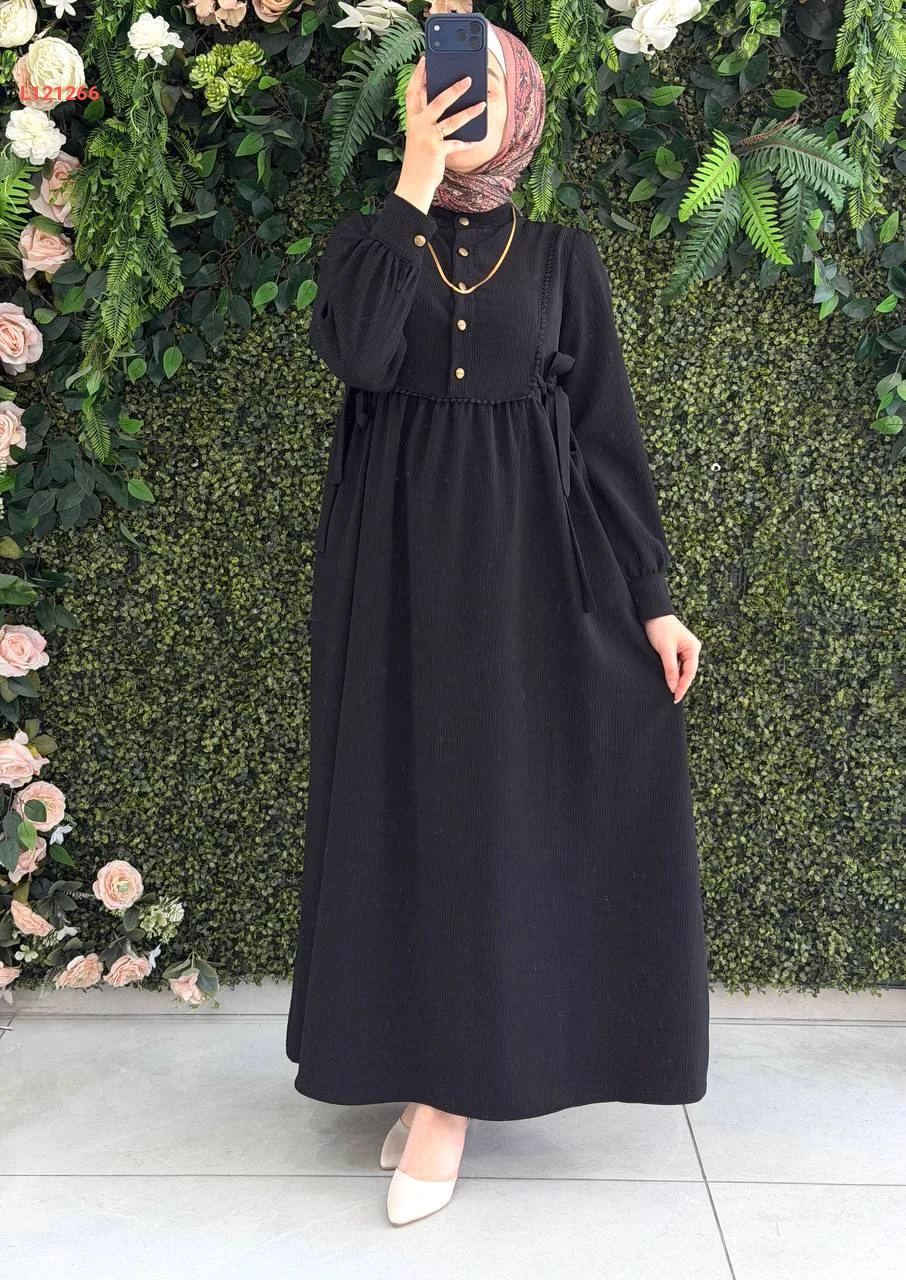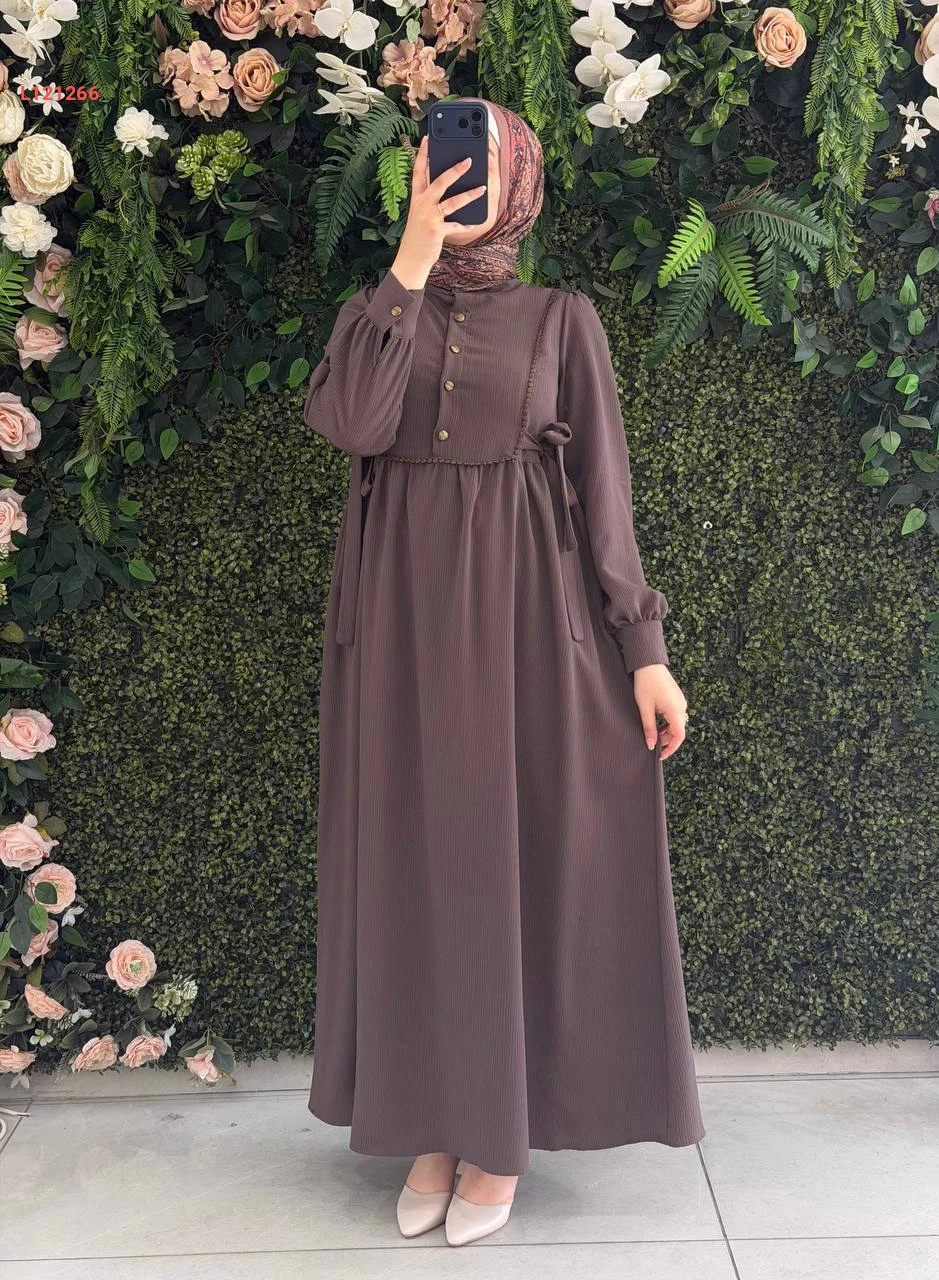 فستان طويل بربطات جانبية عالخصر