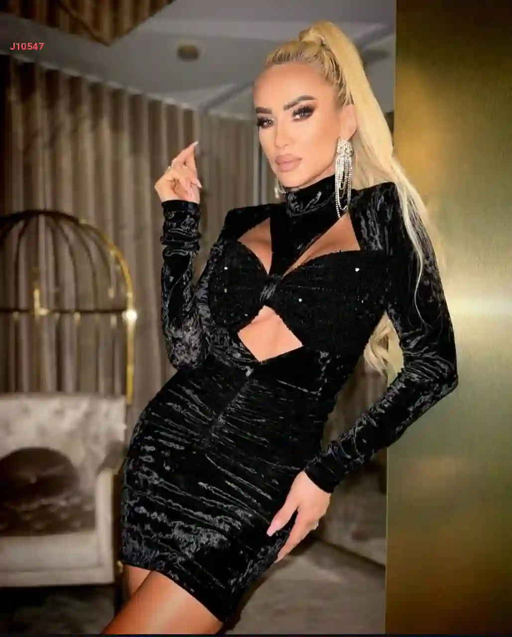 فستان مخمل وباييت قصير مجمع